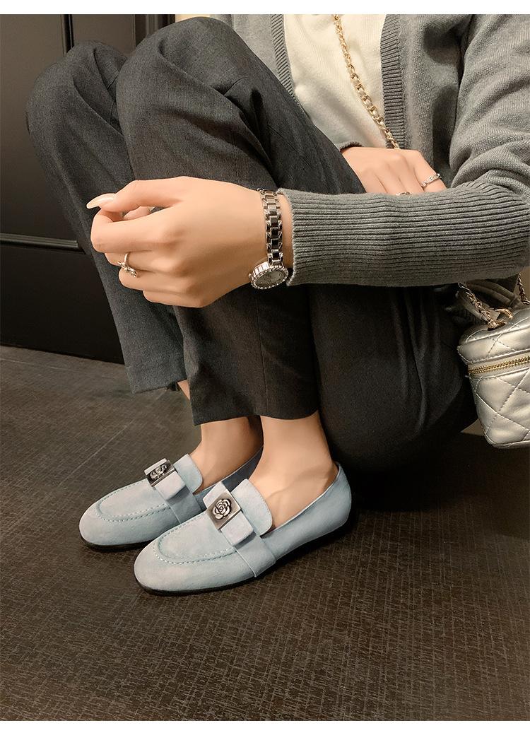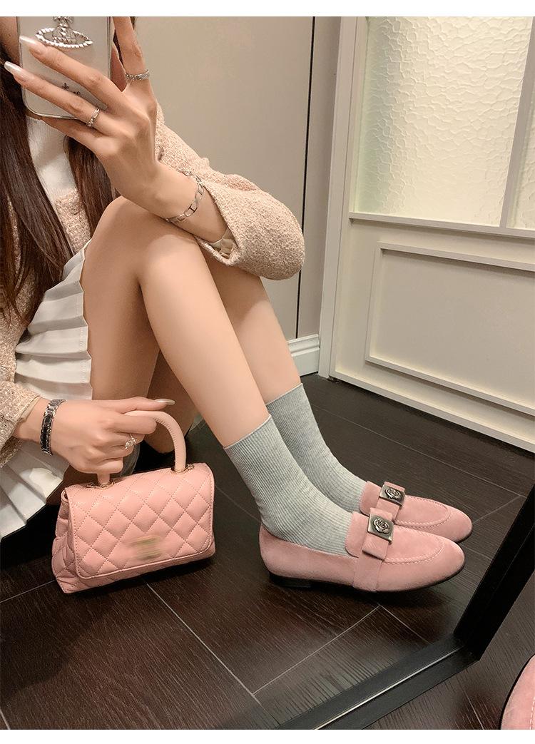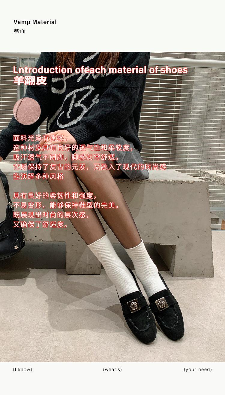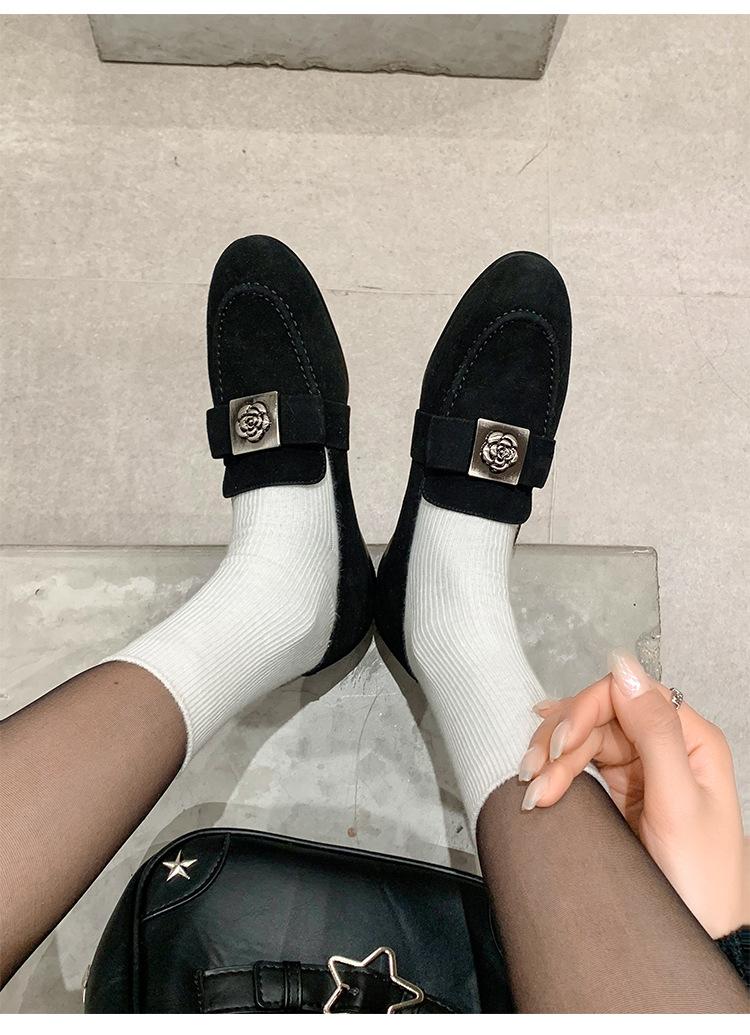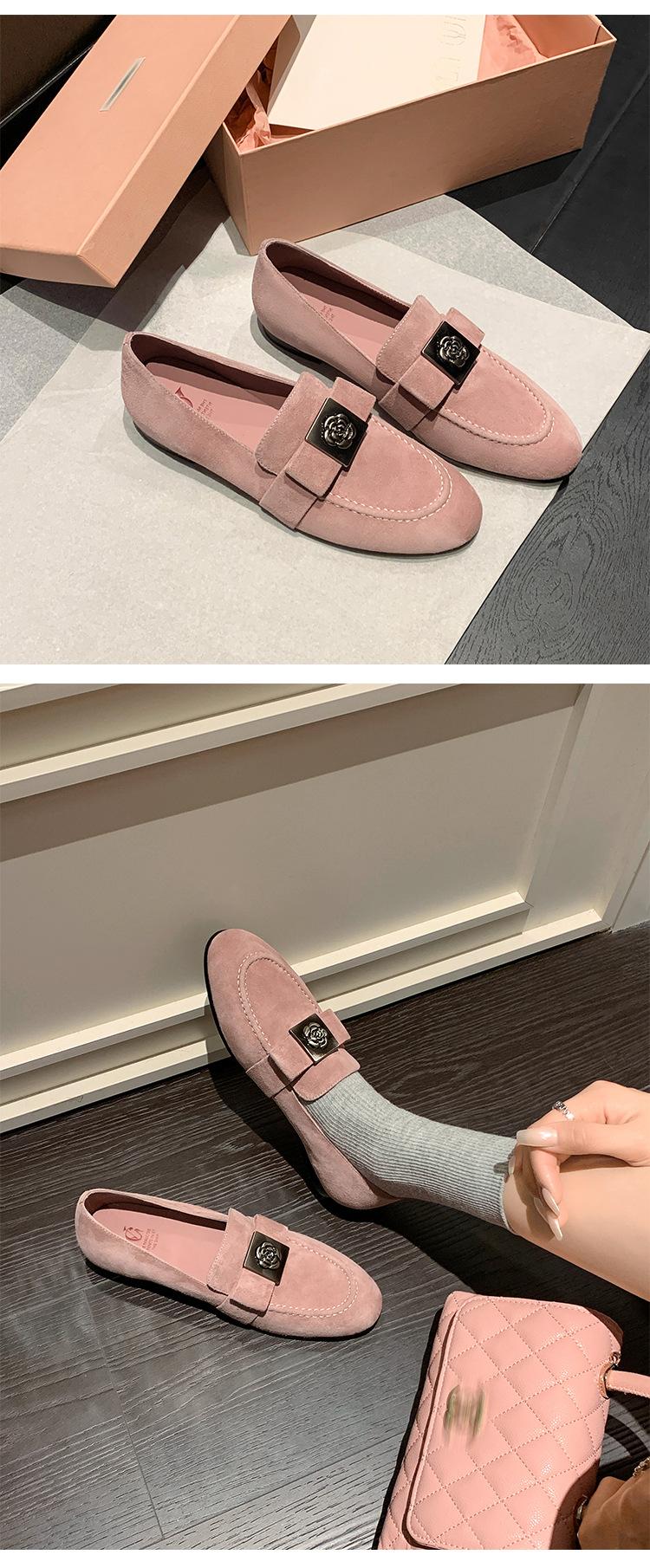 Mocasines de Moda con Hebilla Cuadrada de Camelia de Piel de Oveja para Mujer, Nuevos de Primavera y Otoño, Versátiles, Zapatos Slip-on de Cuero Genuino