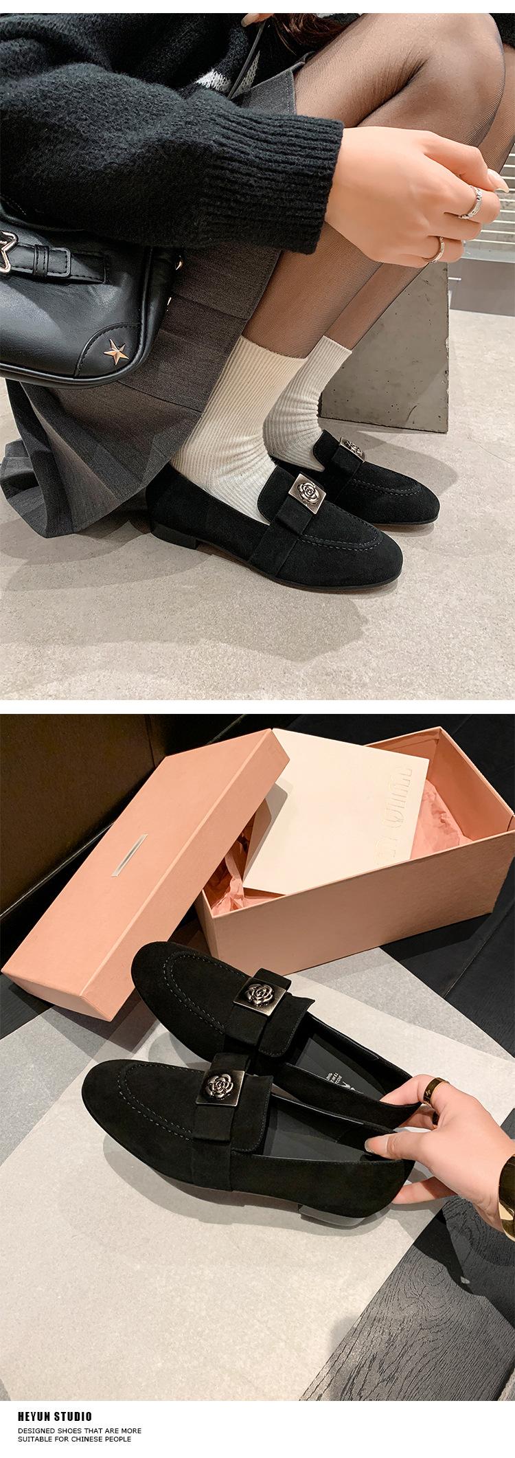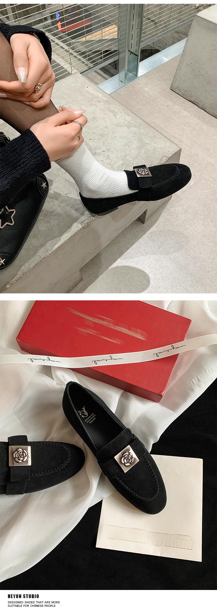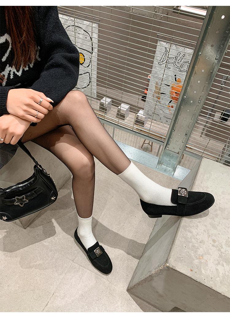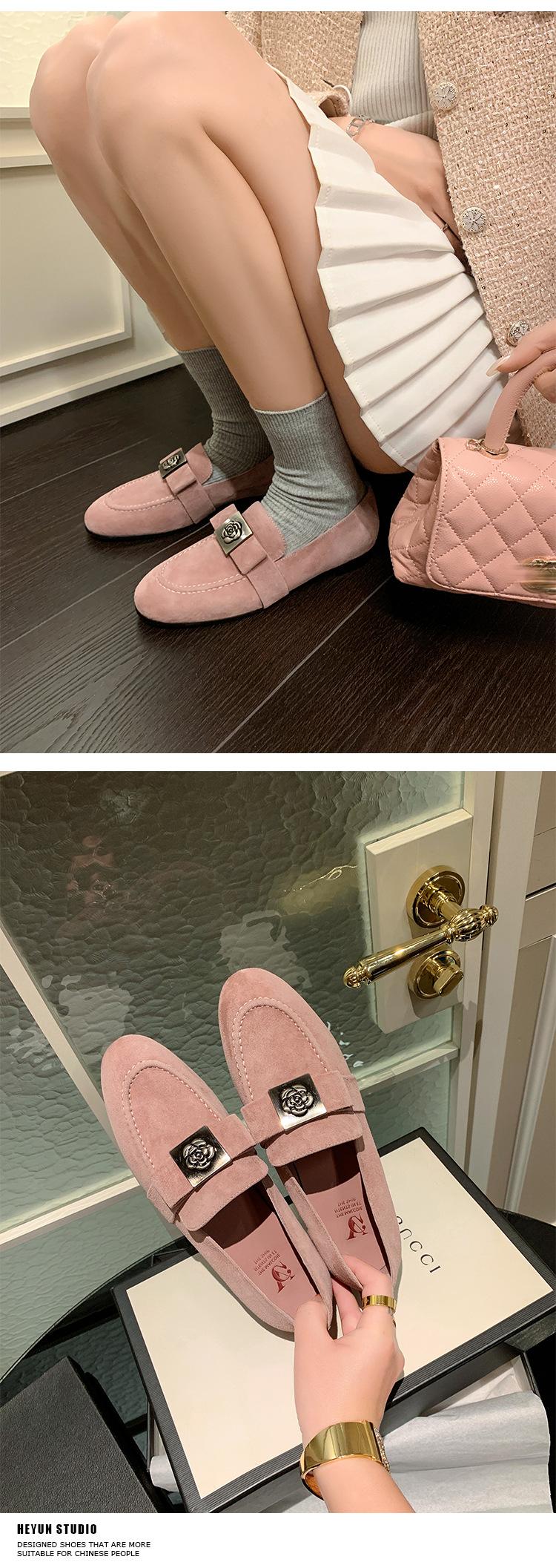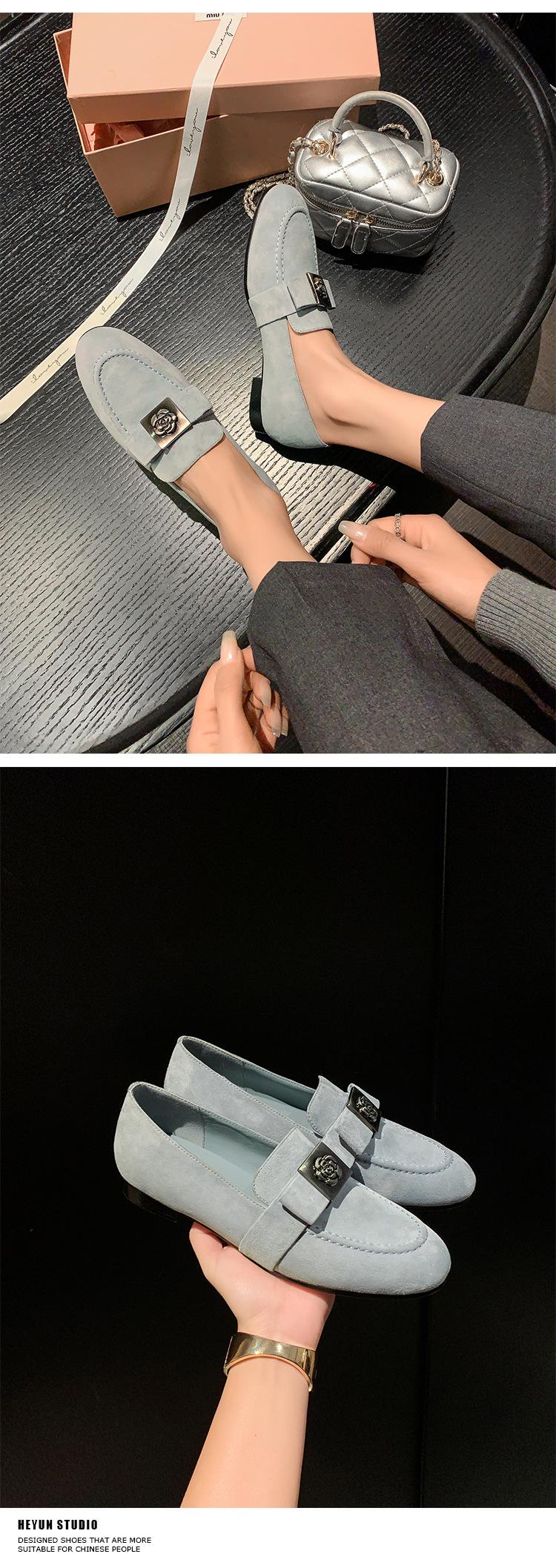 Mocasines de Moda con Hebilla Cuadrada de Camelia de Piel de Oveja para Mujer, Nuevos de Primavera y Otoño, Versátiles, Zapatos Slip-on de Cuero Genuino