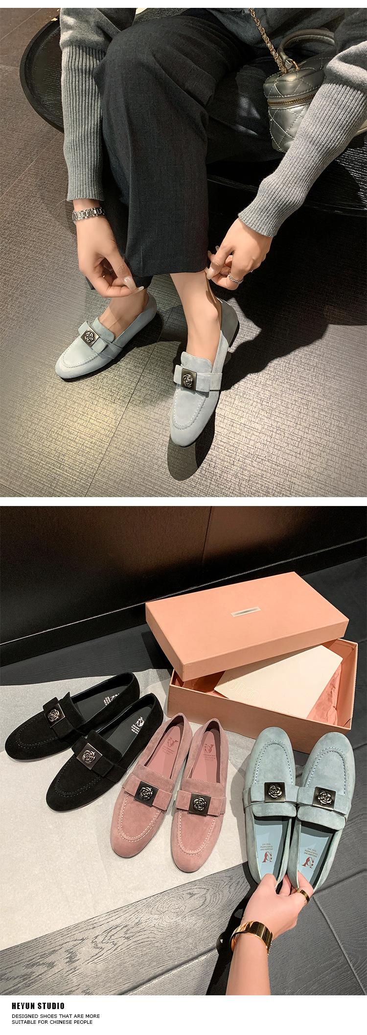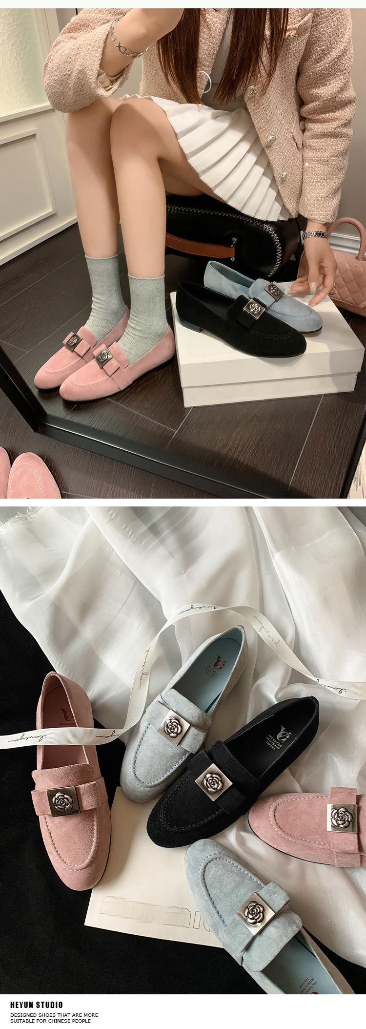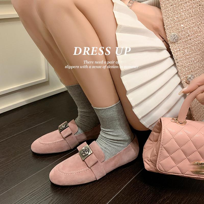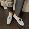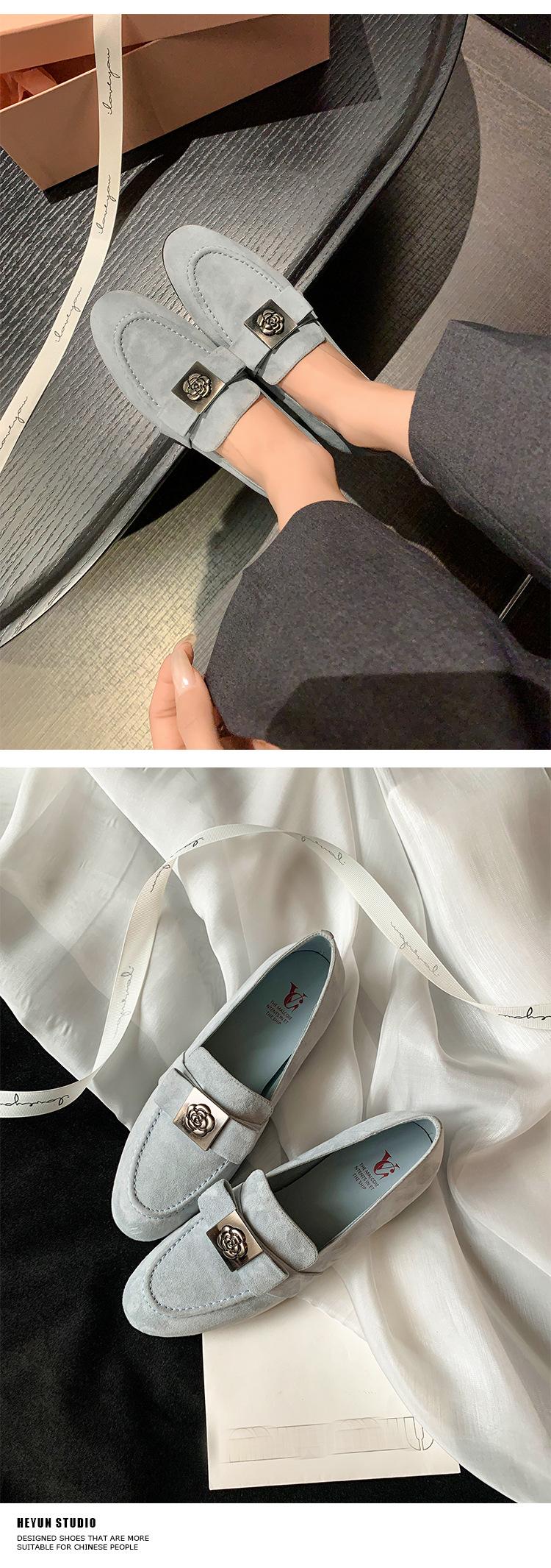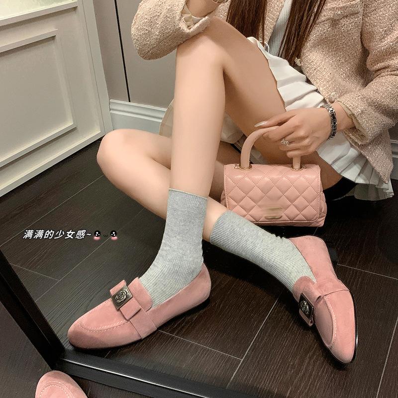Mocasines de Moda con Hebilla Cuadrada de Camelia de Piel de Oveja para Mujer, Nuevos de Primavera y Otoño, Versátiles, Zapatos Slip-on de Cuero Genuino