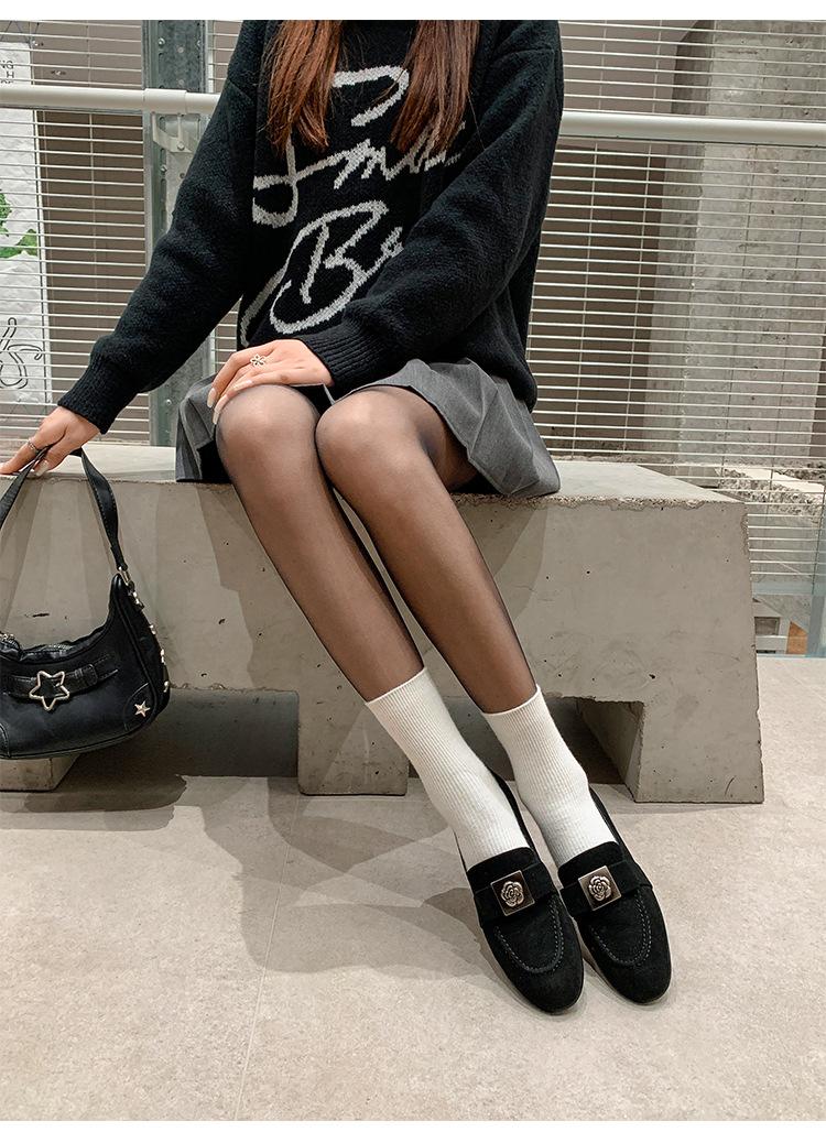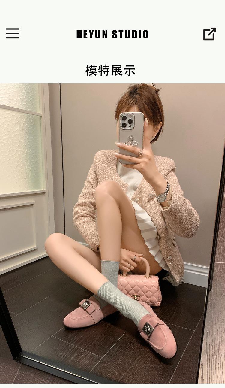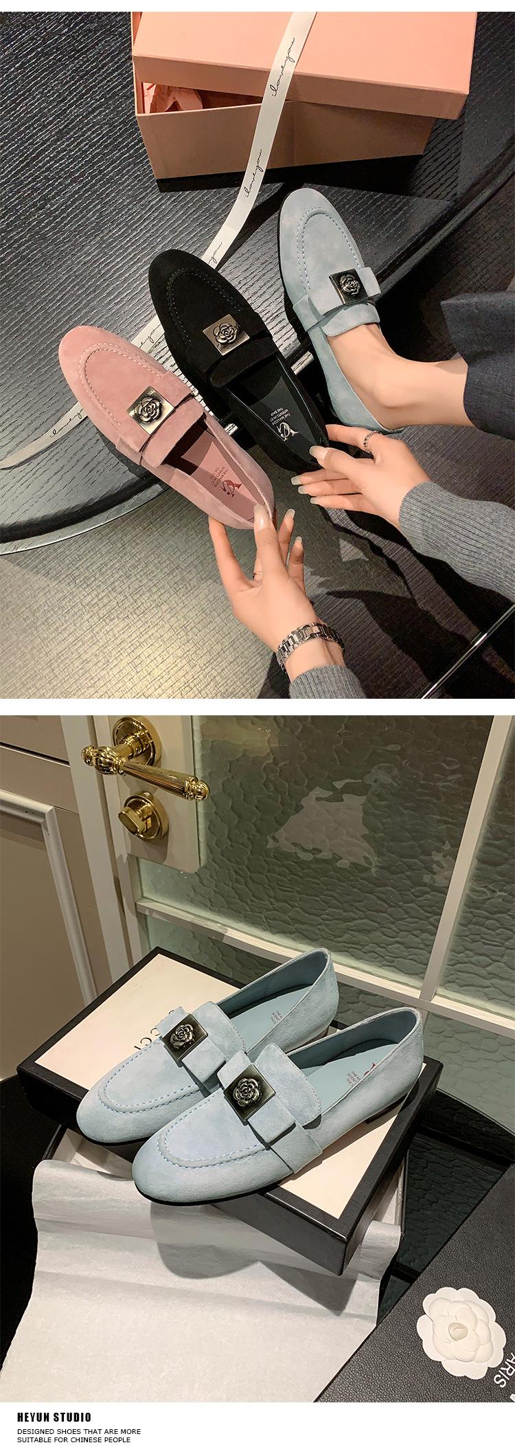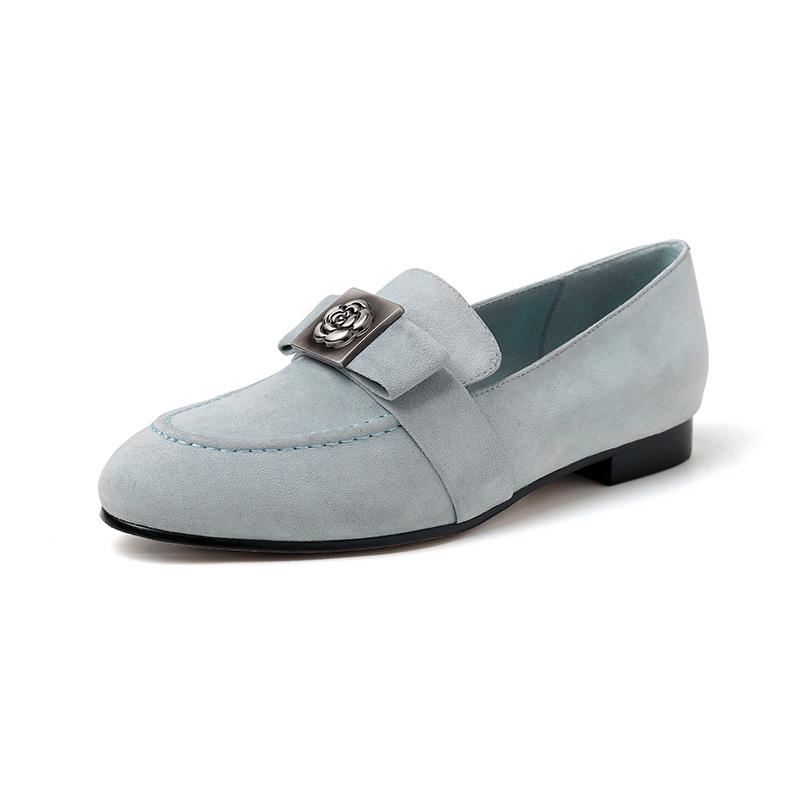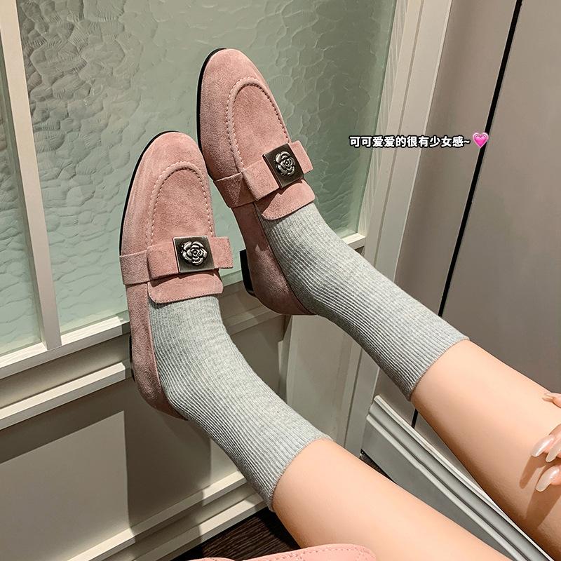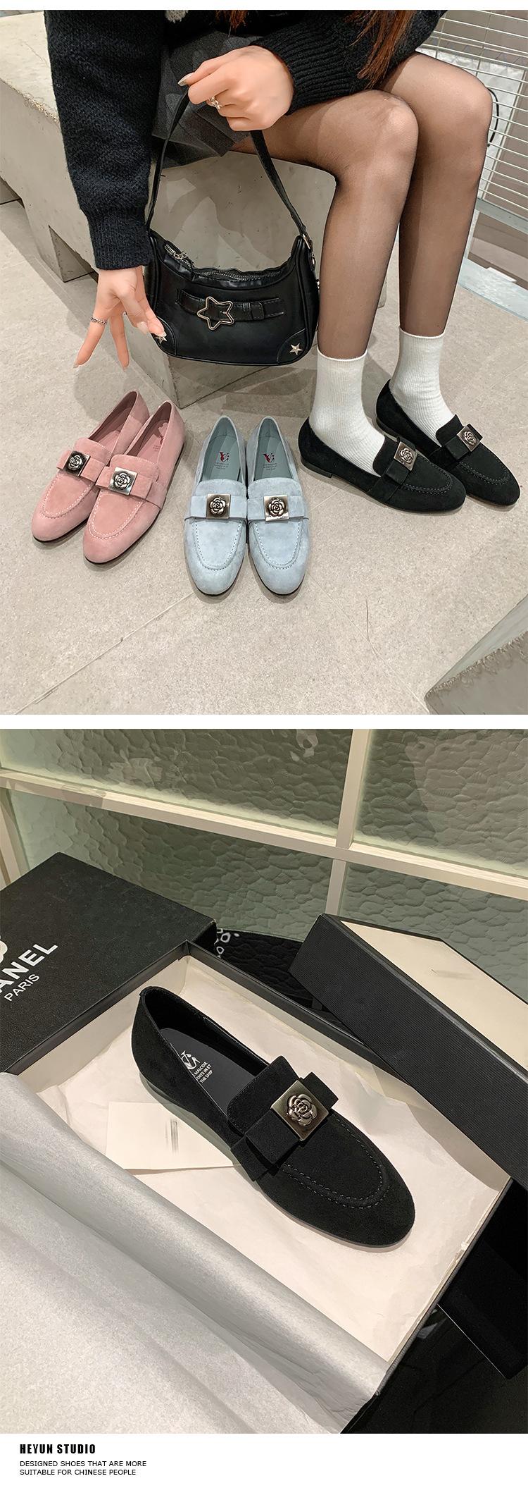 Mocasines de Moda con Hebilla Cuadrada de Camelia de Piel de Oveja para Mujer, Nuevos de Primavera y Otoño, Versátiles, Zapatos Slip-on de Cuero Genuino