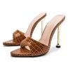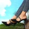 Sandalias de Aguja de Punta con Estampado de Piel de Serpiente Sexy Europeo y Americano Nuevo 2025, Color Puro Simple, Talla Grande, Zapatos de Banquete