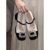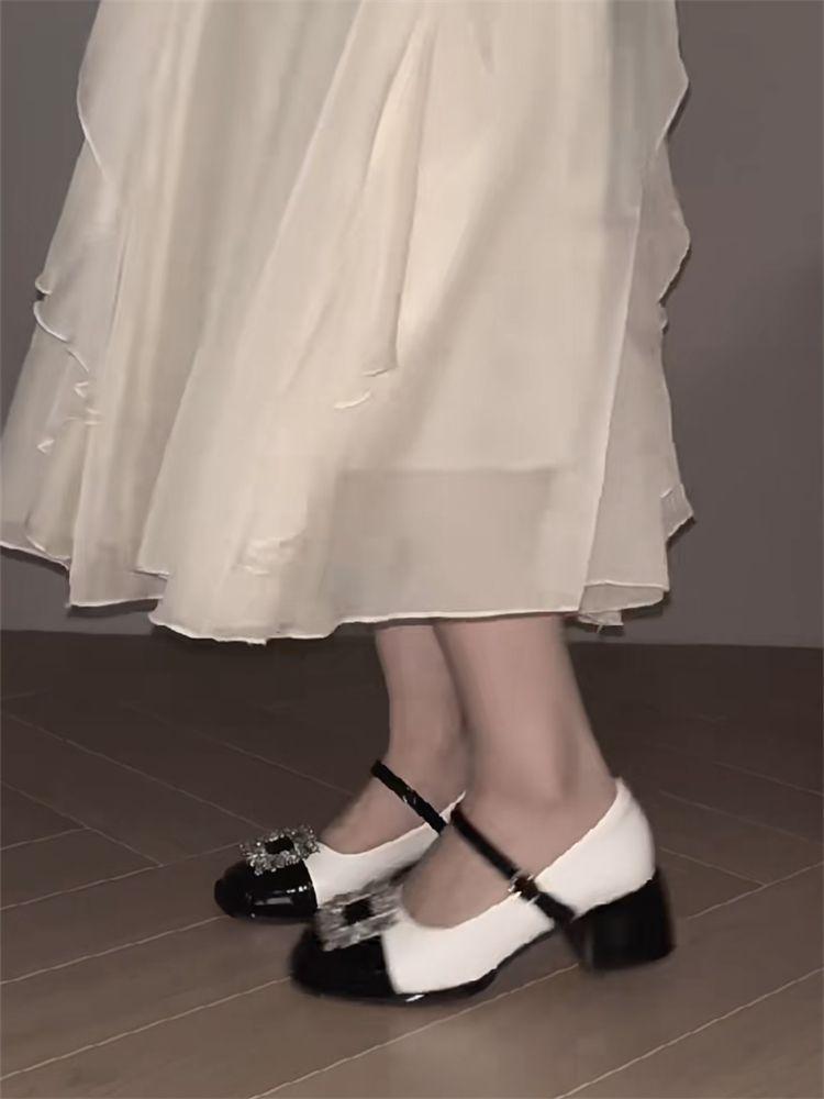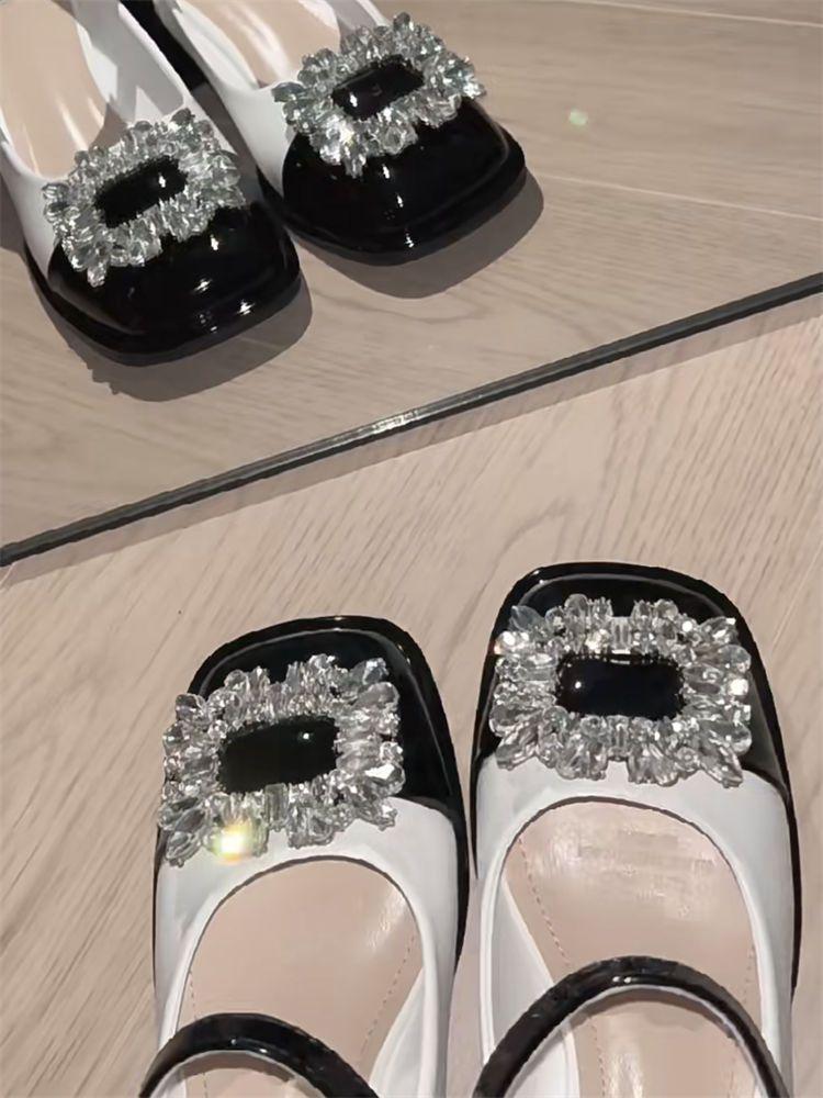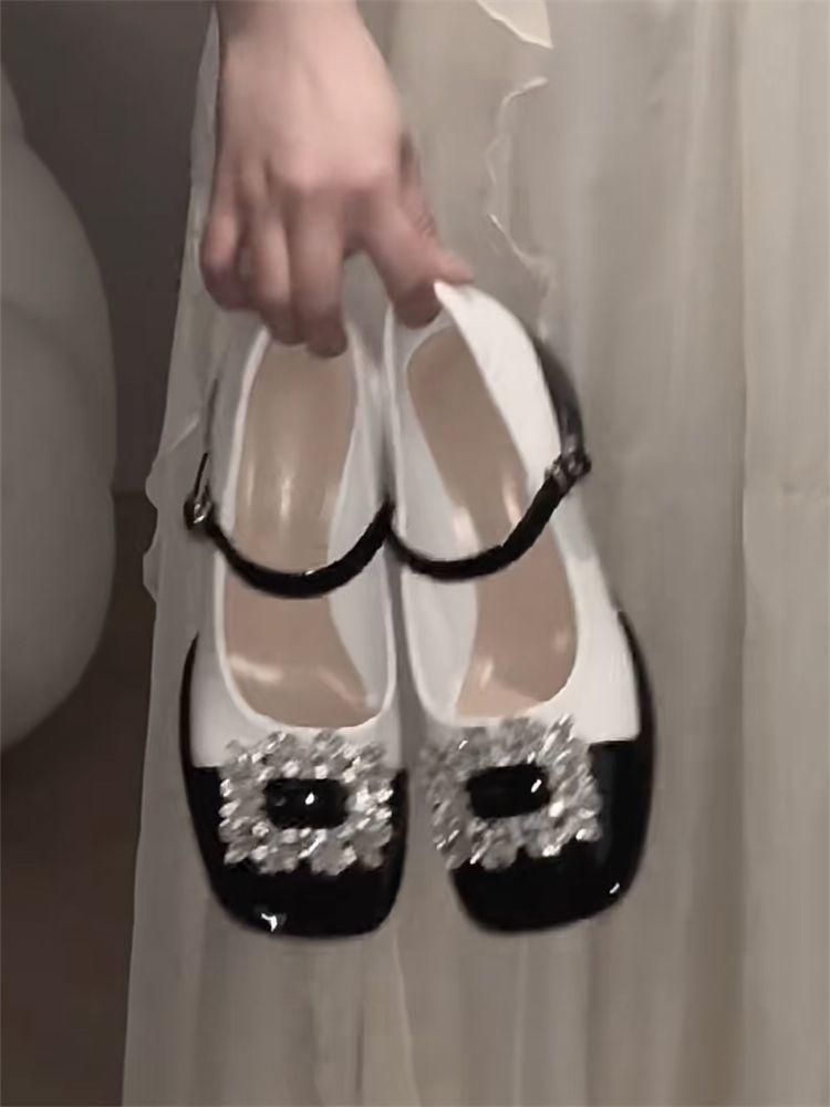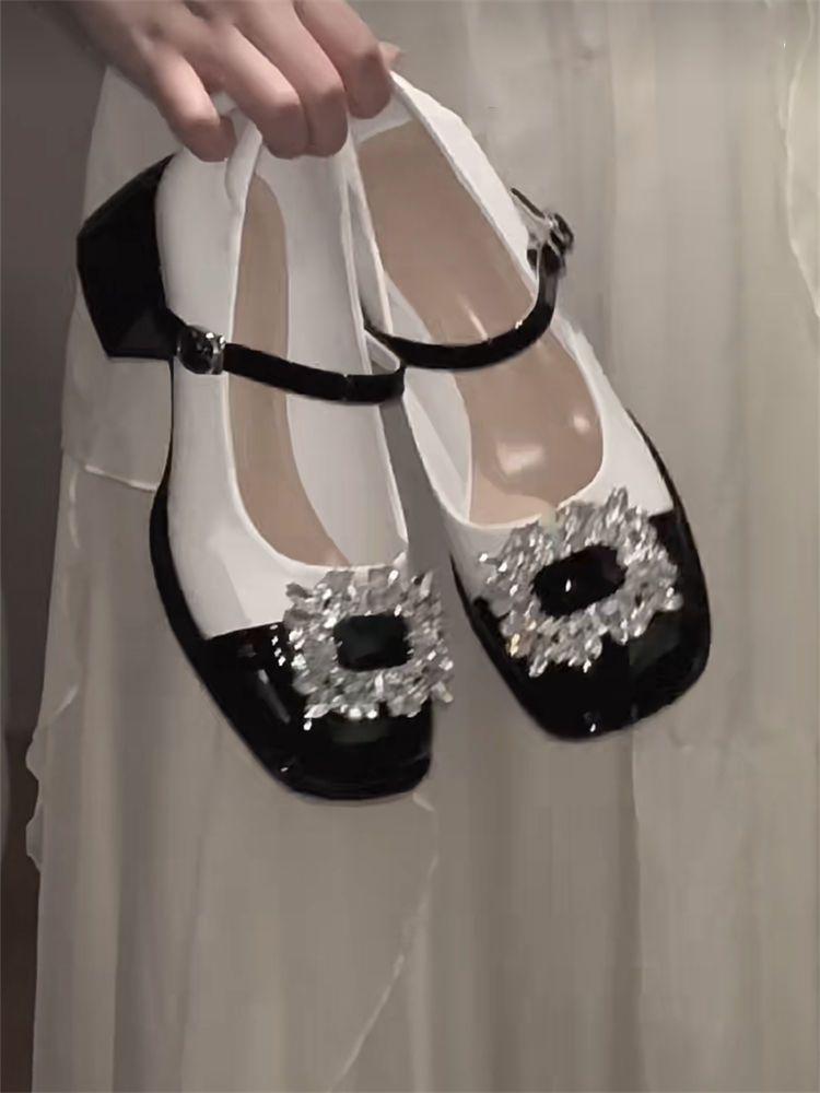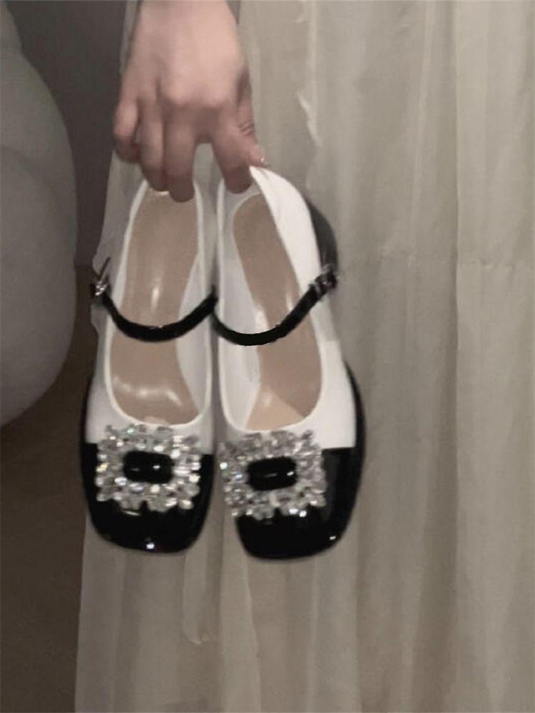 Zapatos Mary Jane franceses para mujer 2023 nueva primavera retro pedrería tacón grueso primavera y otoño punta cuadrada zapatos de cuero zapatos de una sola capa