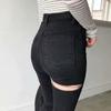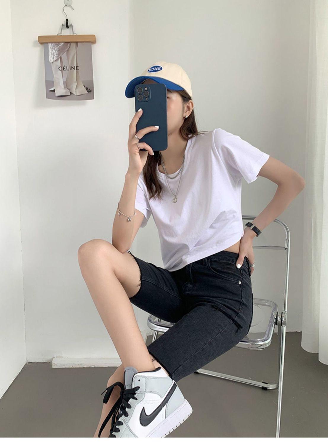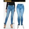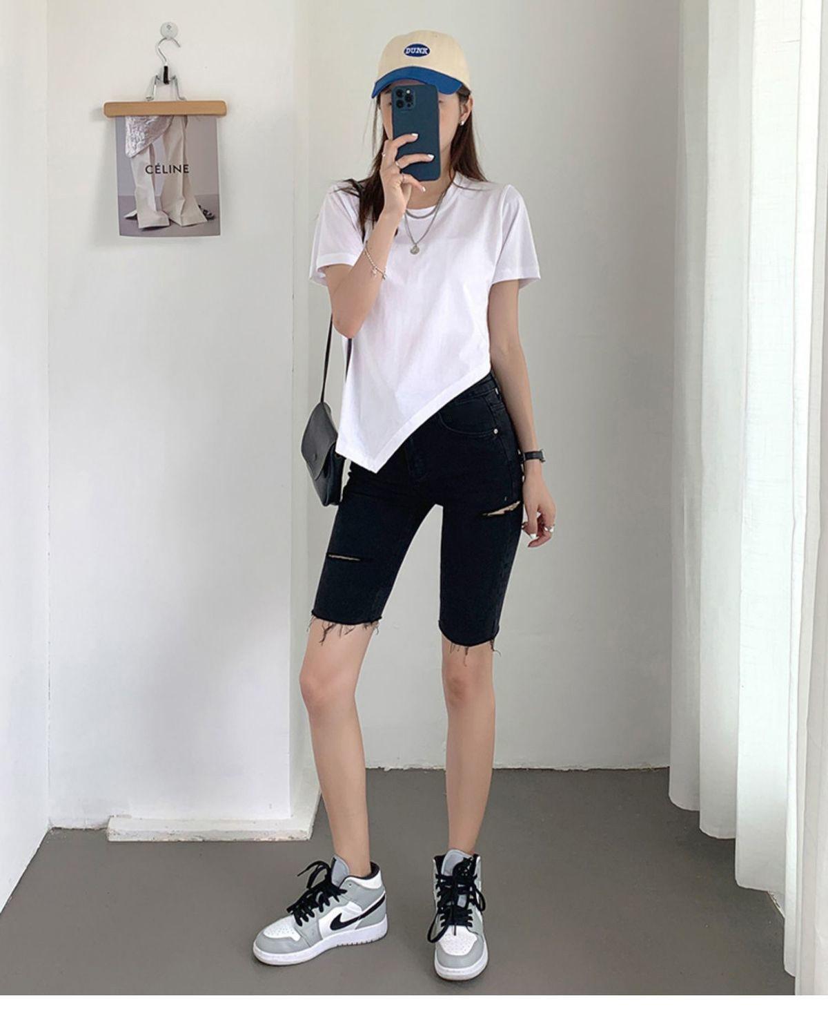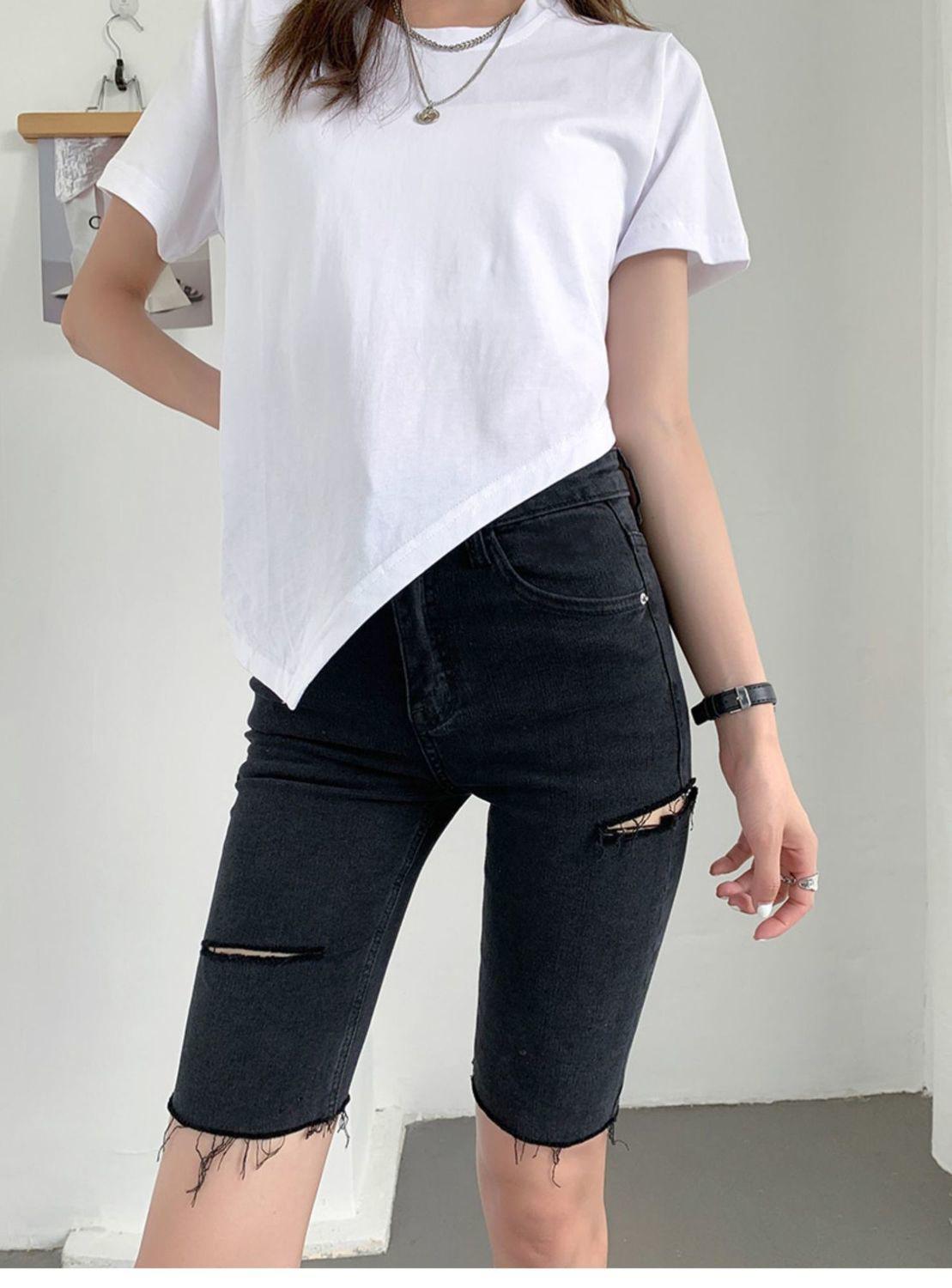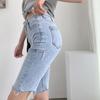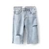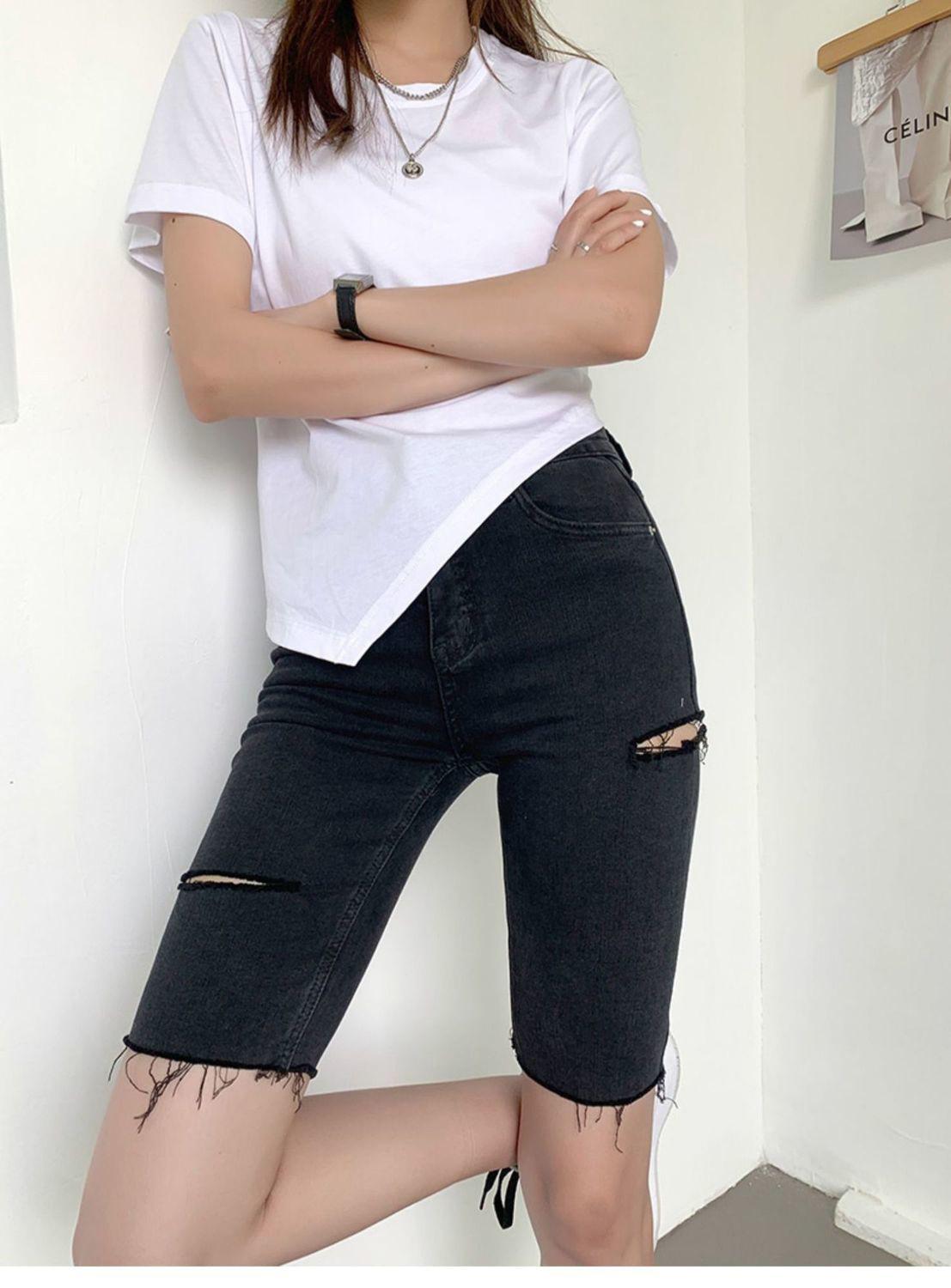 Azul claro Jeans Rotos Verano para Mujer Delgados 2021 Nuevo Elásticos Ajustados Cintura Alta Aspecto Delgado Pantalones Cinco Puntos