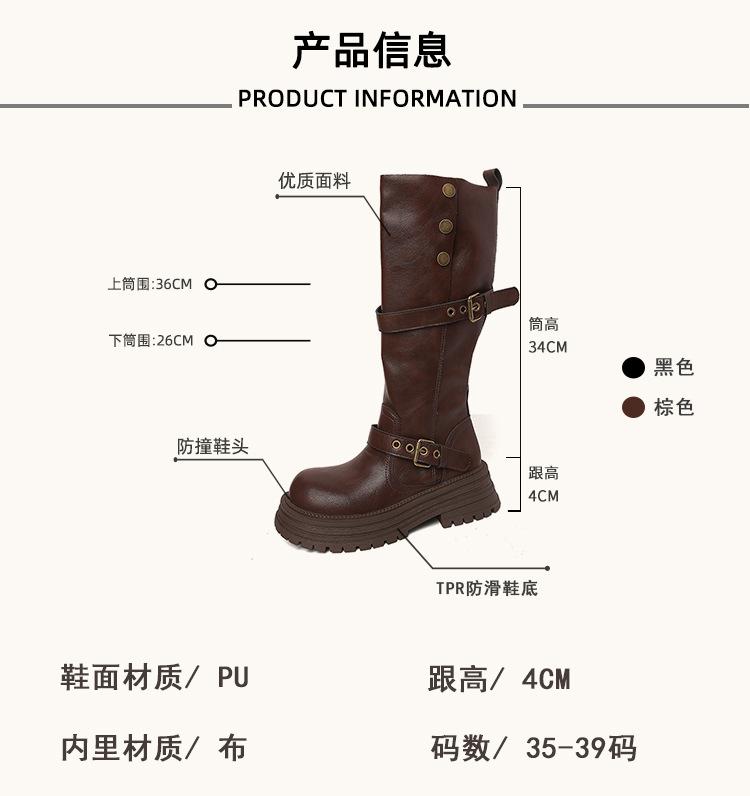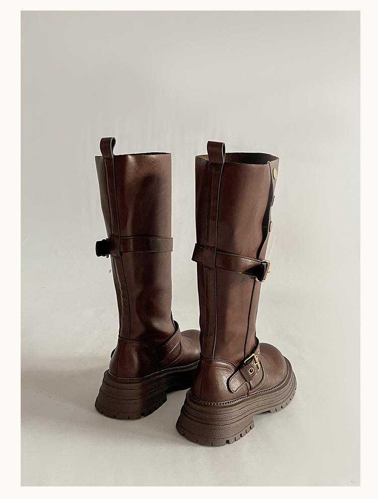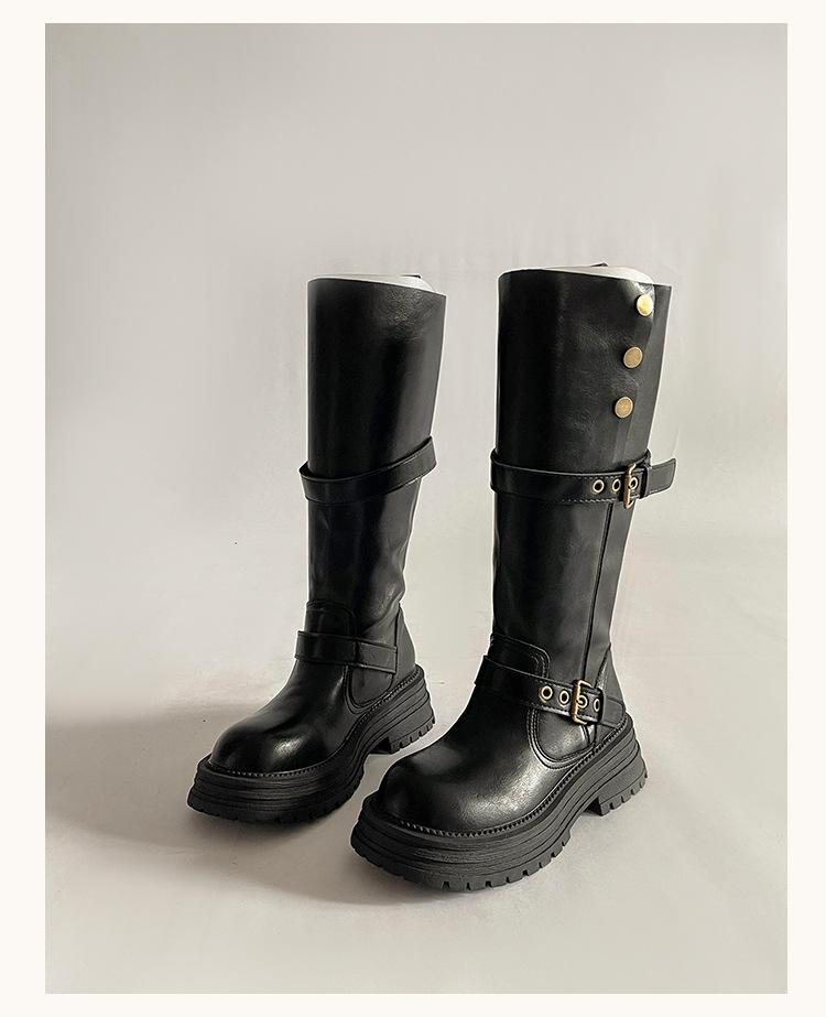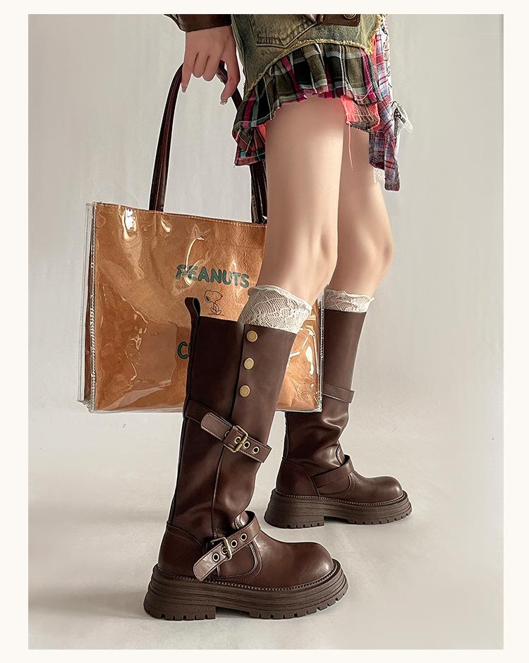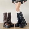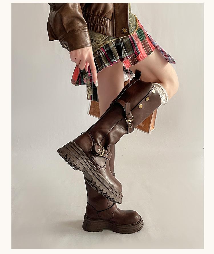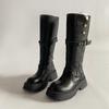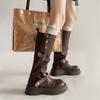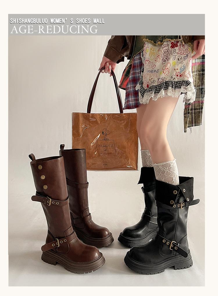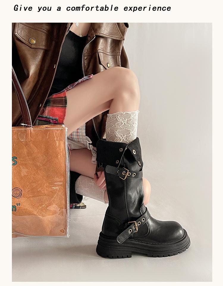 Botas de Suela Gruesa para Aumentar la Altura, Botas Largas para Mujer, Verano 2025 Nuevo Estilo Británico Versátil Tacón Grueso Moda Retro Botas de Caballero