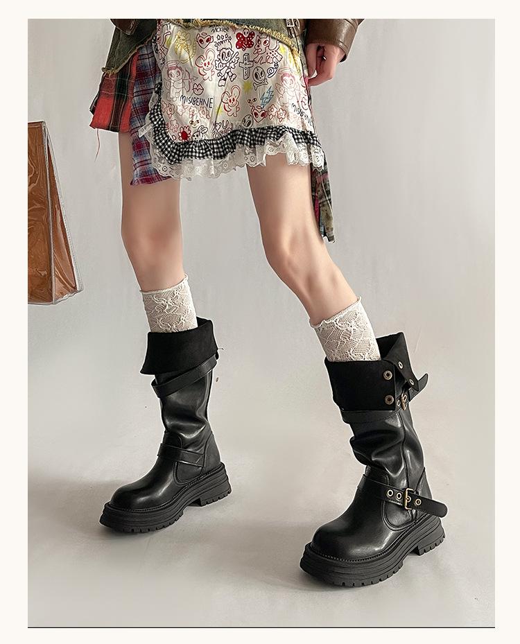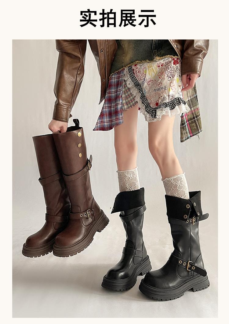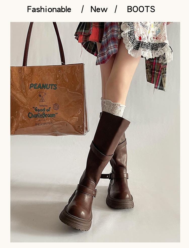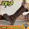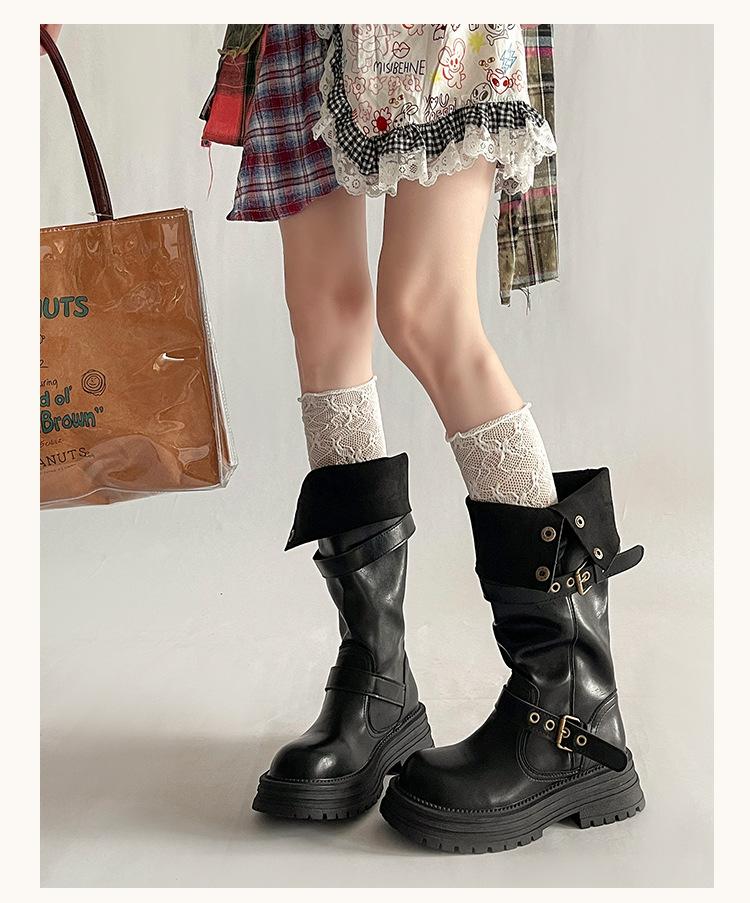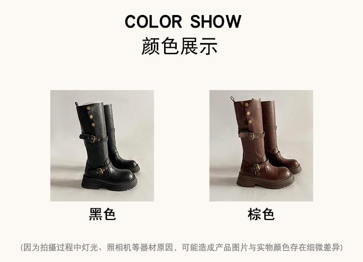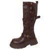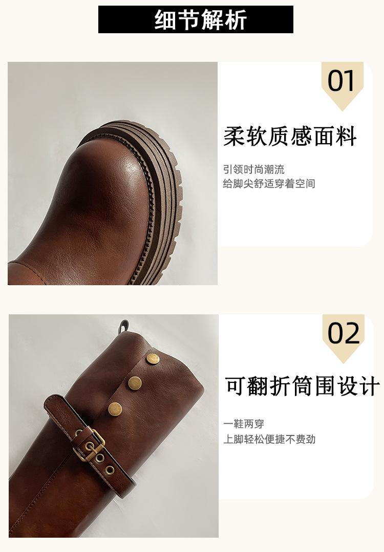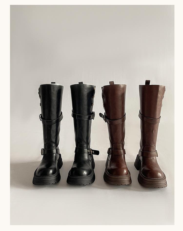 Botas de Suela Gruesa para Aumentar la Altura, Botas Largas para Mujer, Verano 2025 Nuevo Estilo Británico Versátil Tacón Grueso Moda Retro Botas de Caballero