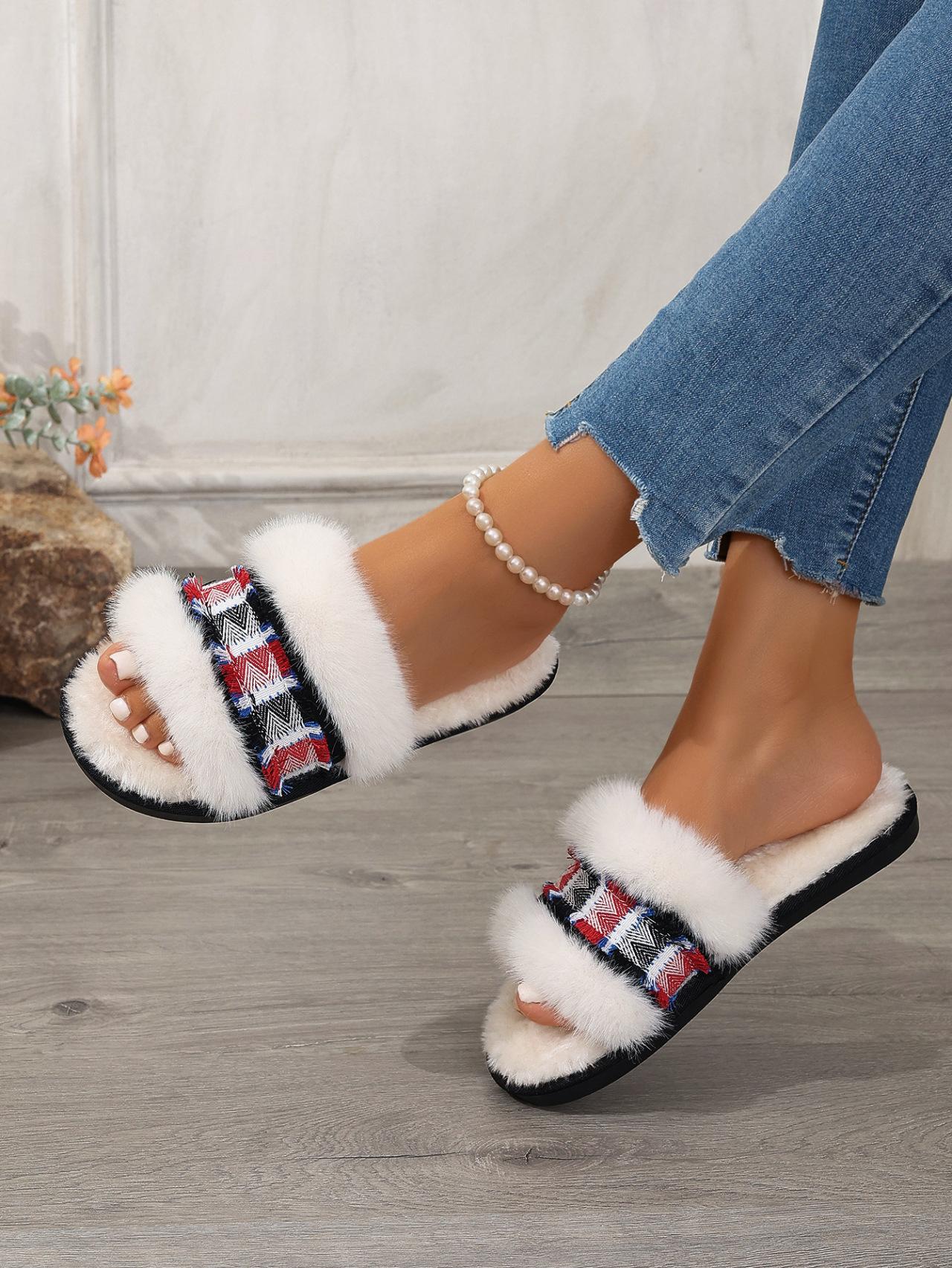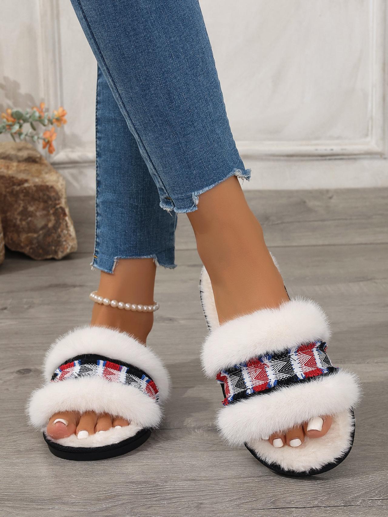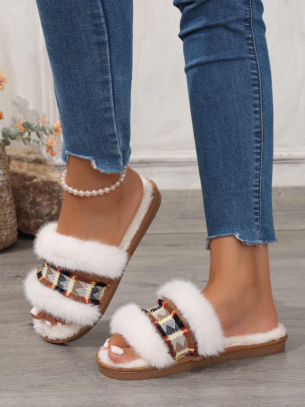 Sandalias de Mujer de Moda Estilo Francés 2024 Nuevas Pantuflas de Verano Zapatos Planos de Mujer Talla Grande Transfronteriza Comercio Exterior Zapatos Peludos