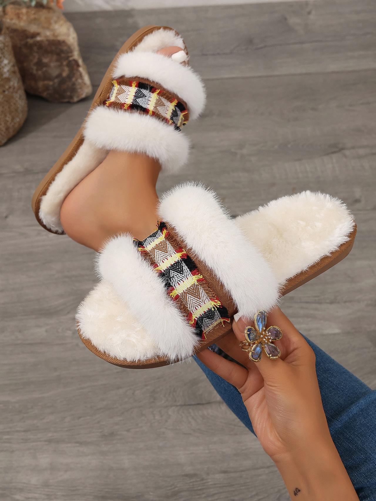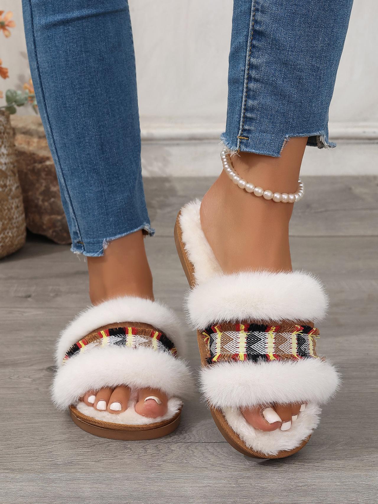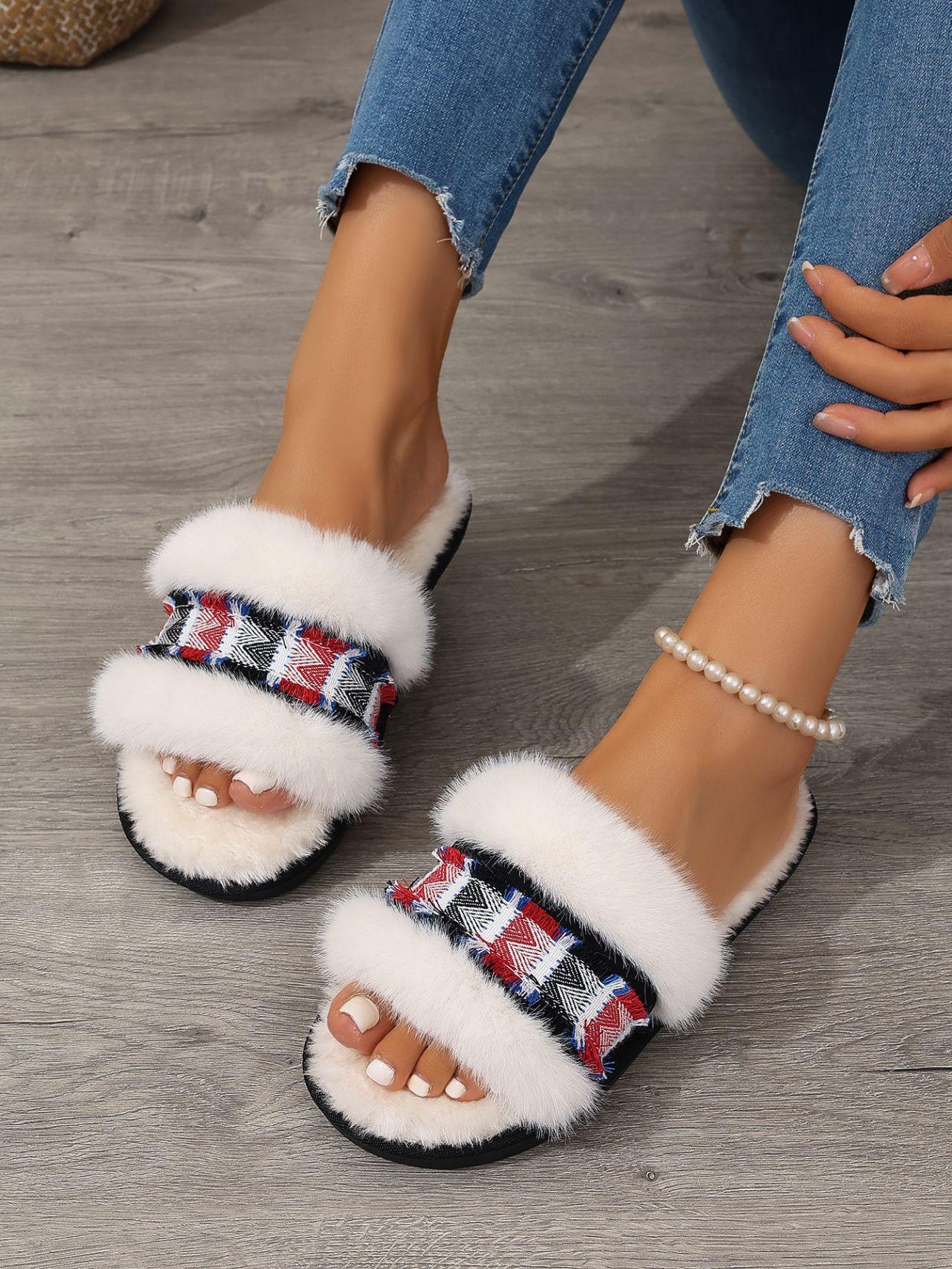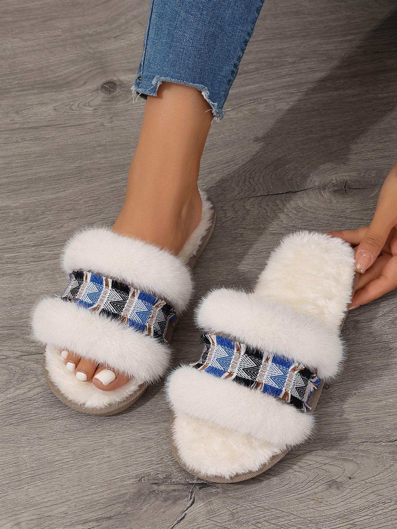Sandalias de Mujer de Moda Estilo Francés 2024 Nuevas Pantuflas de Verano Zapatos Planos de Mujer Talla Grande Transfronteriza Comercio Exterior Zapatos Peludos