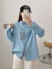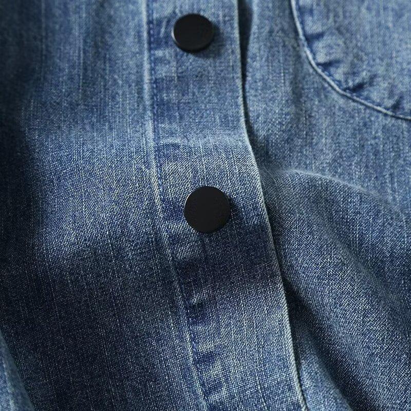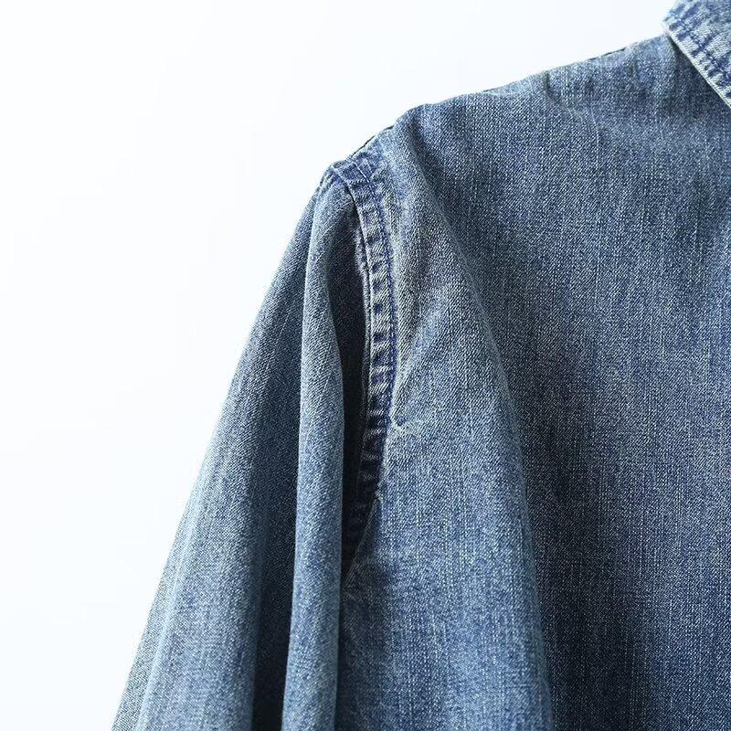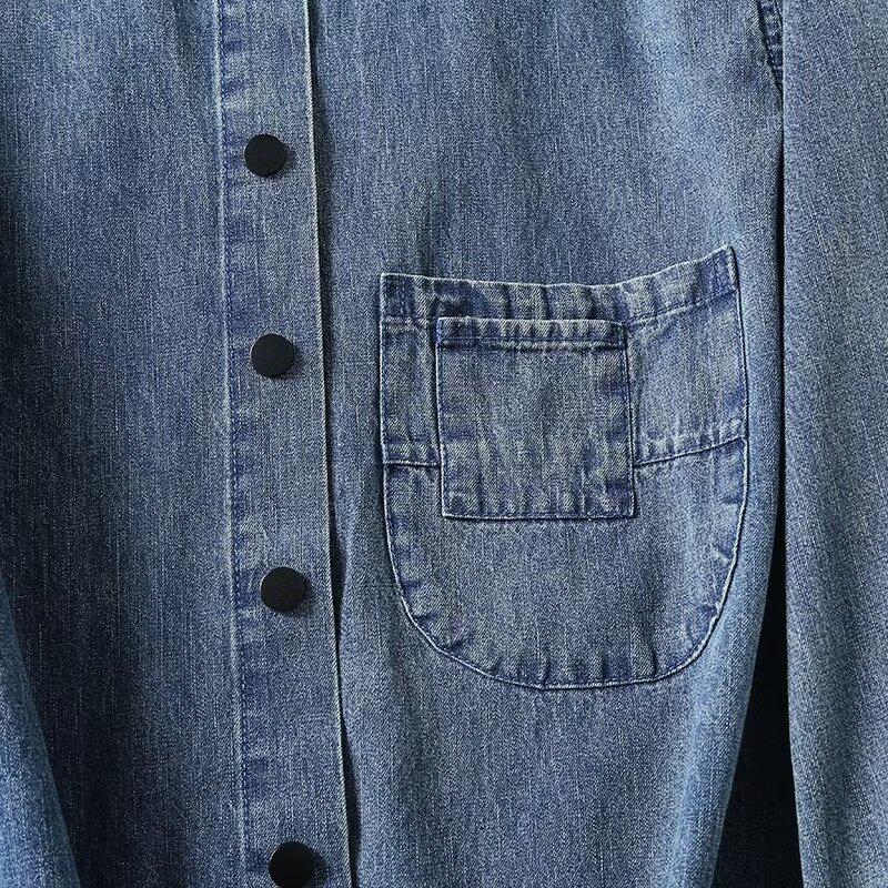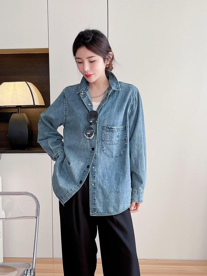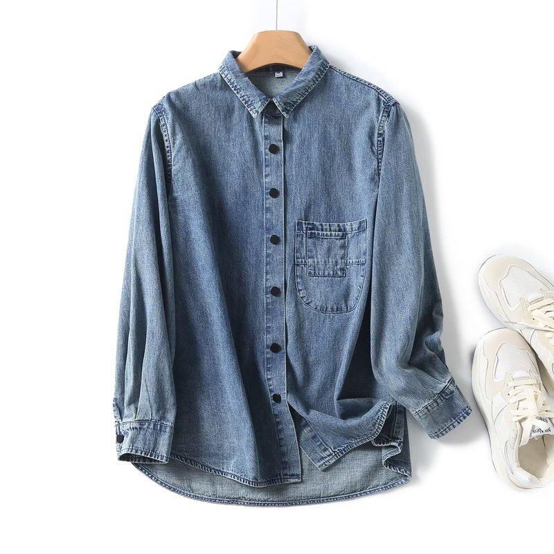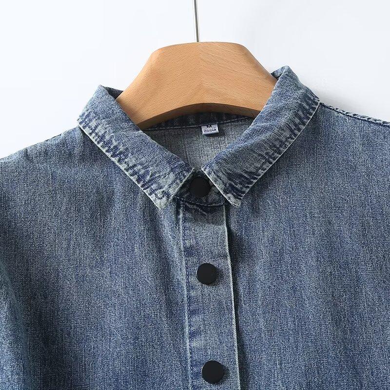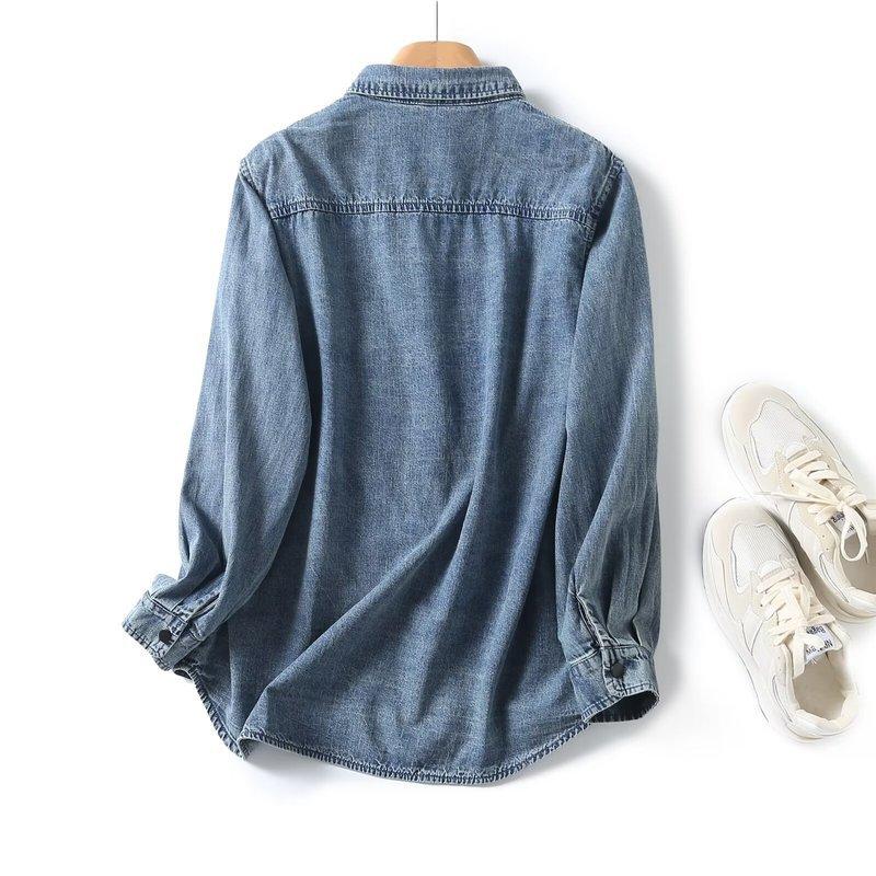 Camisa de mezclilla de algodón lavado suelta de solapa vintage desgastada primavera 2024 cárdigan de solapa abrigo delgado para mujer