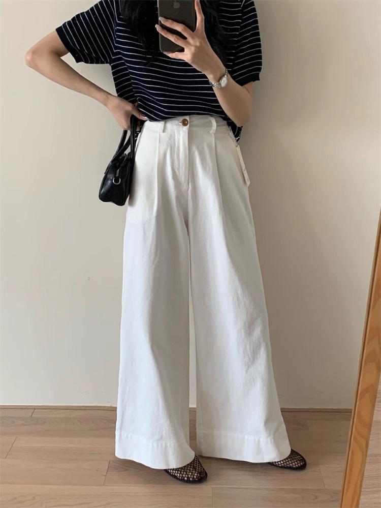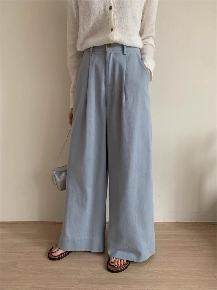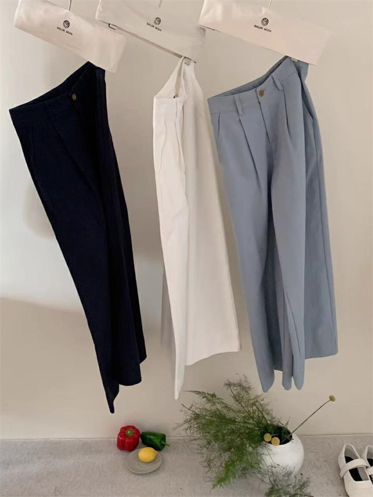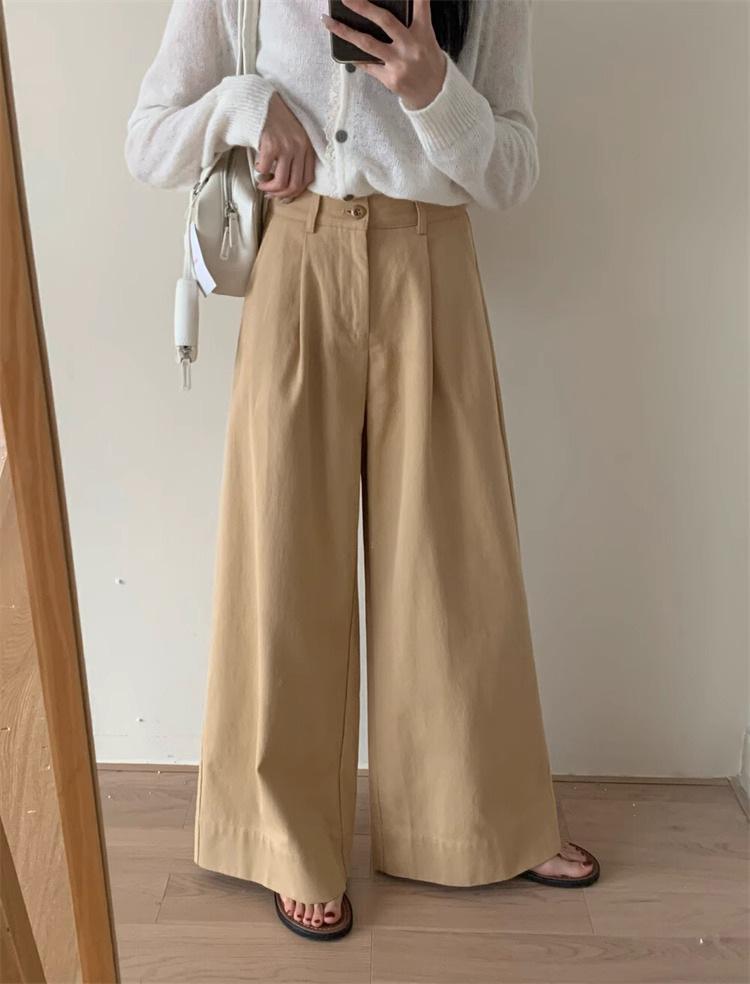 Primavera y Verano 2025 Nuevo Color Sólido Combinable Plisado Recto Suelto Pantalones Casuales Pantalones Recortados Adelgazantes para Mujer
