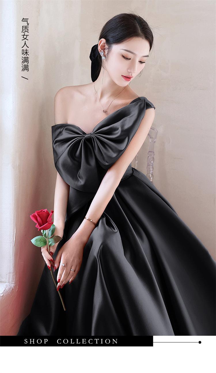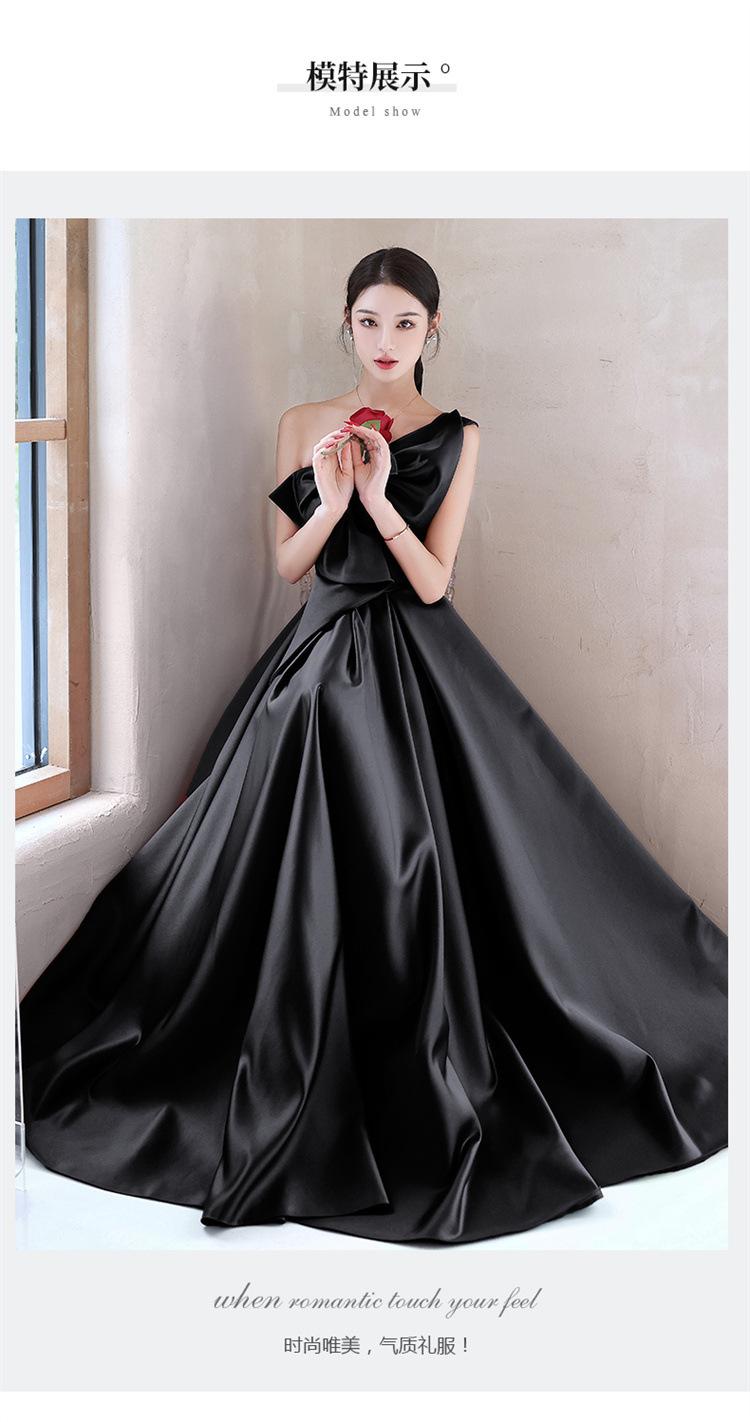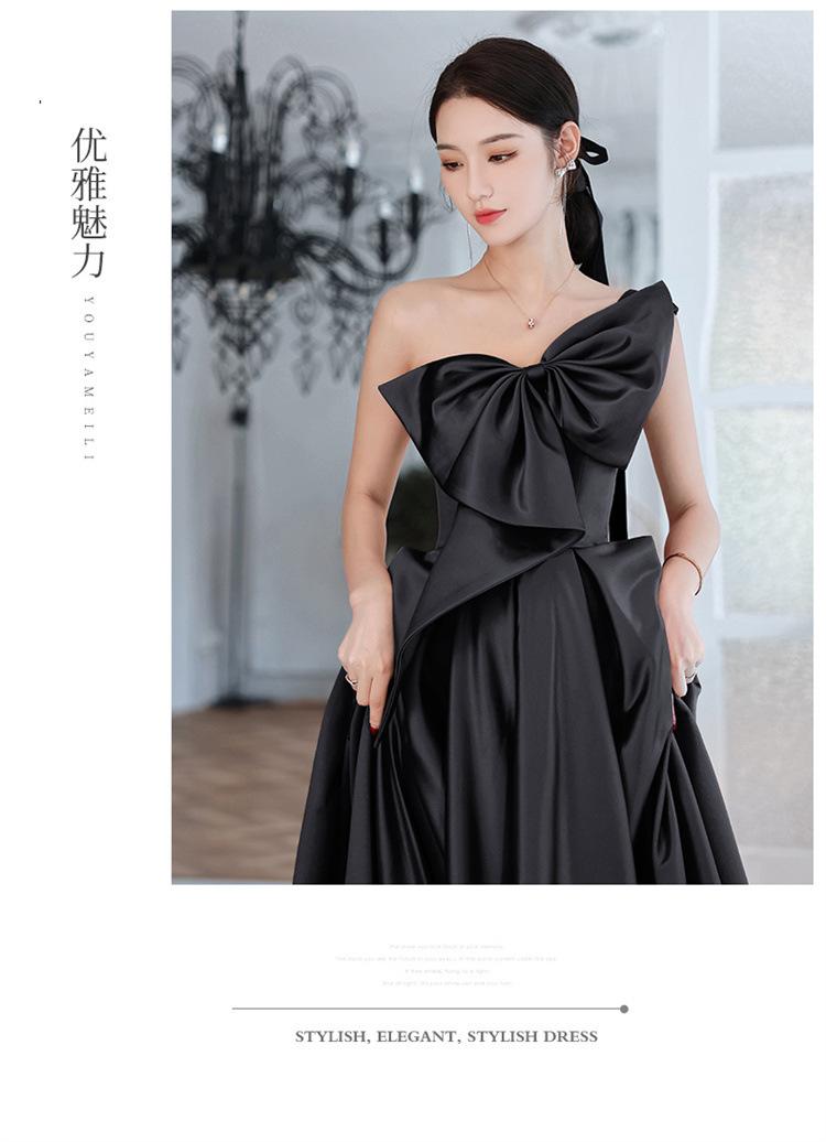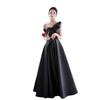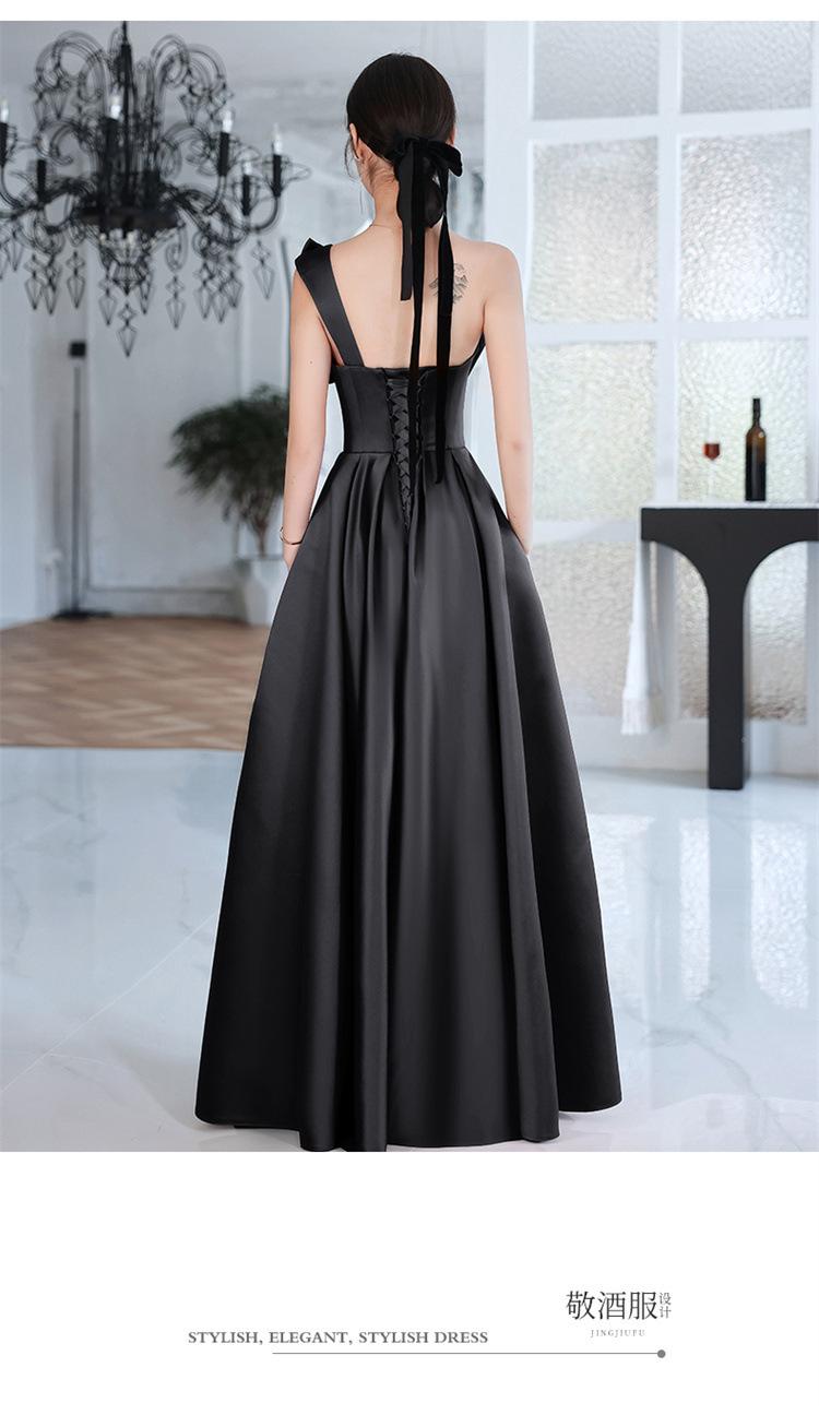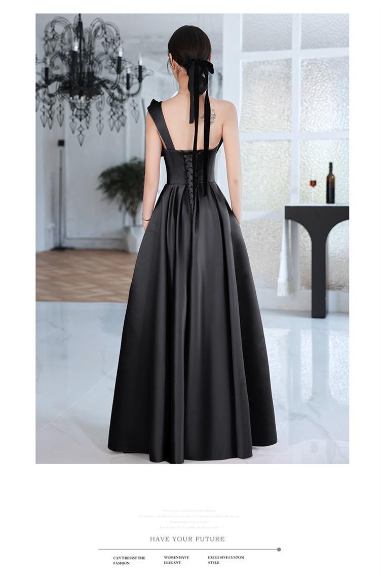 Vestido de Noche Negro Europeo y Americano 2025 Nuevo Primavera y Verano Satén Elegante Vestido para Banquete Reunión Anual de Empresa