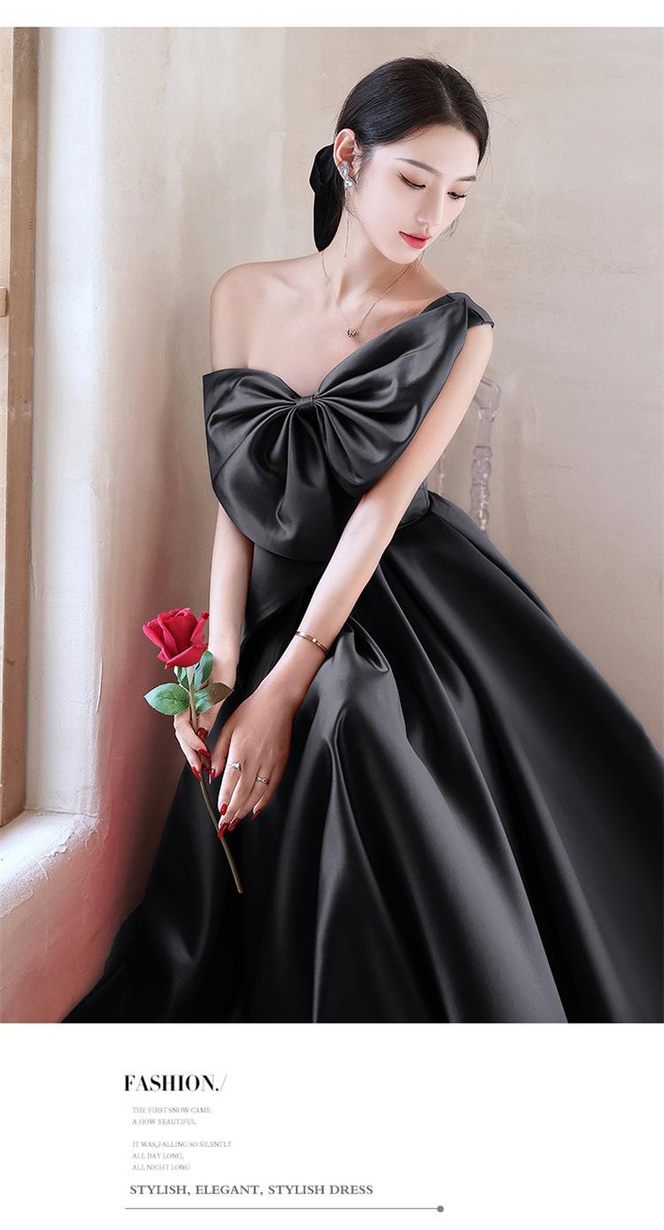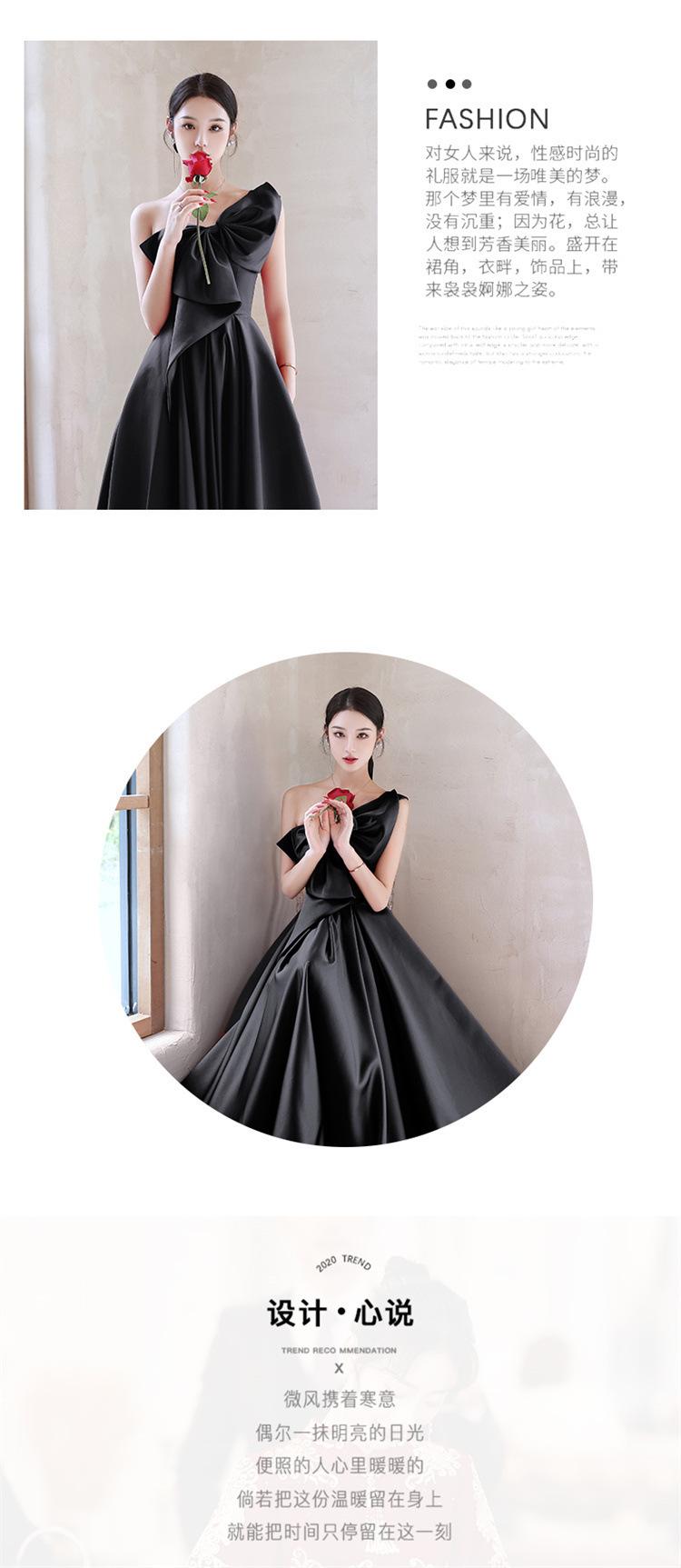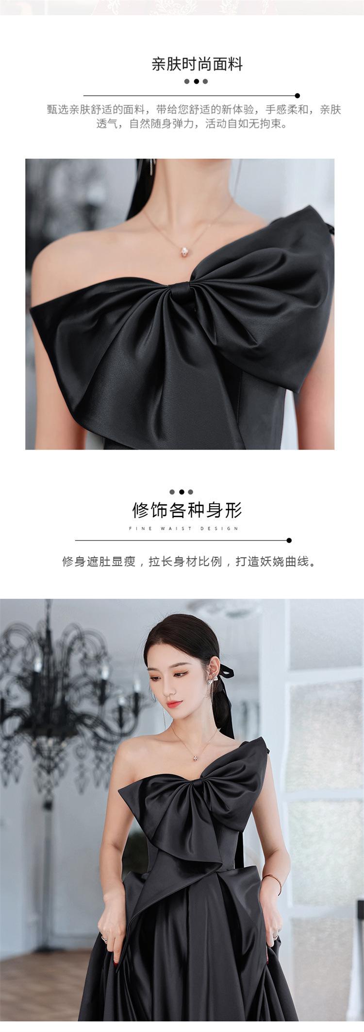 Vestido de Noche Negro Europeo y Americano 2025 Nuevo Primavera y Verano Satén Elegante Vestido para Banquete Reunión Anual de Empresa