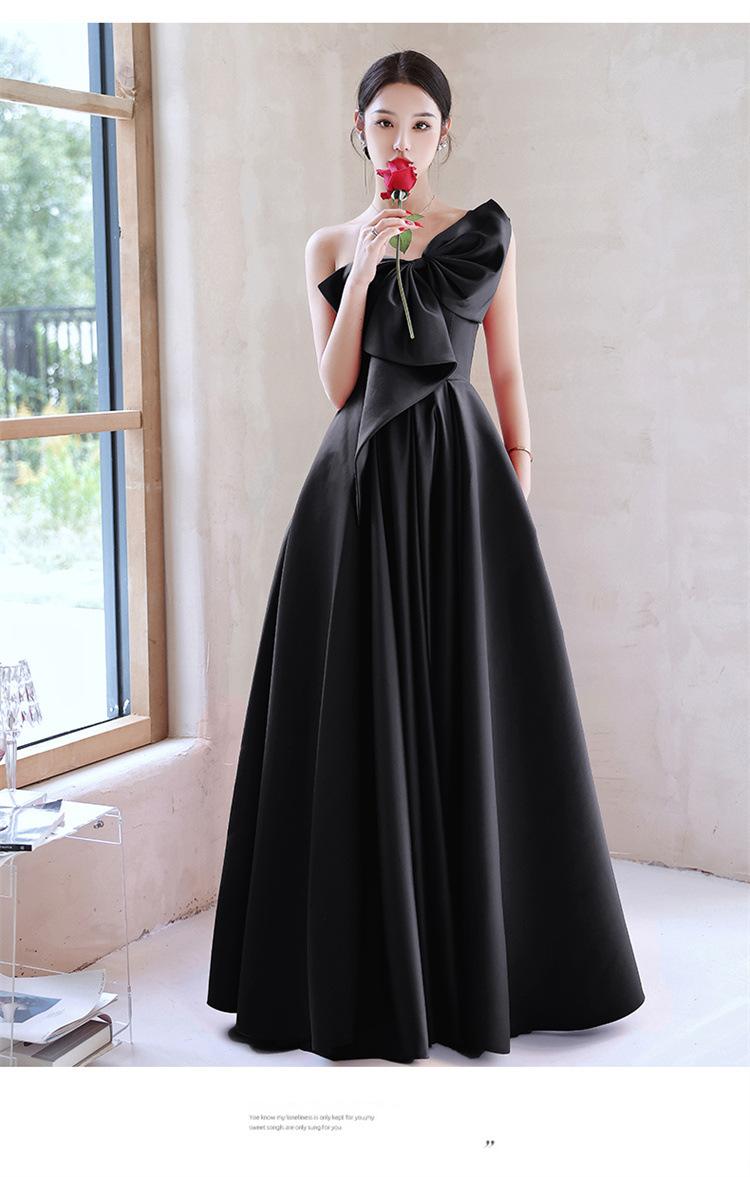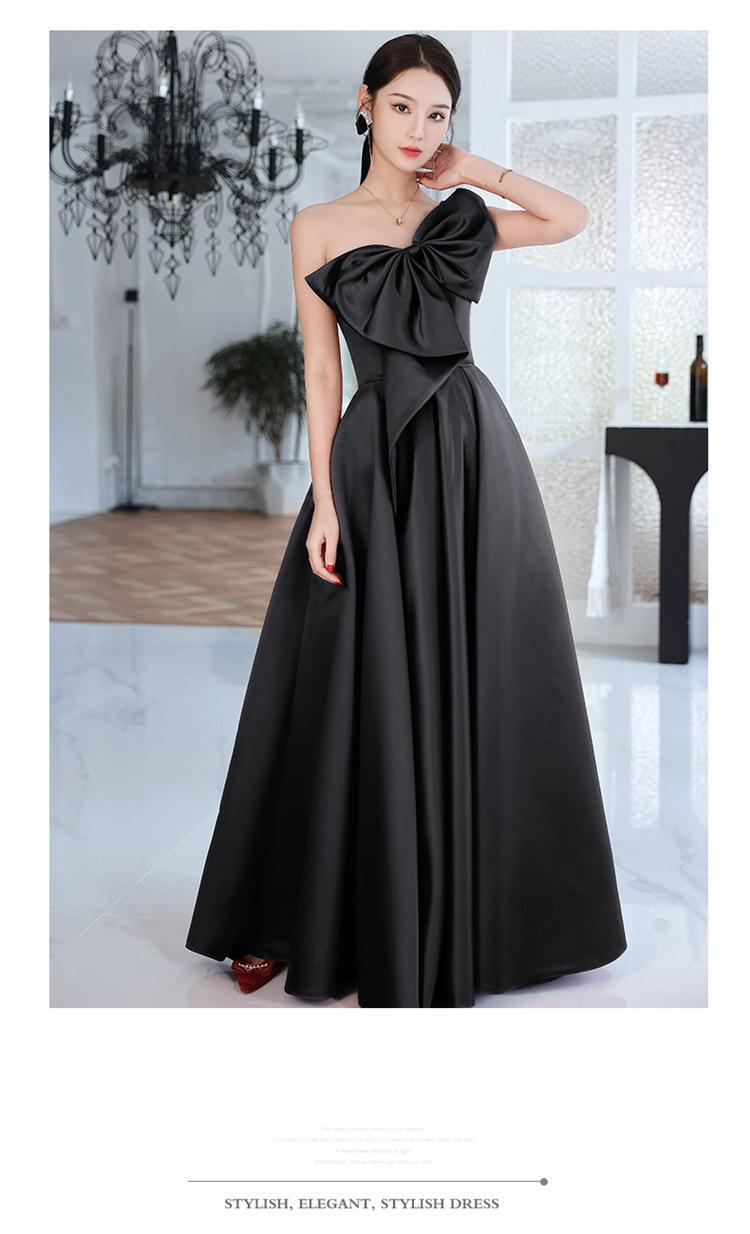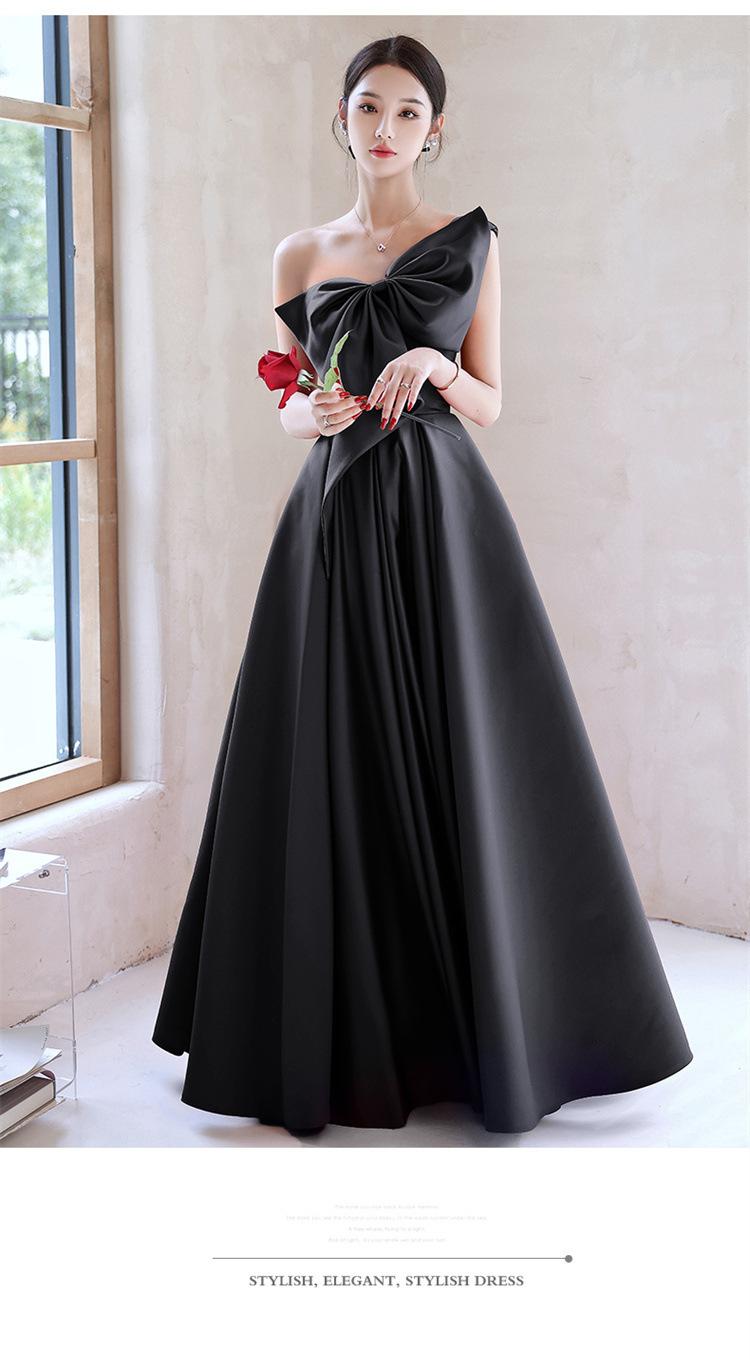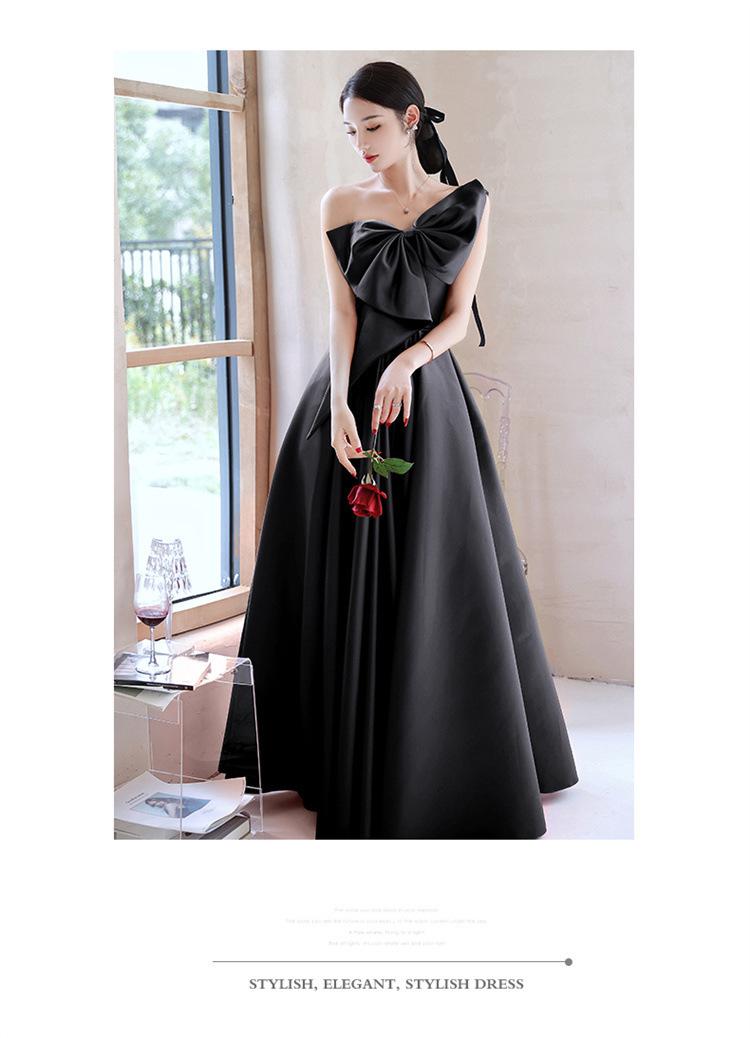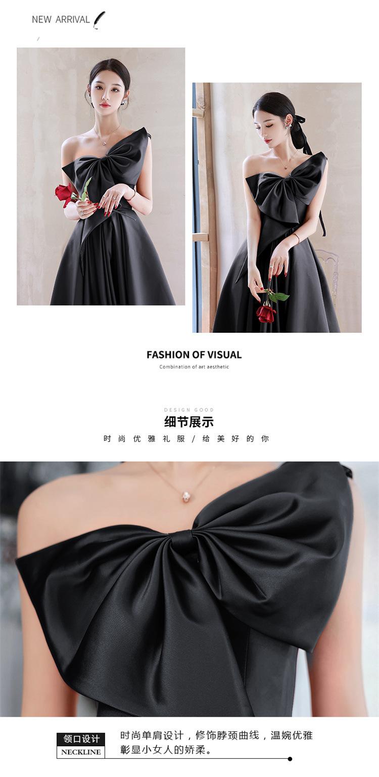 Vestido de Noche Negro Europeo y Americano 2025 Nuevo Primavera y Verano Satén Elegante Vestido para Banquete Reunión Anual de Empresa
