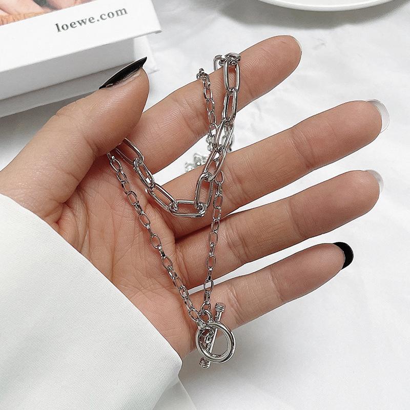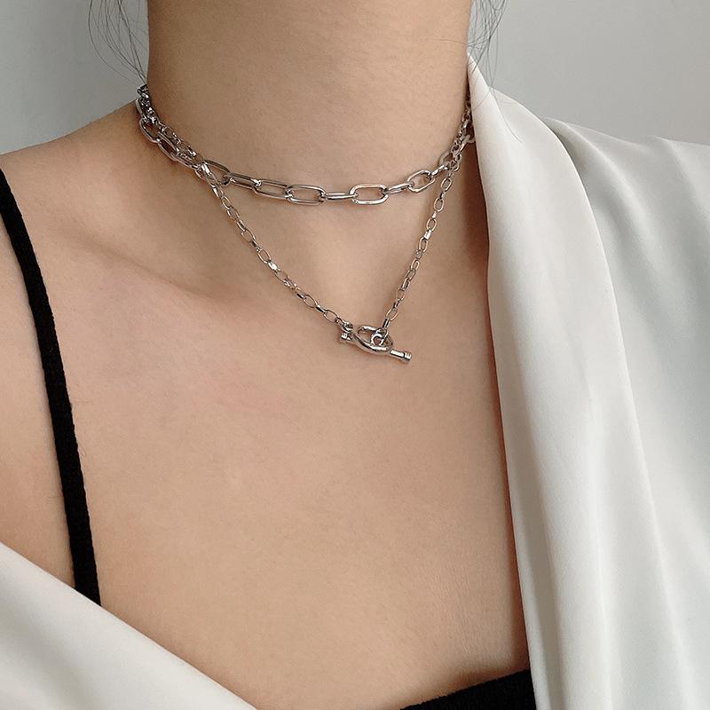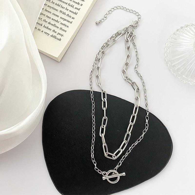 Collar de doble capa de personalidad estilo europeo y americano para mujer, estilo minimalista hip-hop, temperamento de celebridad de Internet, metal moderno, gargantilla, cadena para la clavícula