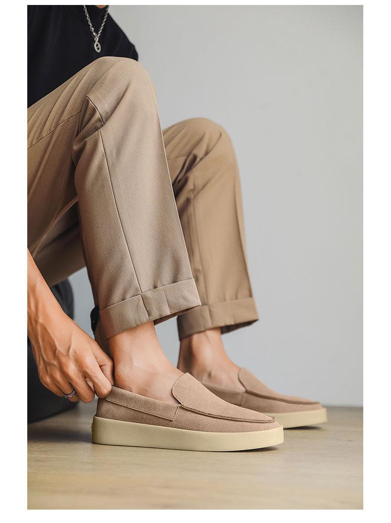 Clásico Europeo Slip-On de Gamuza Zapatos de Hombre Casuales de Cuero Genuino Lp Mocasines Planos de Gamuza