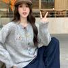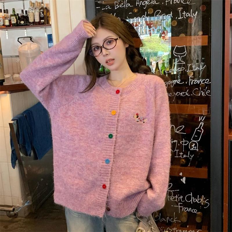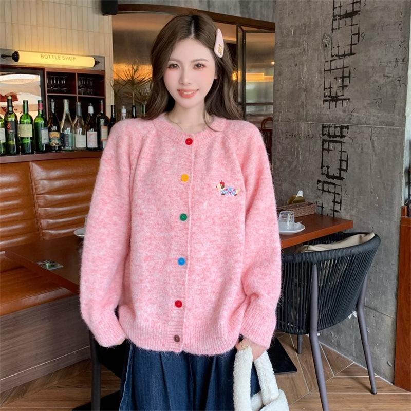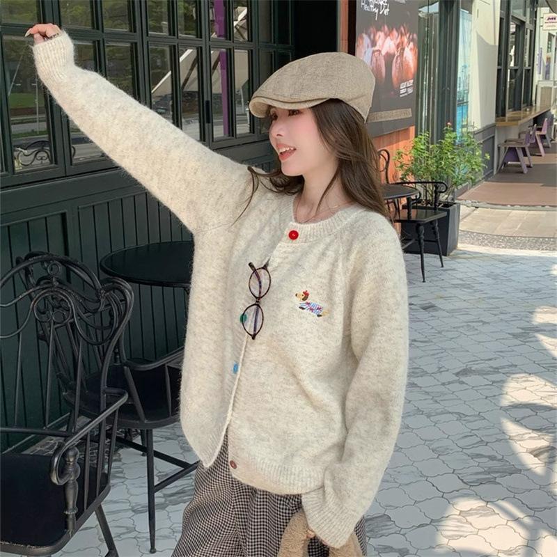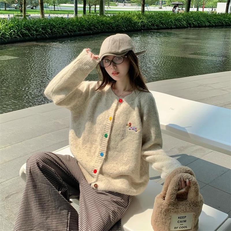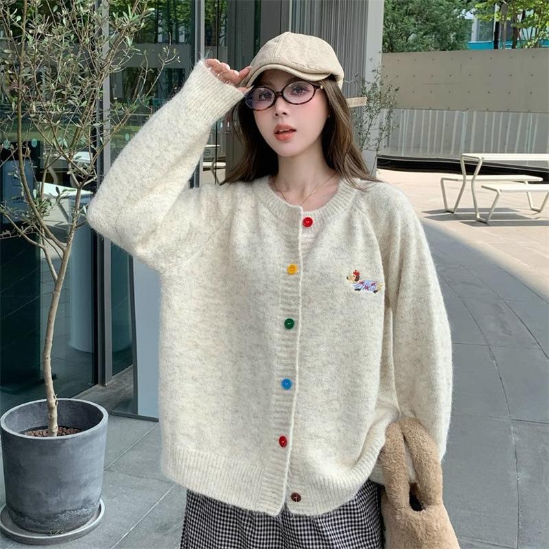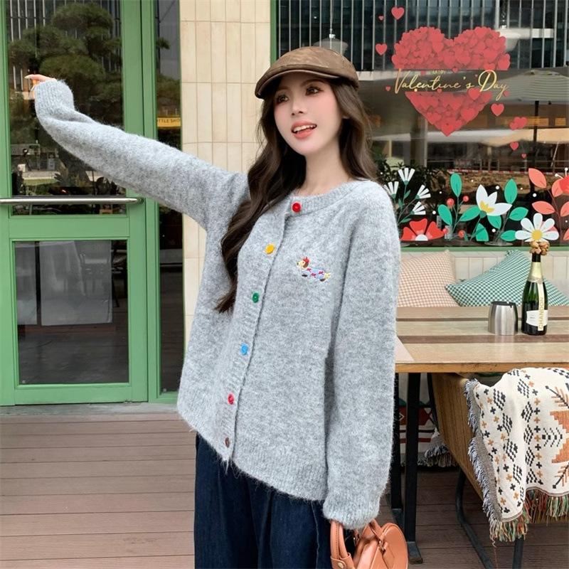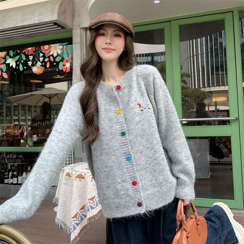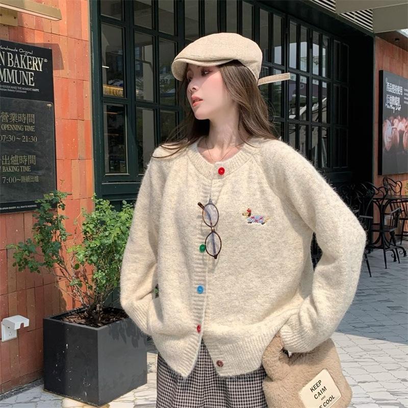 Sudadera de cuello redondo Dopamine con botones de color, bordado de cachorro, manga larga, cárdigan de punto para mujer, otoño 2024, estilo coreano, top combinable