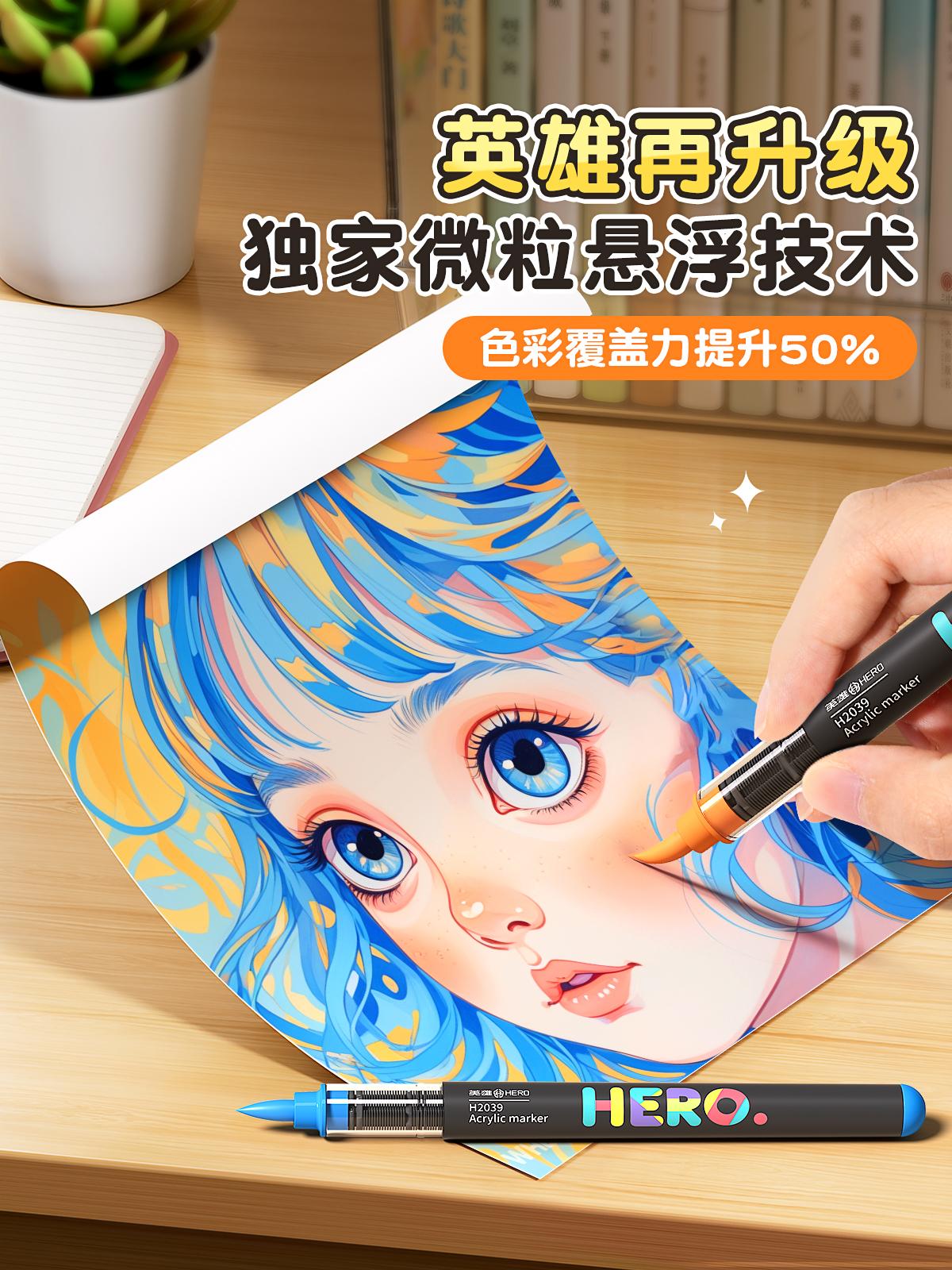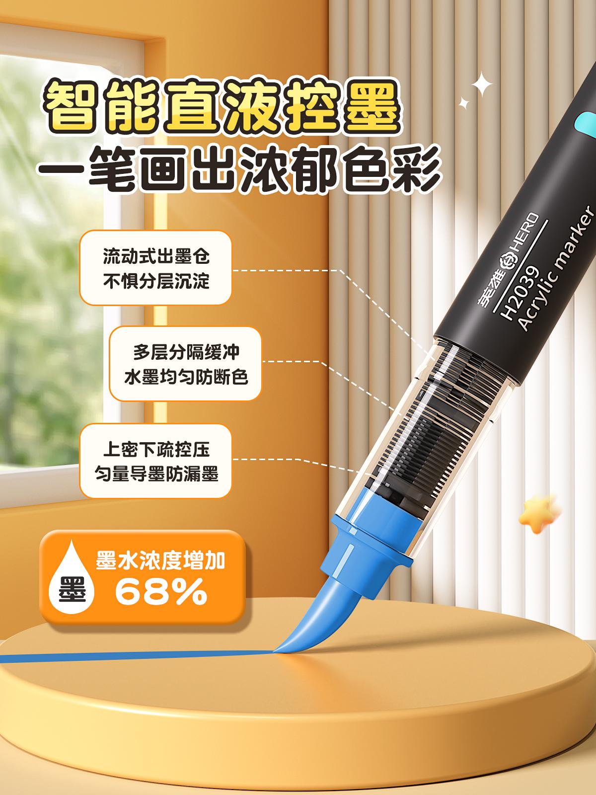 Marcador Acrílico Líquido Directo Hero Little Black Box Punta Suave Pluma de Acuarela para Arte de Escuela Primaria Jardín de Niños 60 Colores Dibujo