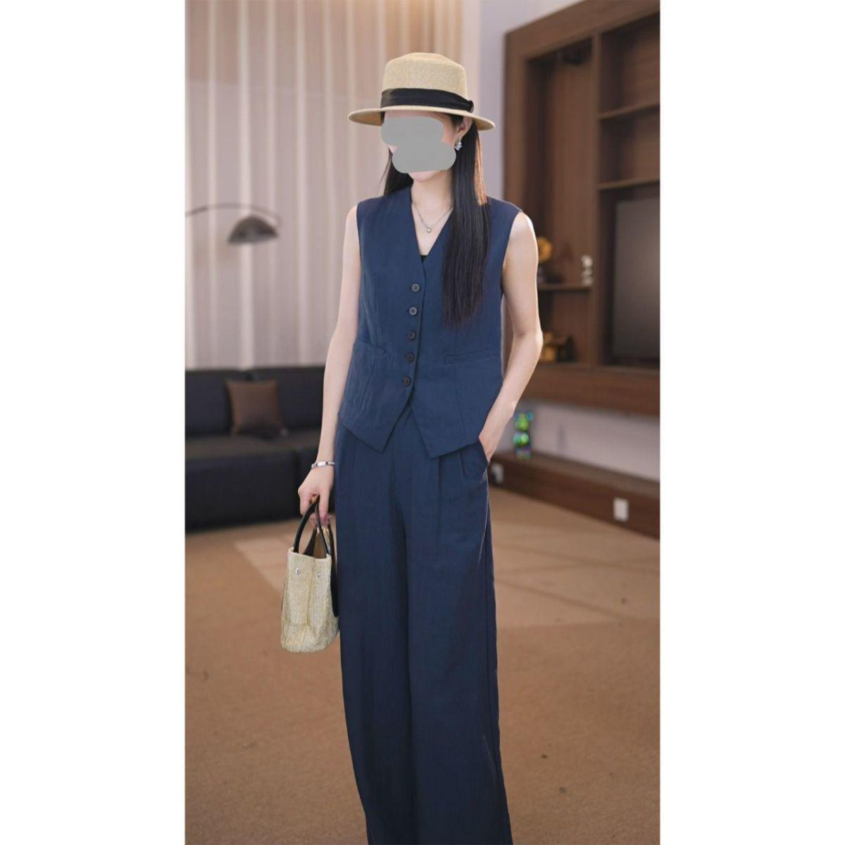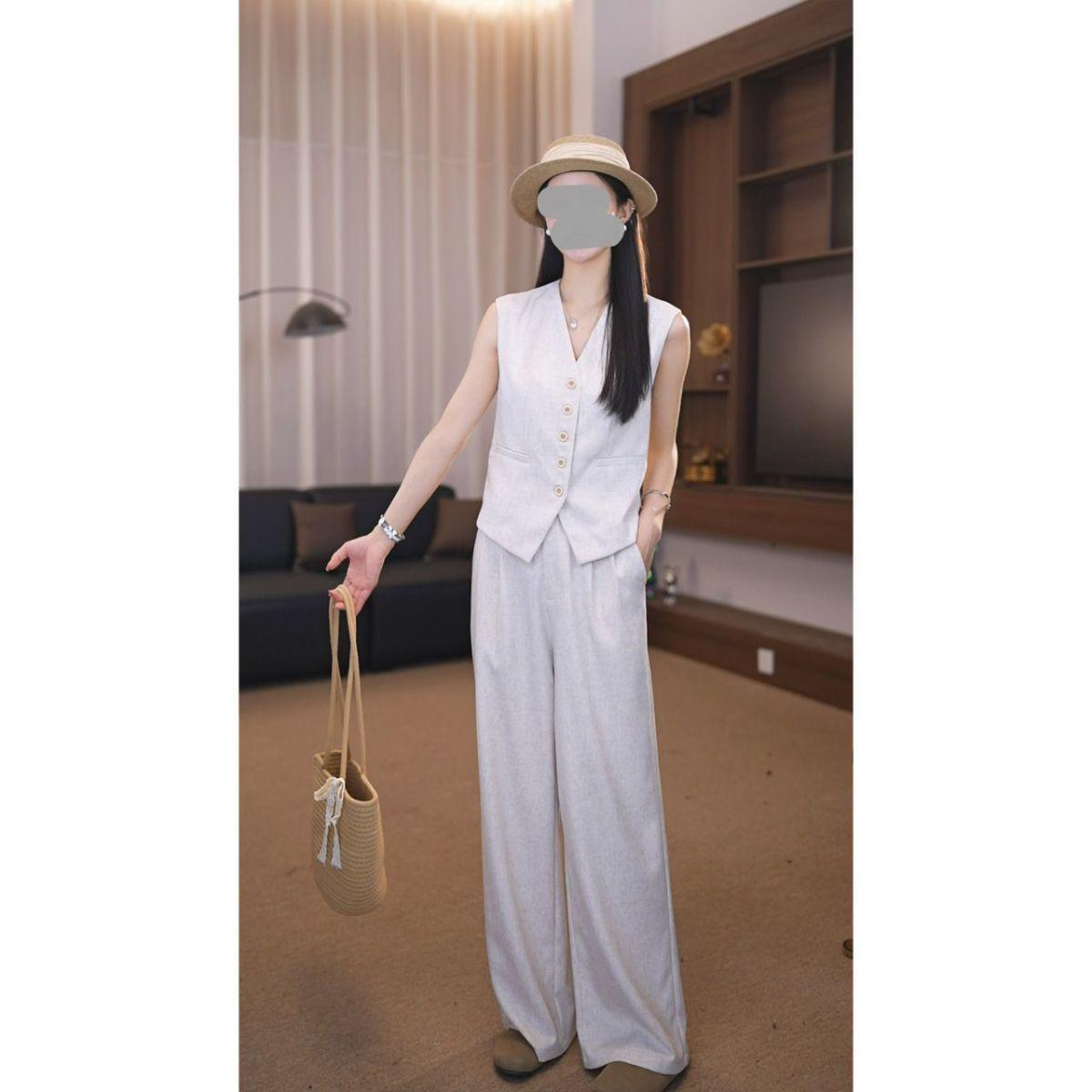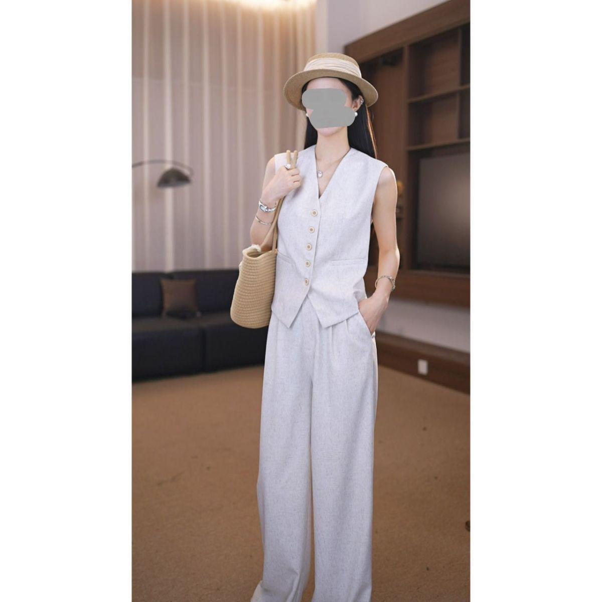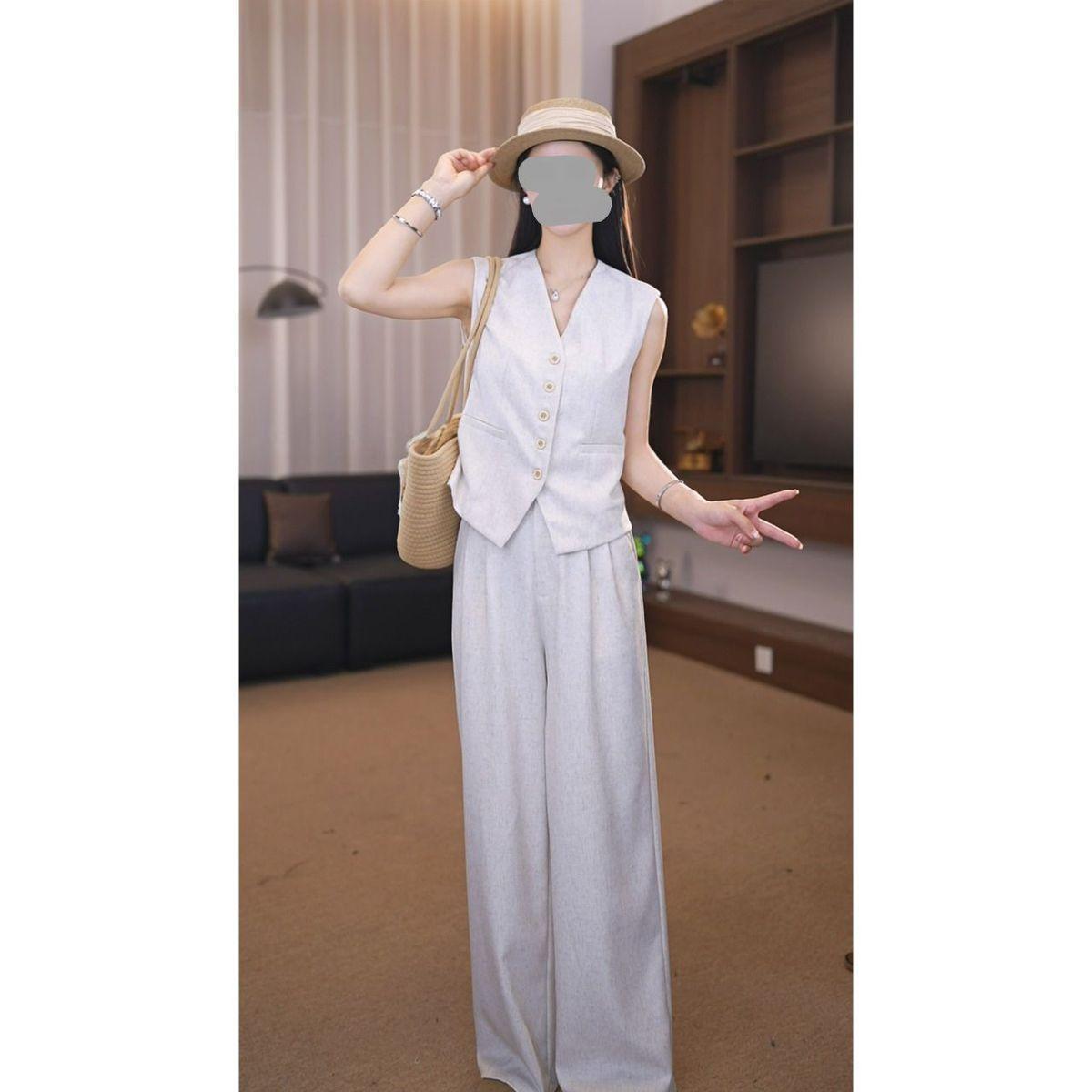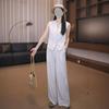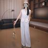 Traje de Moda para Mujer 2025 Verano Nuevo Estilo Slim Top Chaleco sin Mangas Pantalones de Pierna Ancha Cintura Alta Conjunto de Dos Piezas
