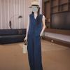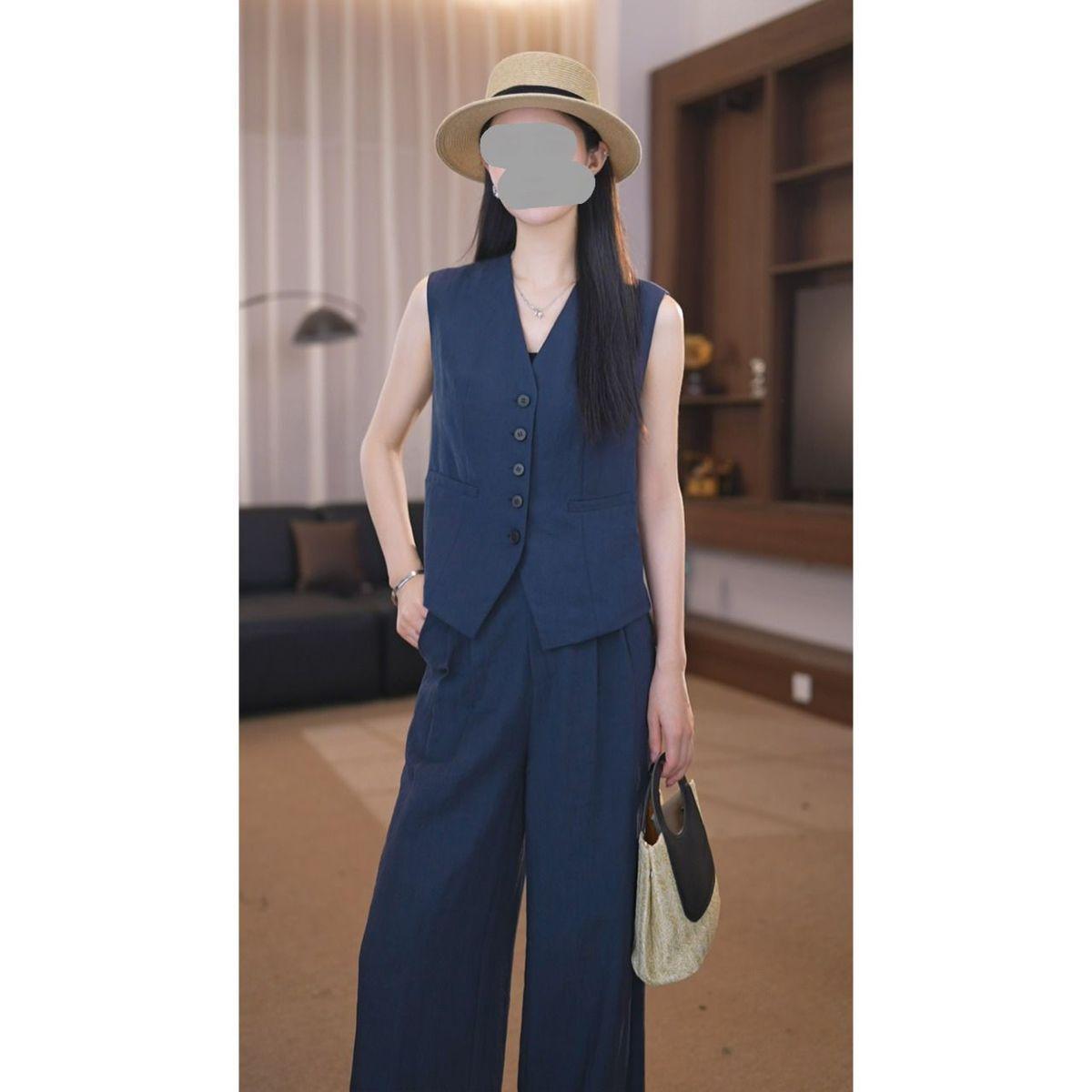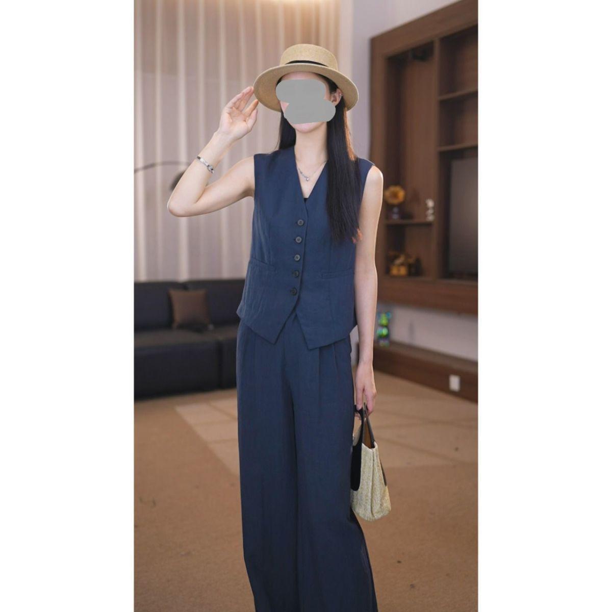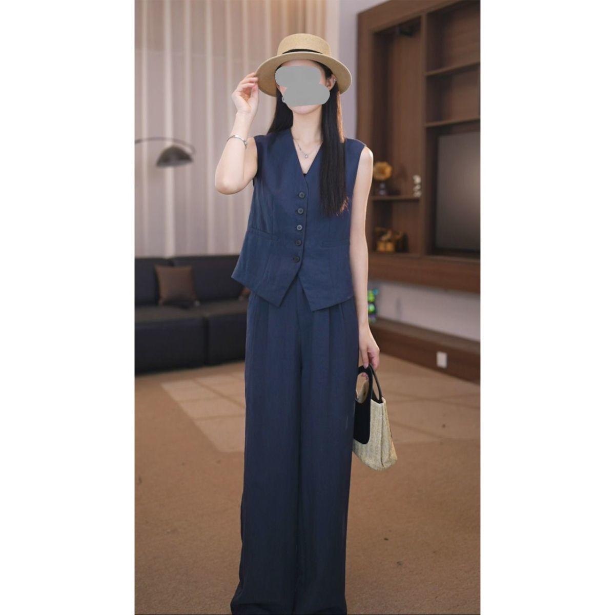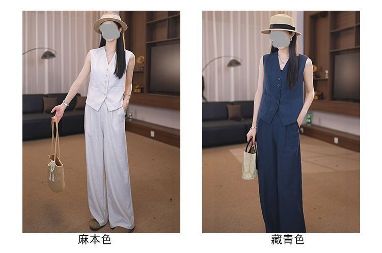 Traje de Moda para Mujer 2025 Verano Nuevo Estilo Slim Top Chaleco sin Mangas Pantalones de Pierna Ancha Cintura Alta Conjunto de Dos Piezas