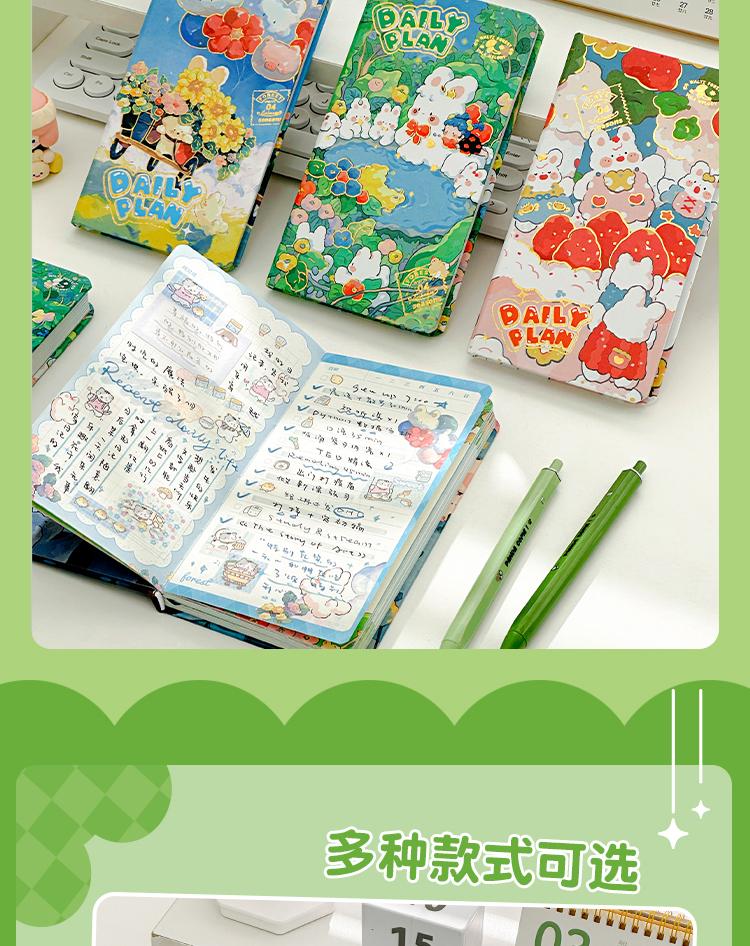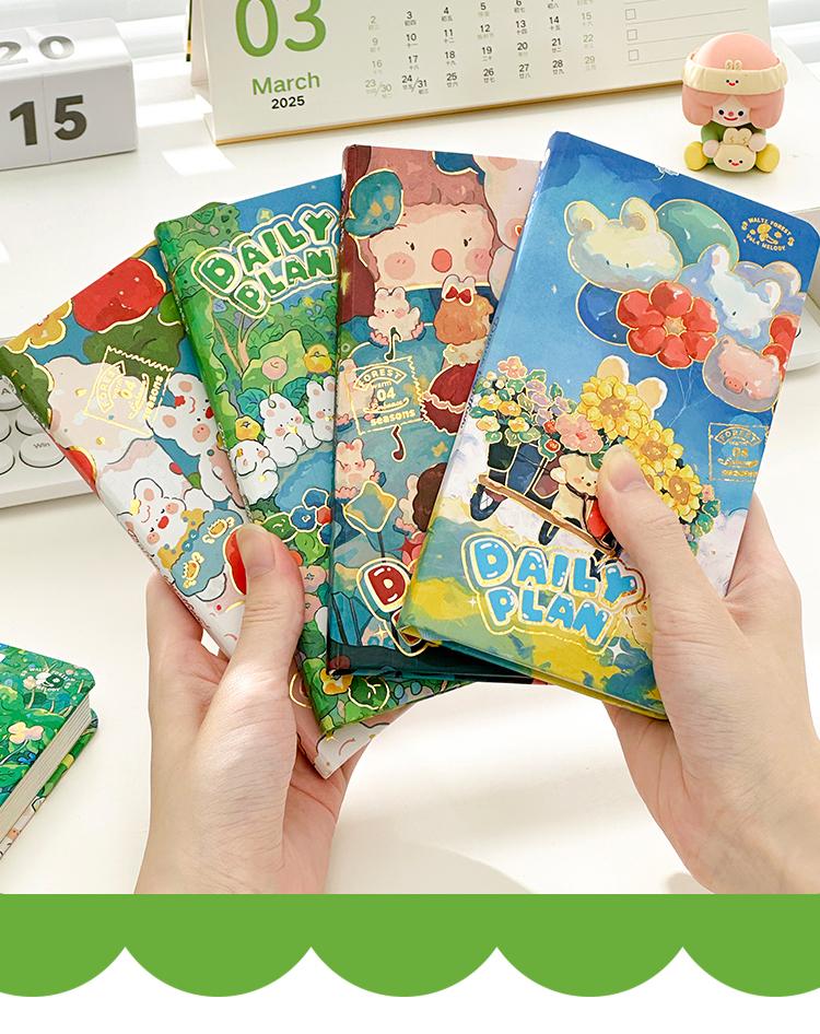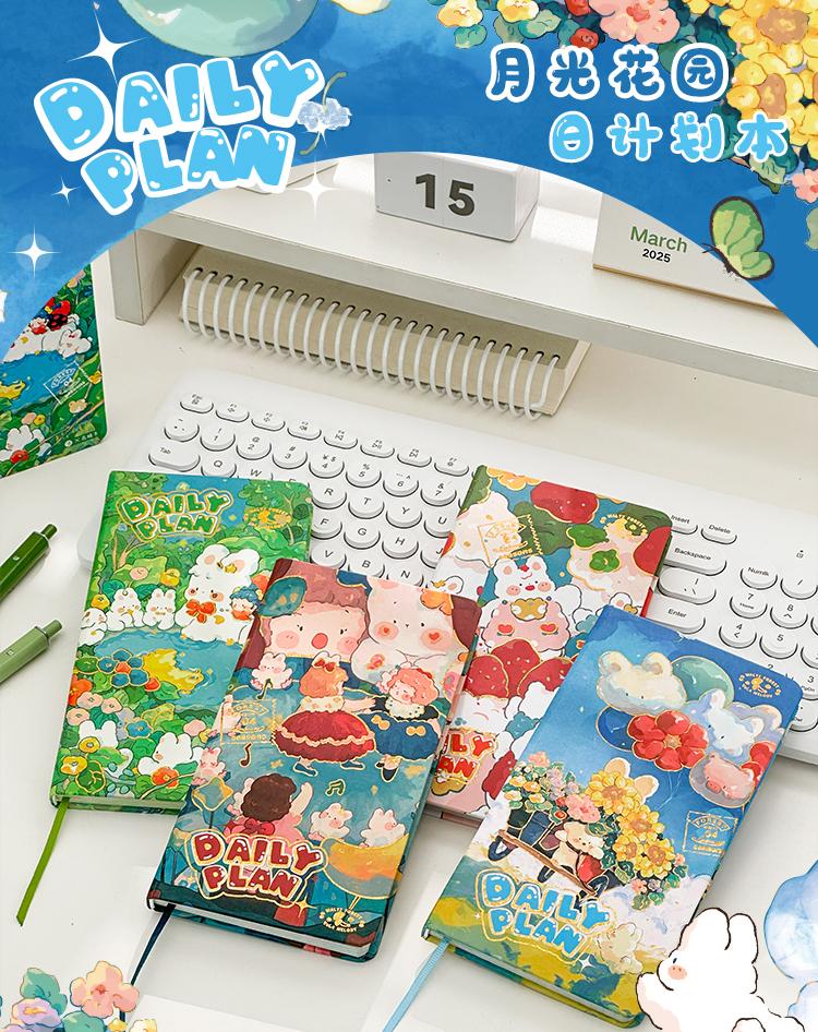 Clase 2, Grado 3 Planificador Diario Jardín de Luz de Luna A6 Libro de Registro de Autodisciplina Libro de Horarios Mini Notas Portátiles