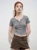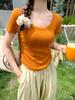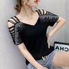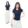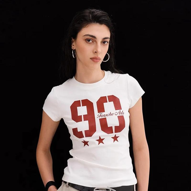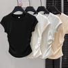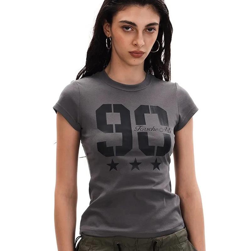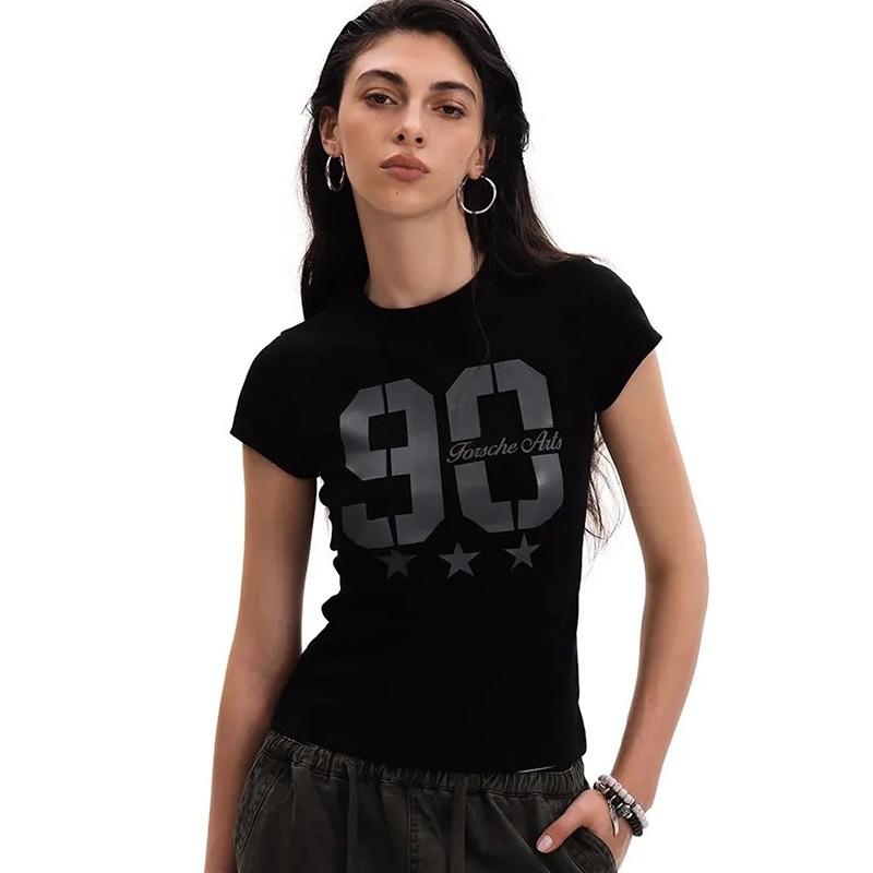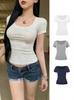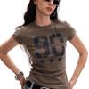 Camiseta de Manga Corta para Mujer American Hot Girl Hombro Derecho Verano 2025 Nuevo Diseño Estilizado con Estampado Digital Top