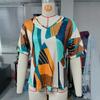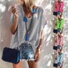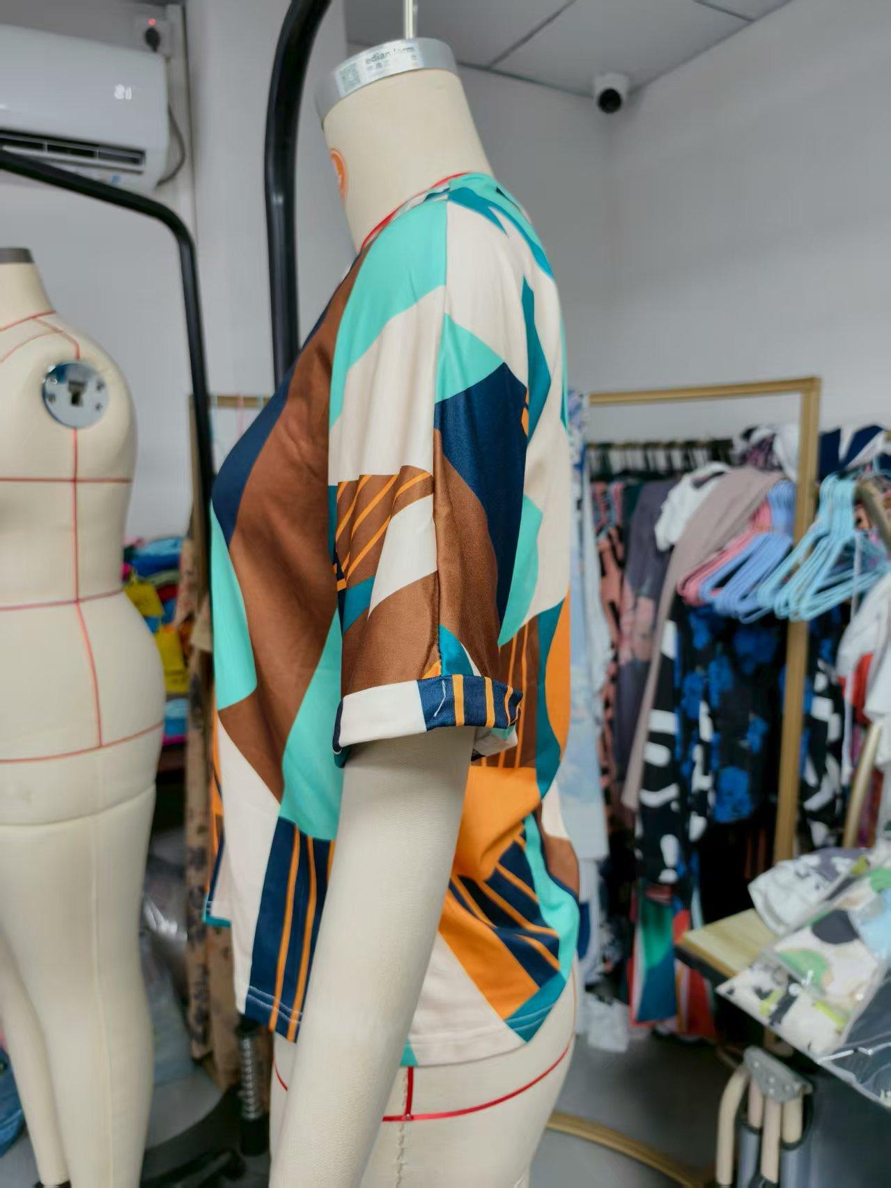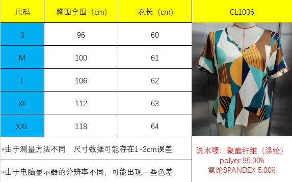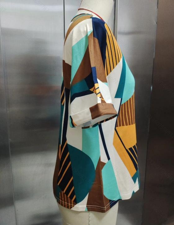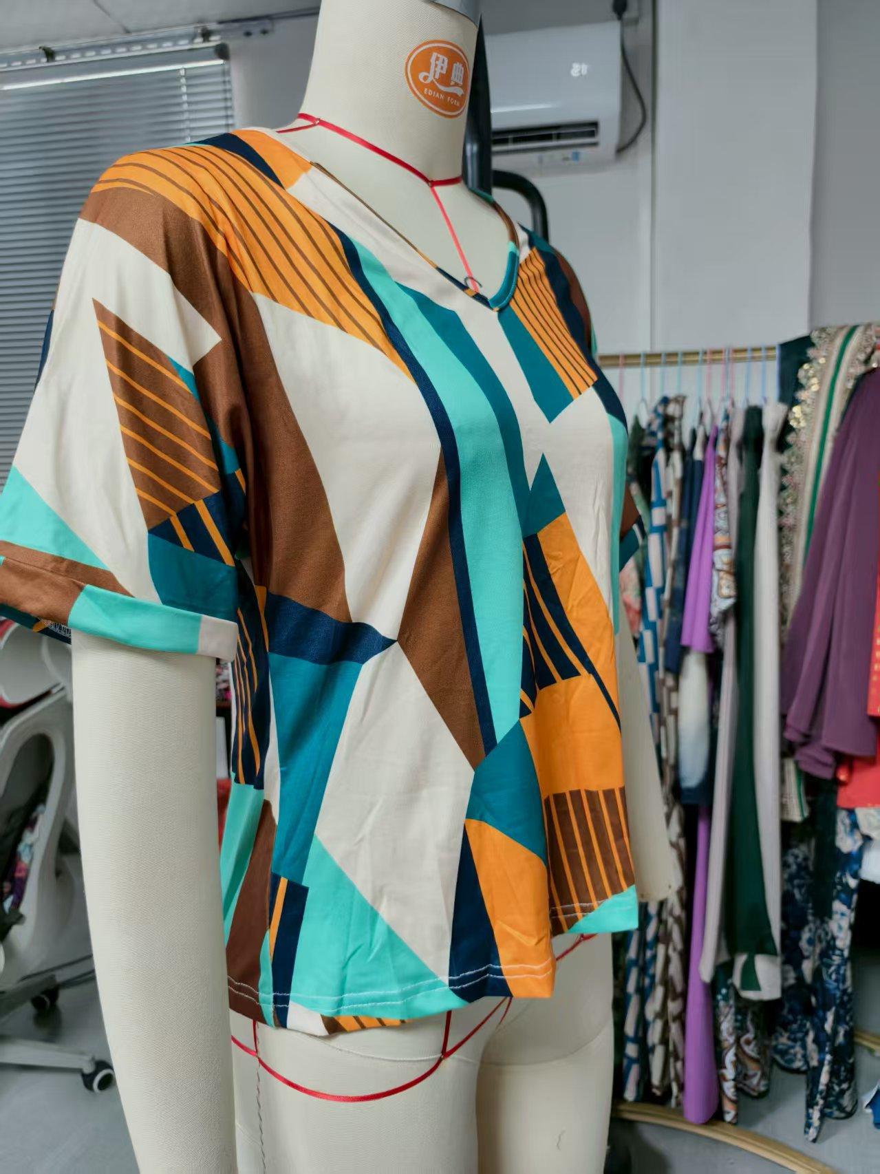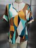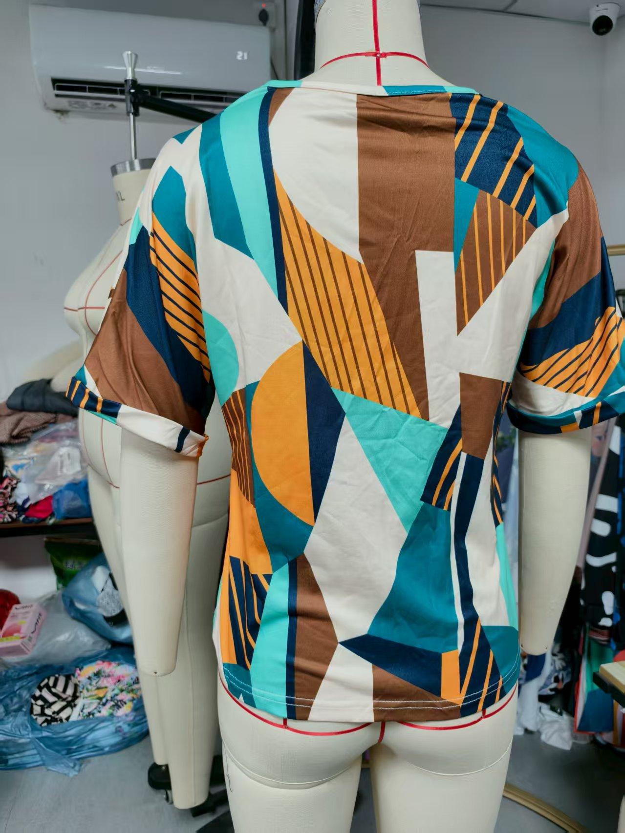 Amazon Export Europeo y Americano 2023 Verano Nuevo Cuello en V Estampado Tops de Manga Corta para Mujer con Camisetas Contrastantes de Patrón Geométrico