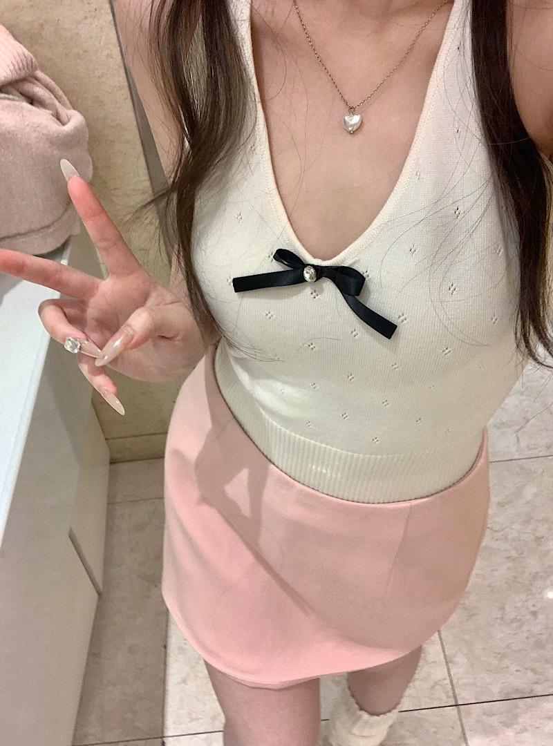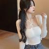 Camisola Dulce Chica Caliente Cuello Halter Verano para Mujer Lazo Francés Capa Interior Deseo Puro Top Corto para Ropa Exterior