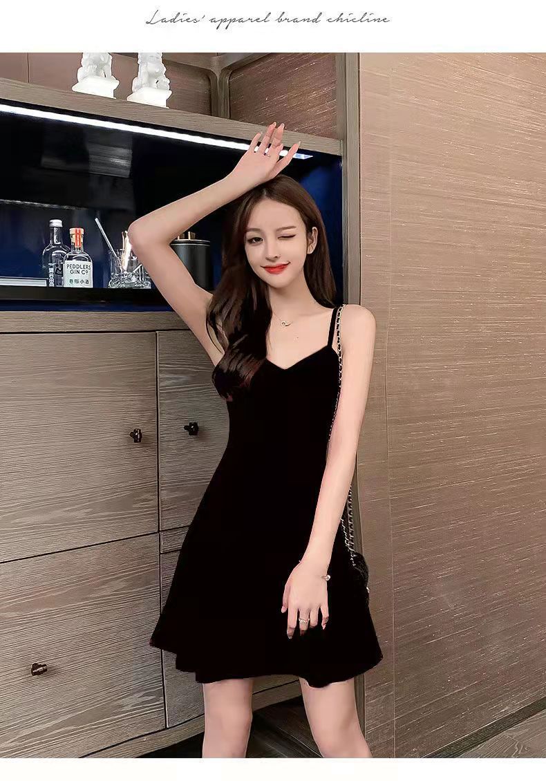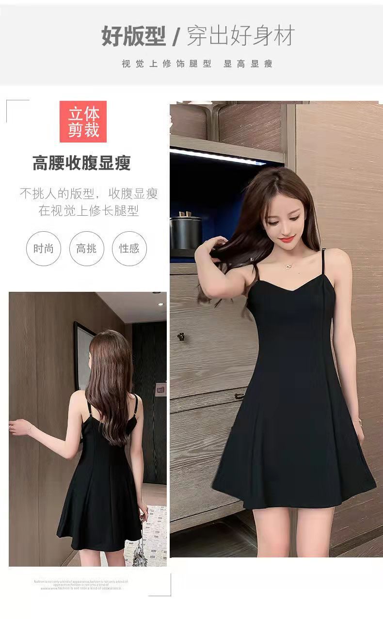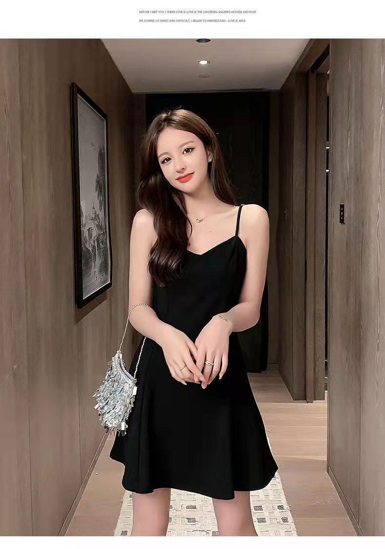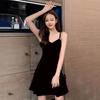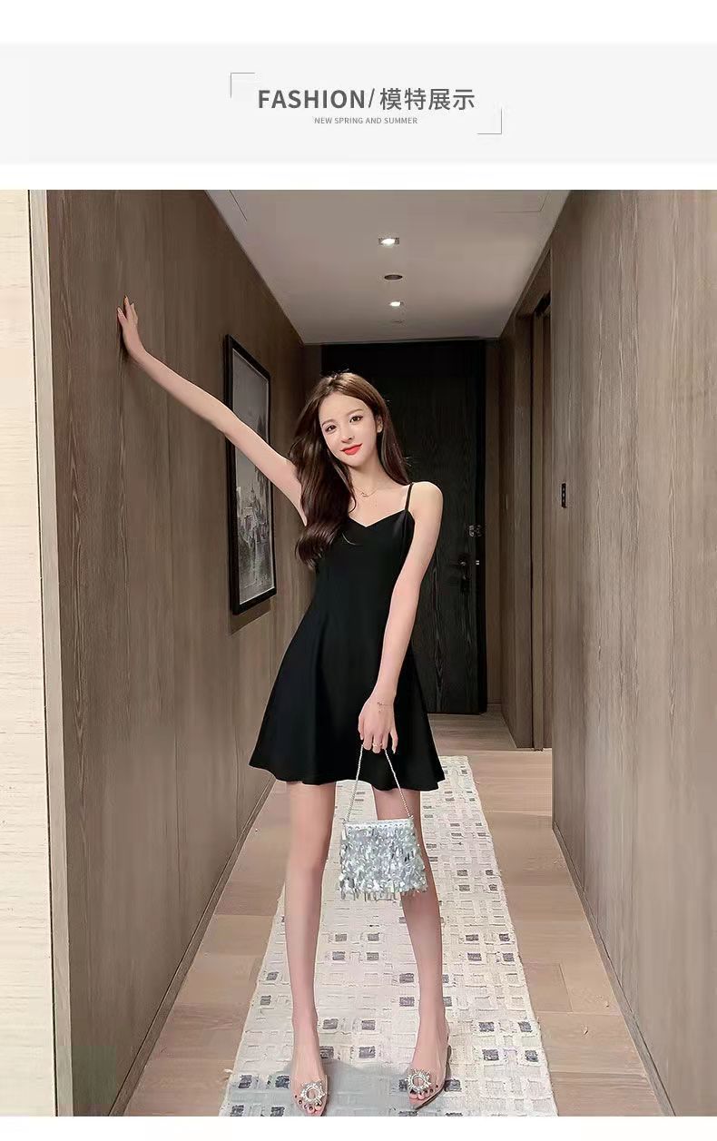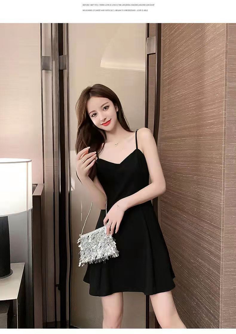 Vestido Corto Negro Petite de Línea A para Mujer, Vestido Sexy de Tirantes con Cuello en V para Club Nocturno de Verano, Vestido de Playa Adelgazante y Elegante
