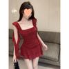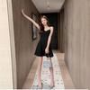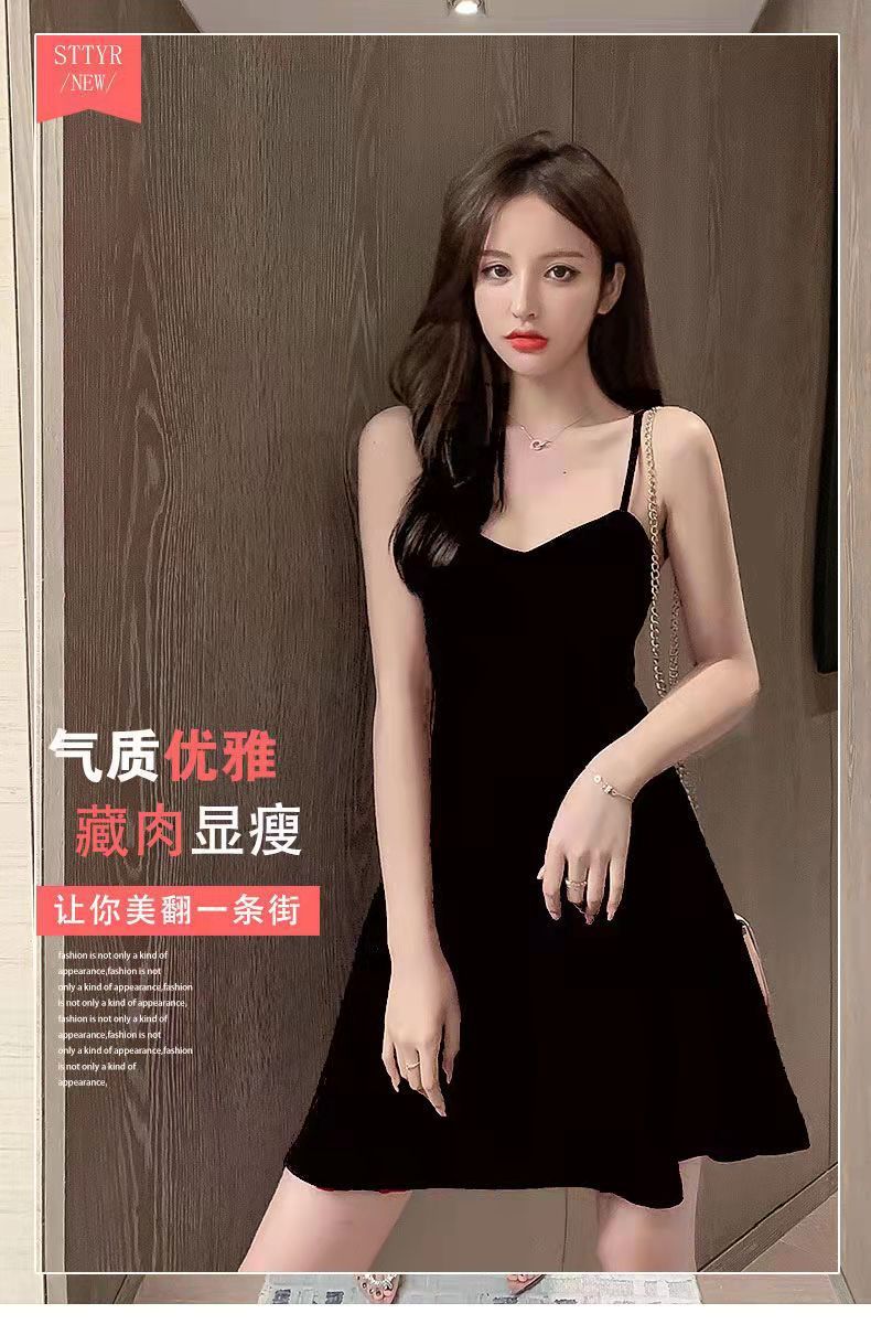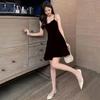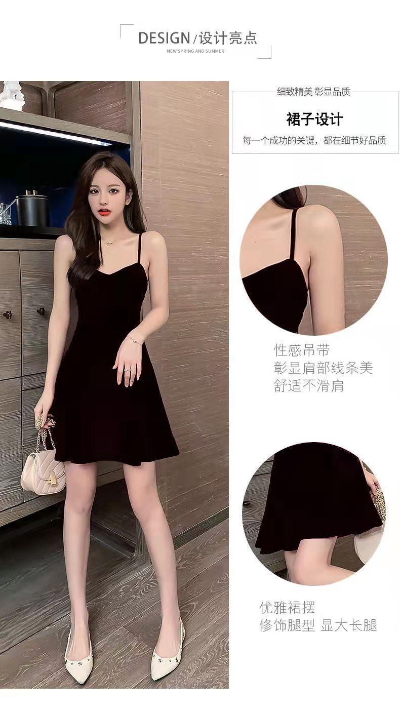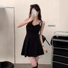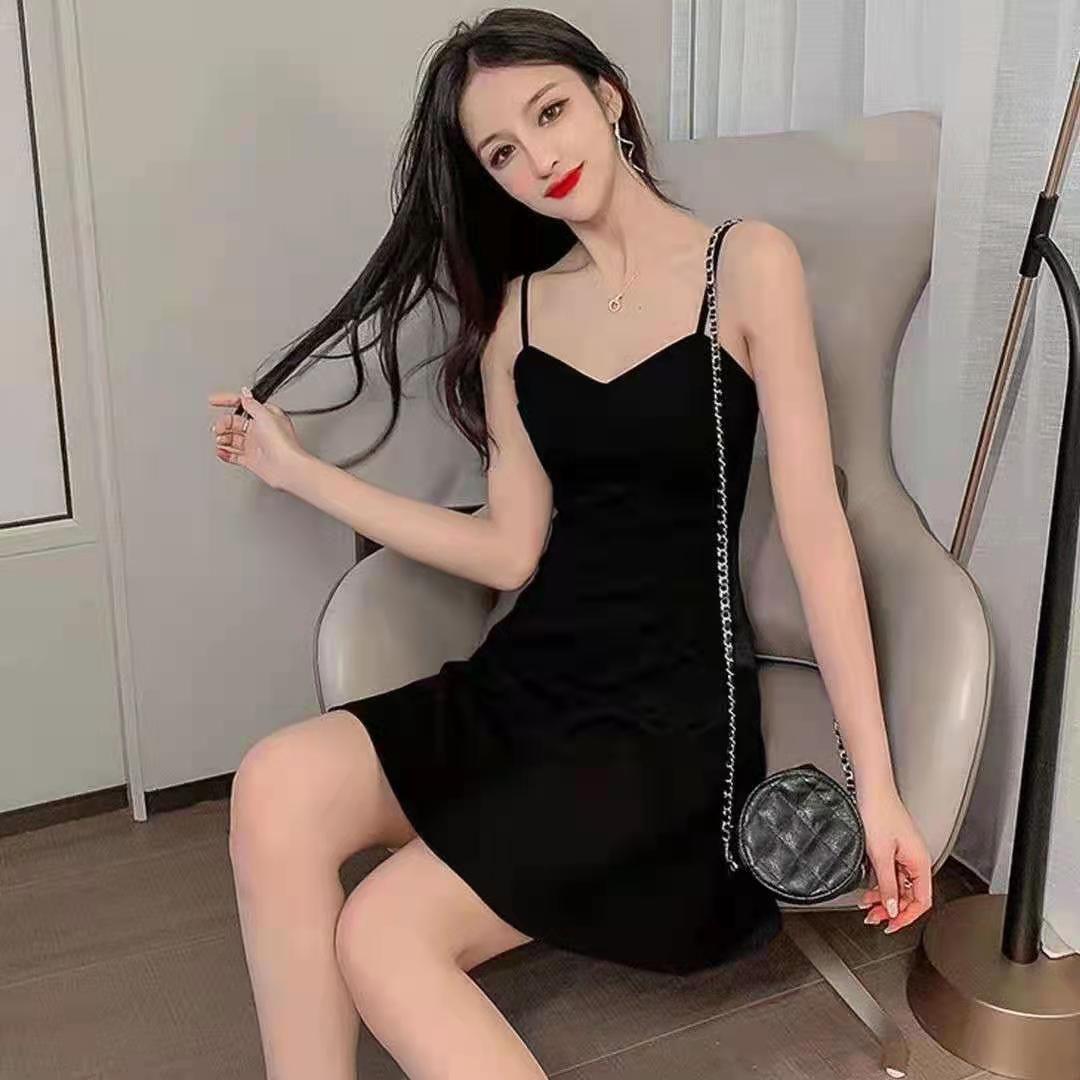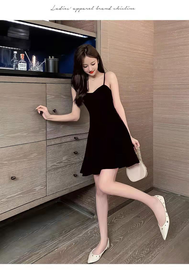 Vestido Corto Negro Petite de Línea A para Mujer, Vestido Sexy de Tirantes con Cuello en V para Club Nocturno de Verano, Vestido de Playa Adelgazante y Elegante