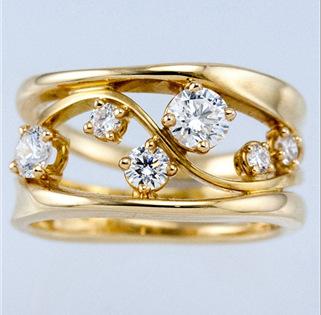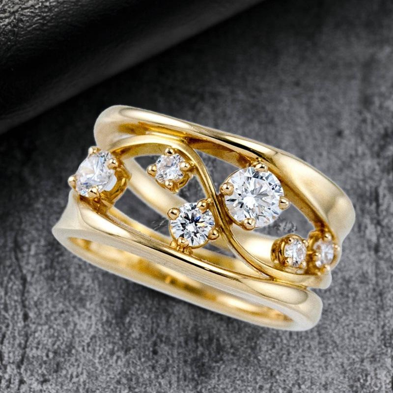 Anillo Europeo y Americano Nuevo de Aleación Onda Línea Geométrica Oro Incrustado Zircón Anillo para Mujer Aprobación Directa del Fabricante