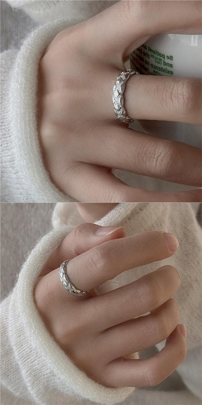 Anillo Simple con Patrón de Diamante para Mujer, Anillo Apilable Versátil, Elegante Anillo Abierto, Diseño Popular de Nicho, Anillo Creativo para el Dedo Índice