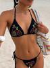 Traje de Baño Sexy Dividido para Mujer con Estampado Floral Europeo y Americano, Conjunto de Traje de Baño Bikini con Cordones Multicolor