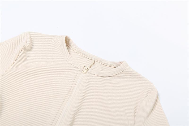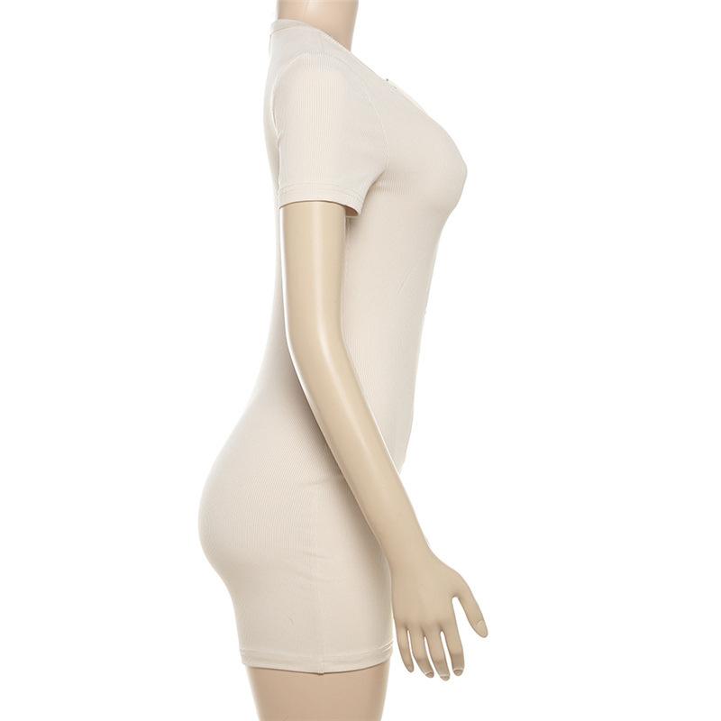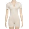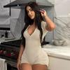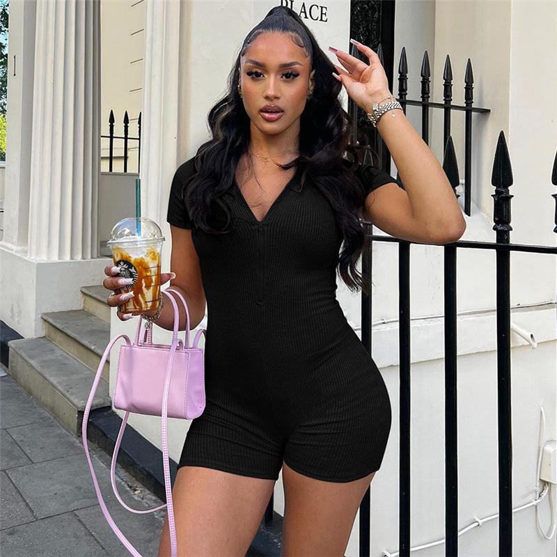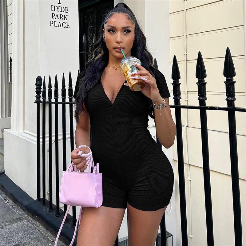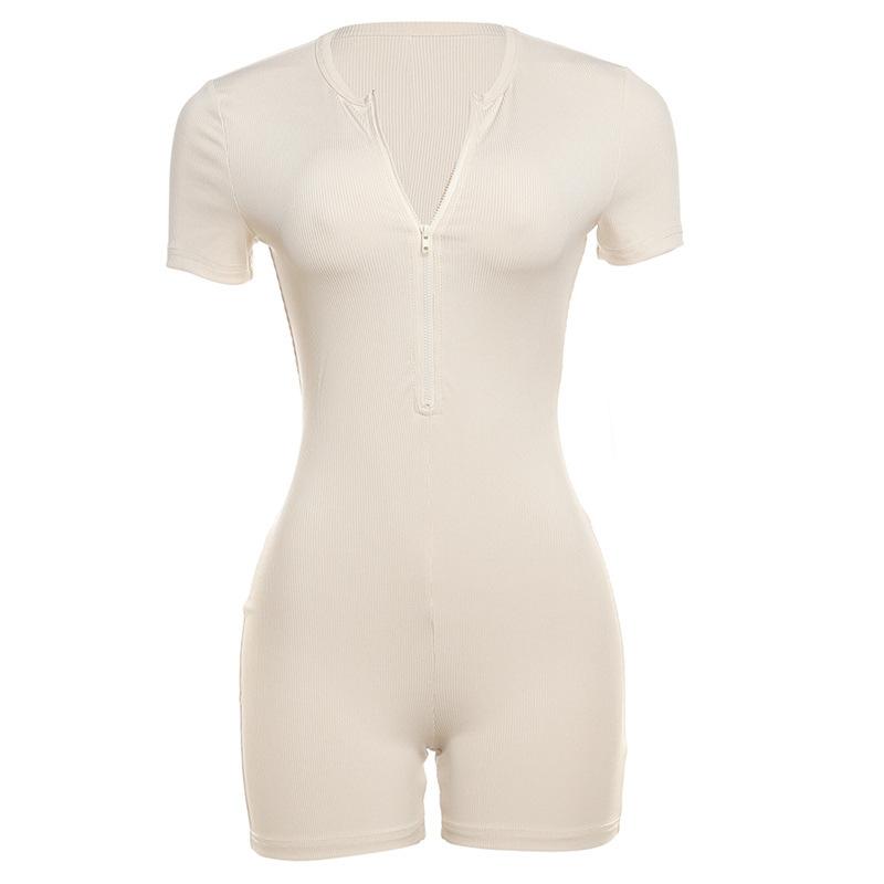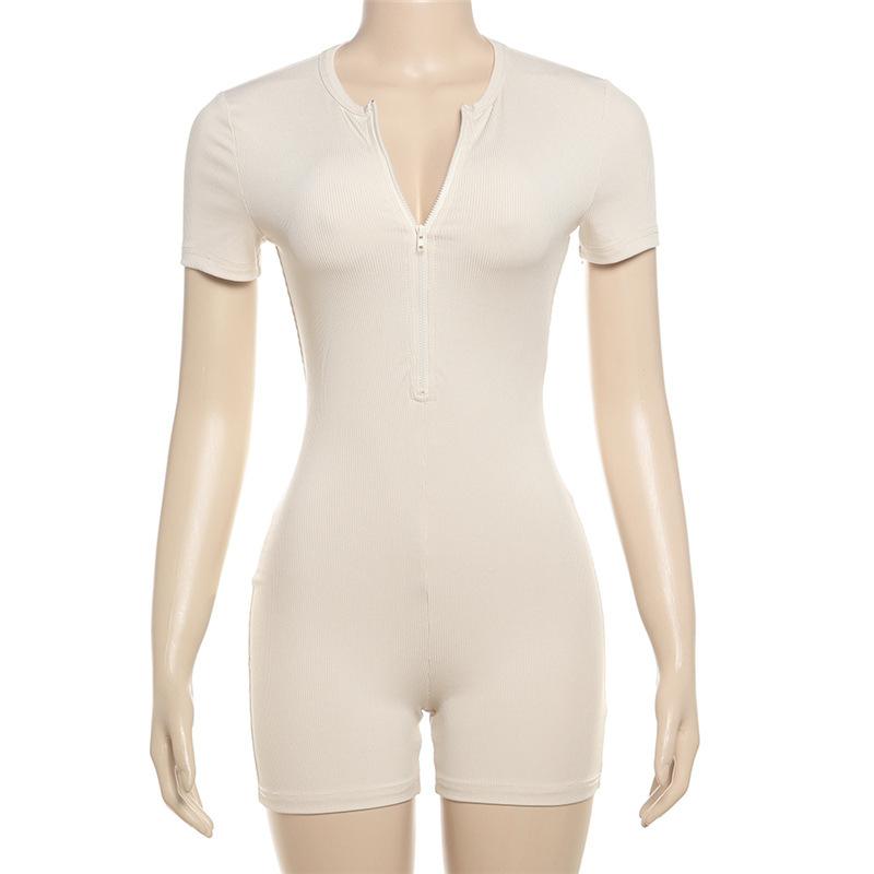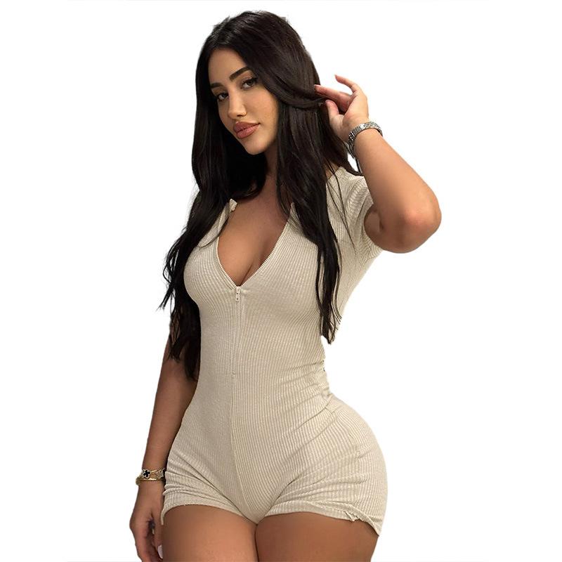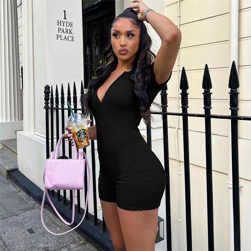 Estilo europeo y americano 2024 ropa de primavera para mujer transfronteriza nueva color sólido manga corta ajustado sexy cremallera shorts mameluco