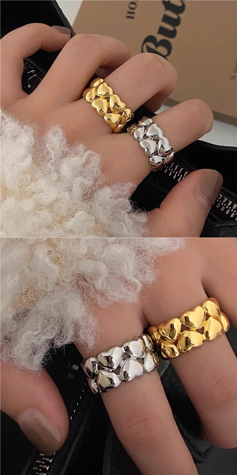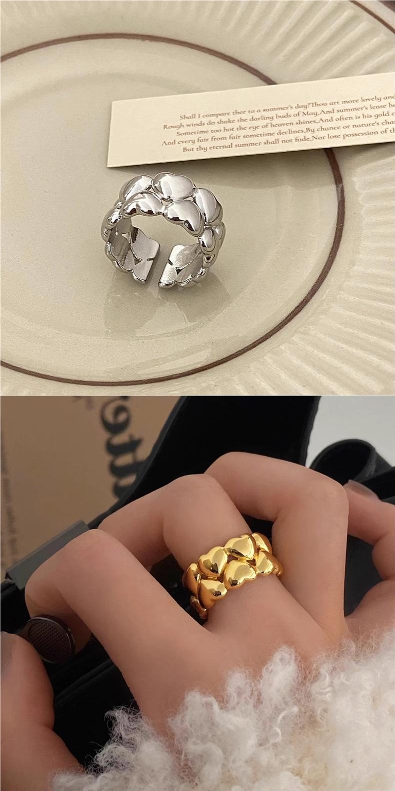Anillo de Corazón Dulce de Doble Capa para Mujer, Simple, Moderno, Versátil, Elegante, Anillo Abierto, Anillo de Dedo Índice Estilo Ins, Tendencia