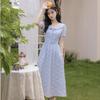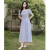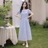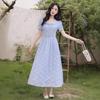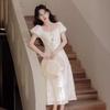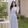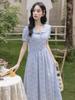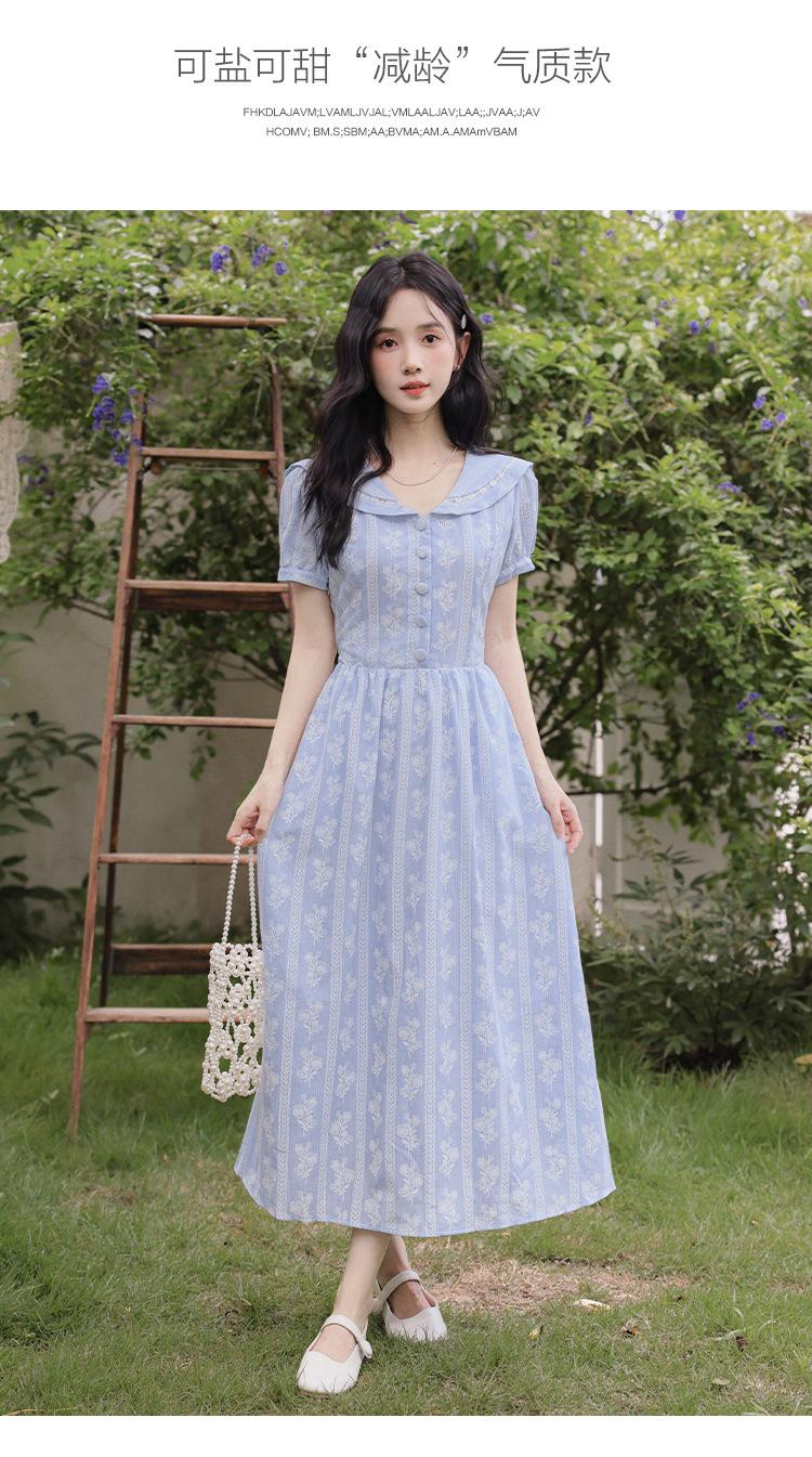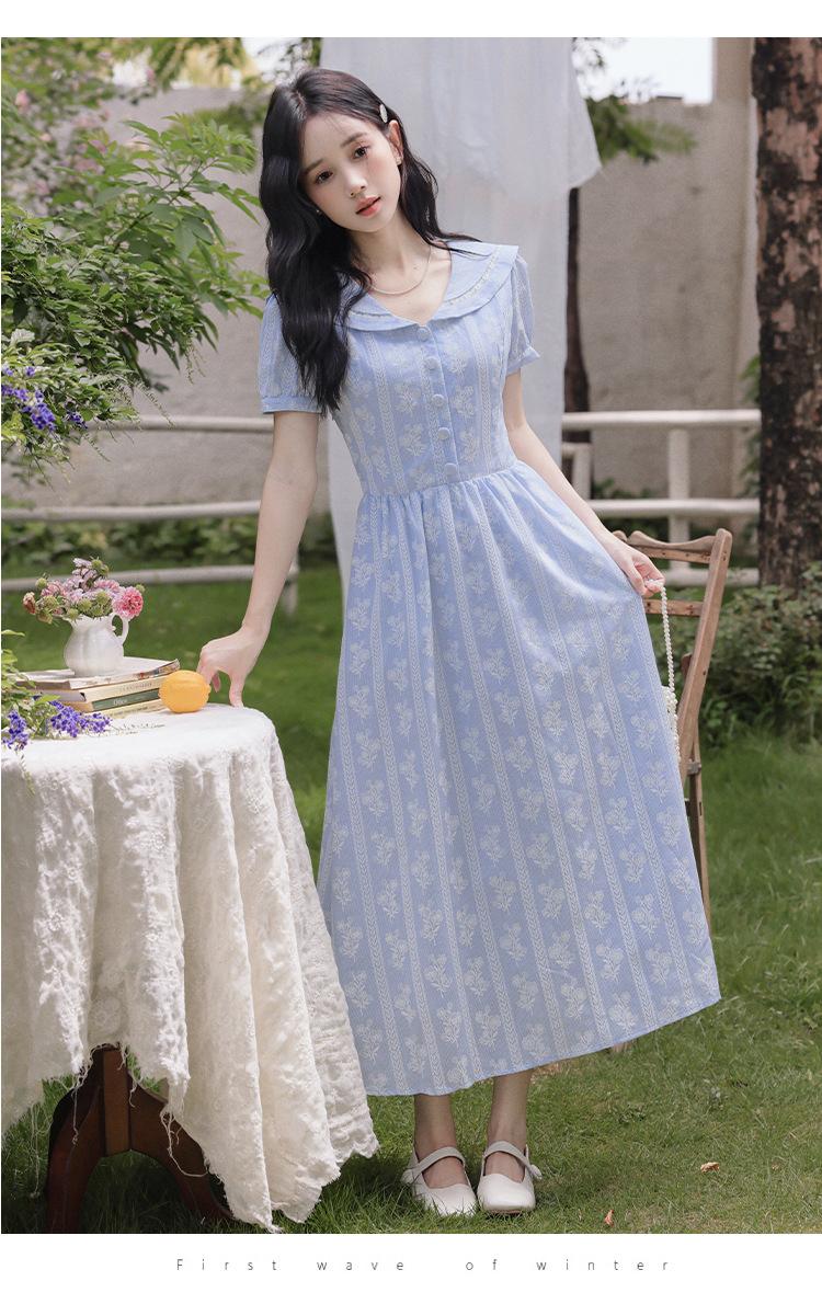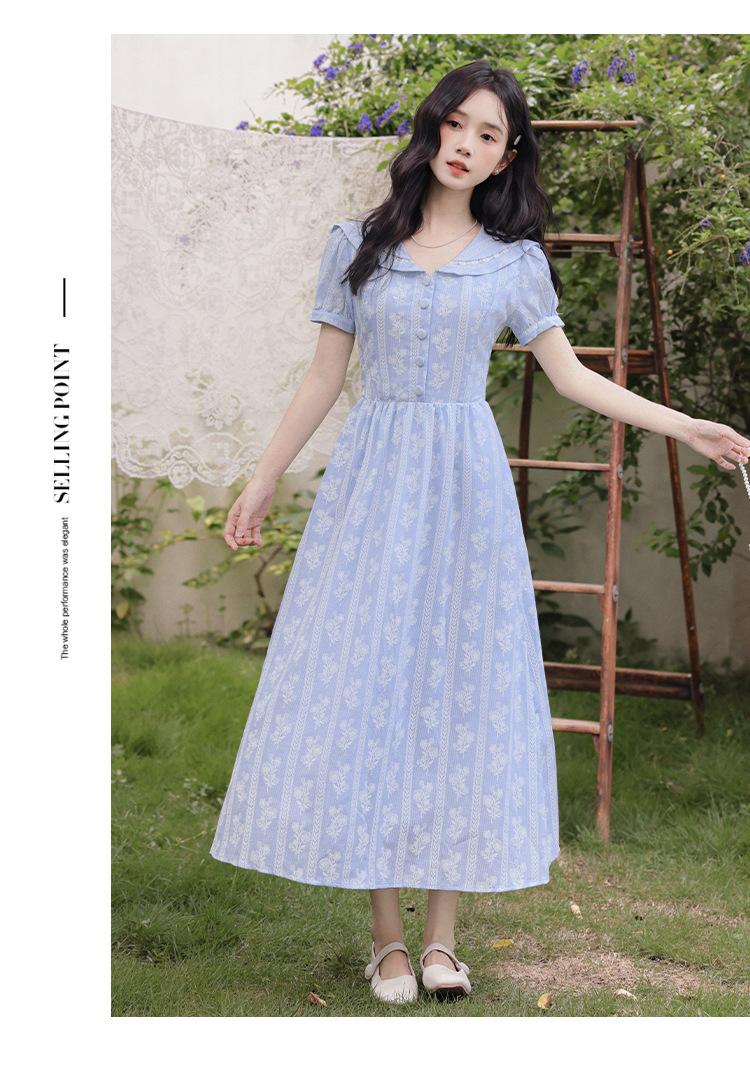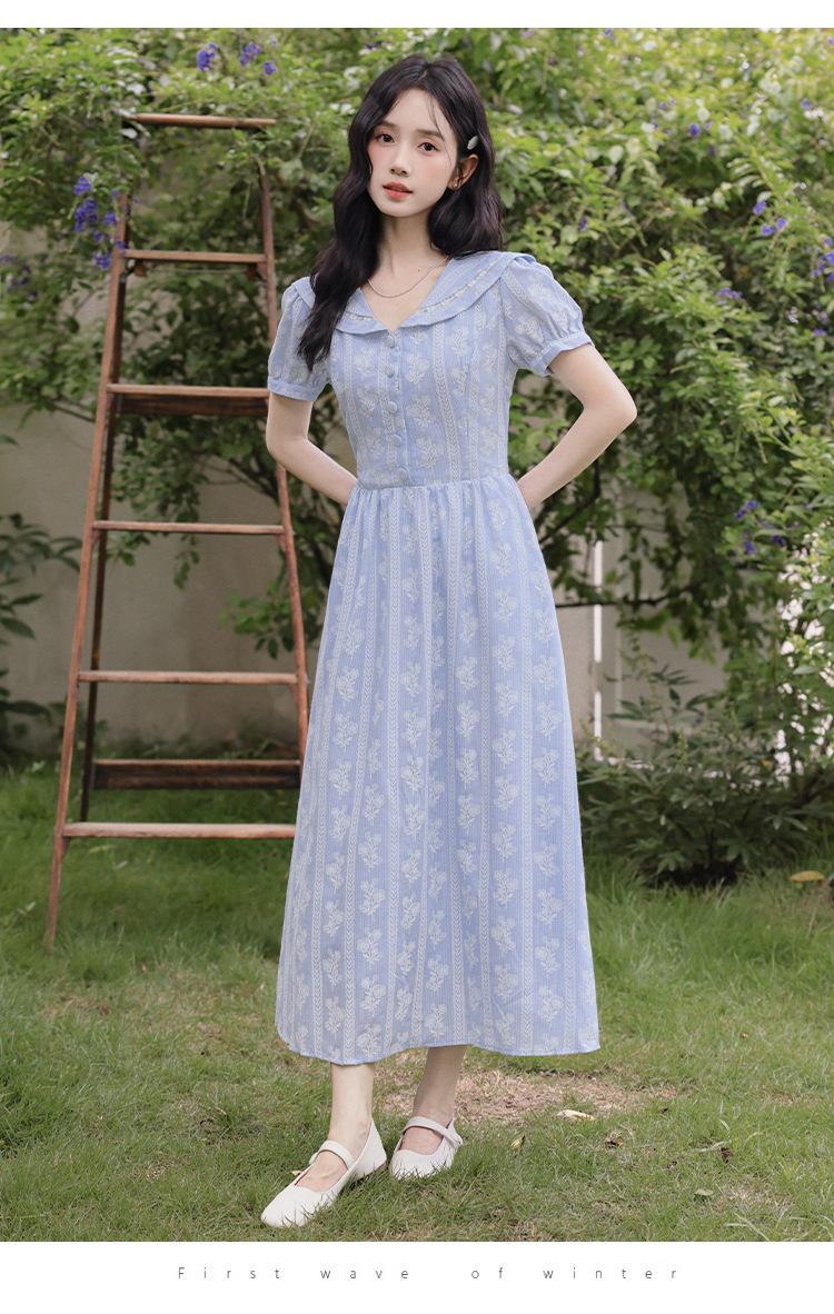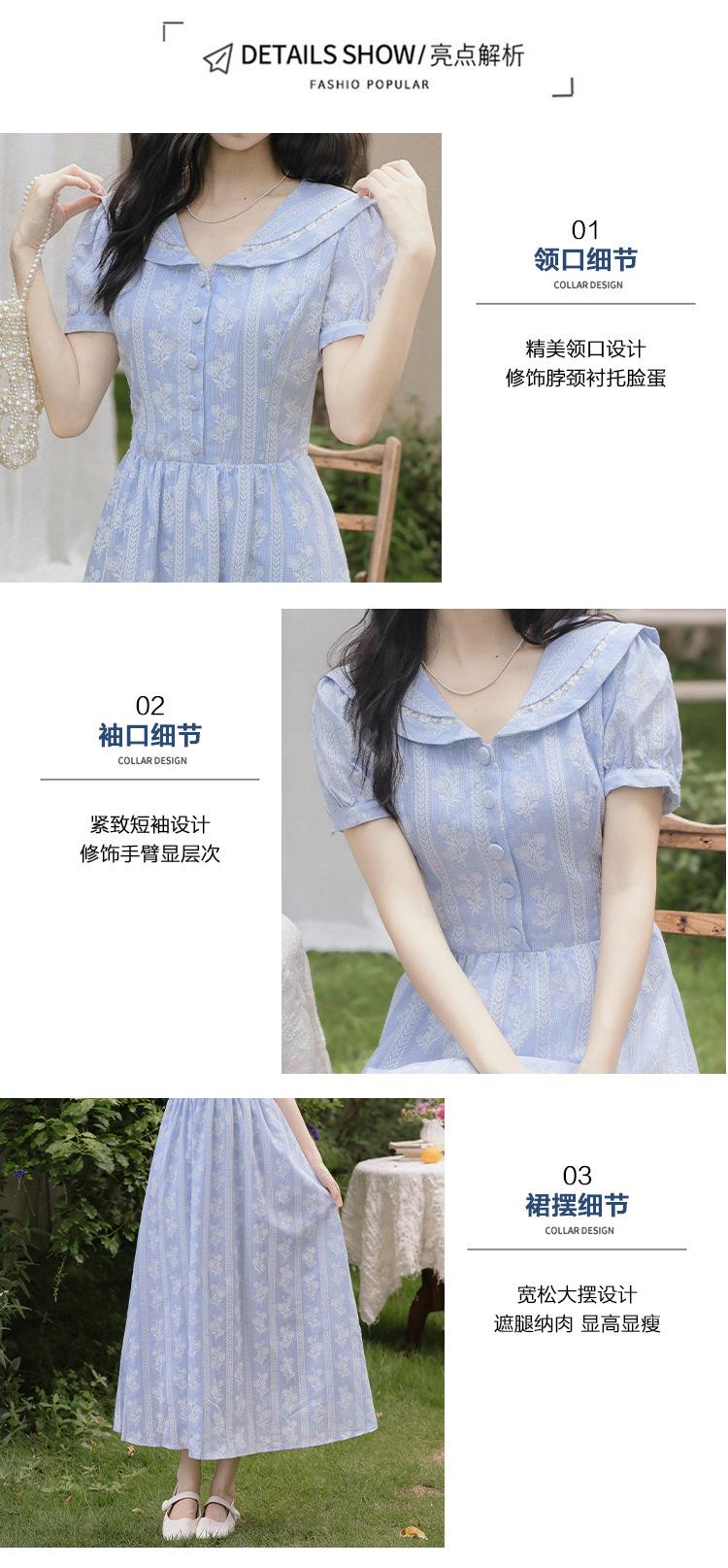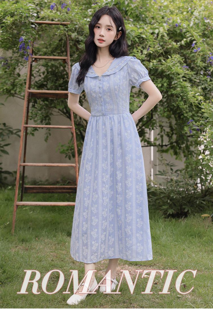 No menos de 149 vestido francés dulce con cuello marinero, manga abullonada, estampado y bordado, estilo fresco y pequeño