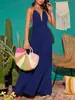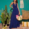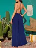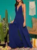 Mono de Moda Sexy Europea y Americana 2025, Ajustado, Color Sólido, Profundo Escote en V, Espalda Descubierta con Tirantes Halter, Estilo Vacacional de Playa