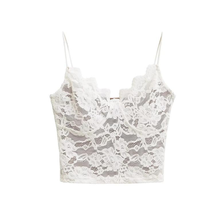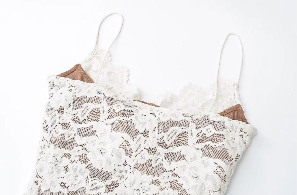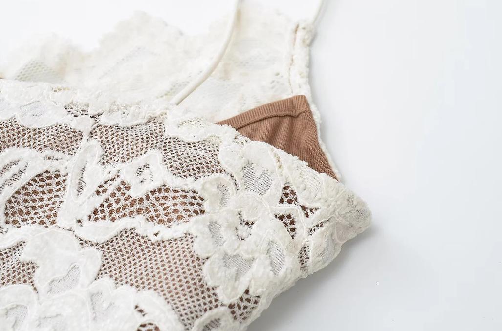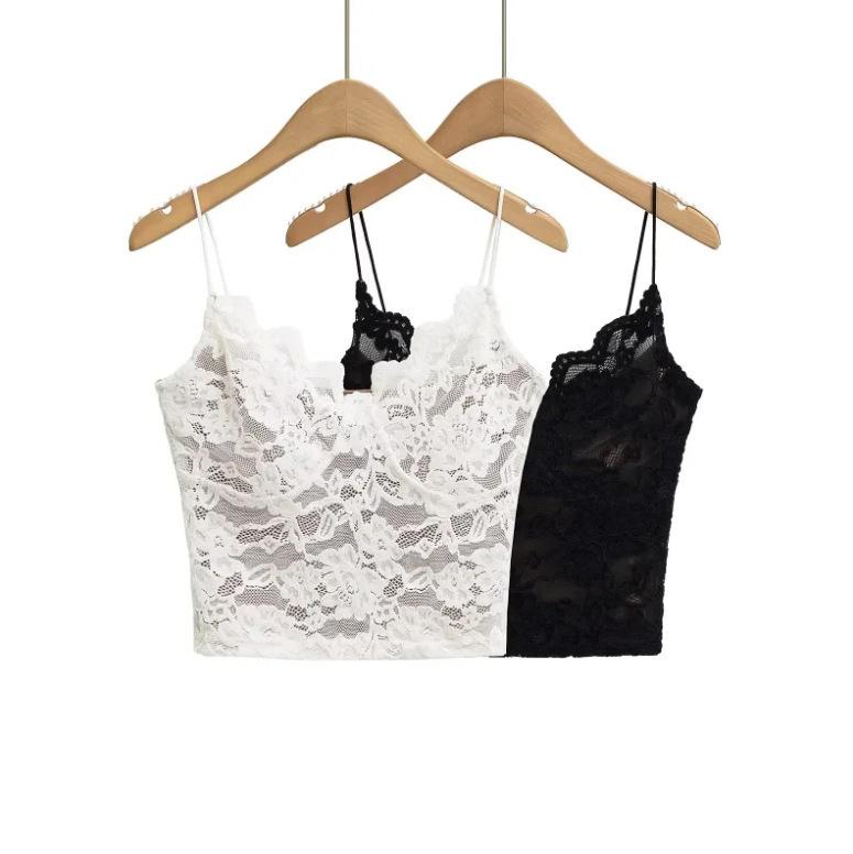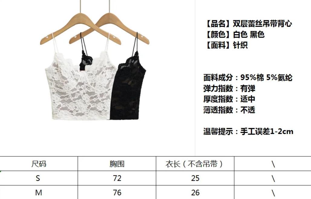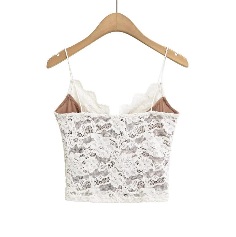 25 Verano Nuevo Estilo Sexy Camisola de Encaje con Almohadillas de Sujetador Incorporadas, Camisola de Doble Capa para Mujer, Encaje de Deseo Puro de Chica Caliente