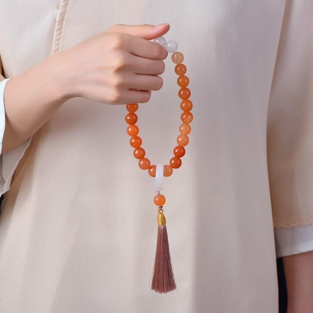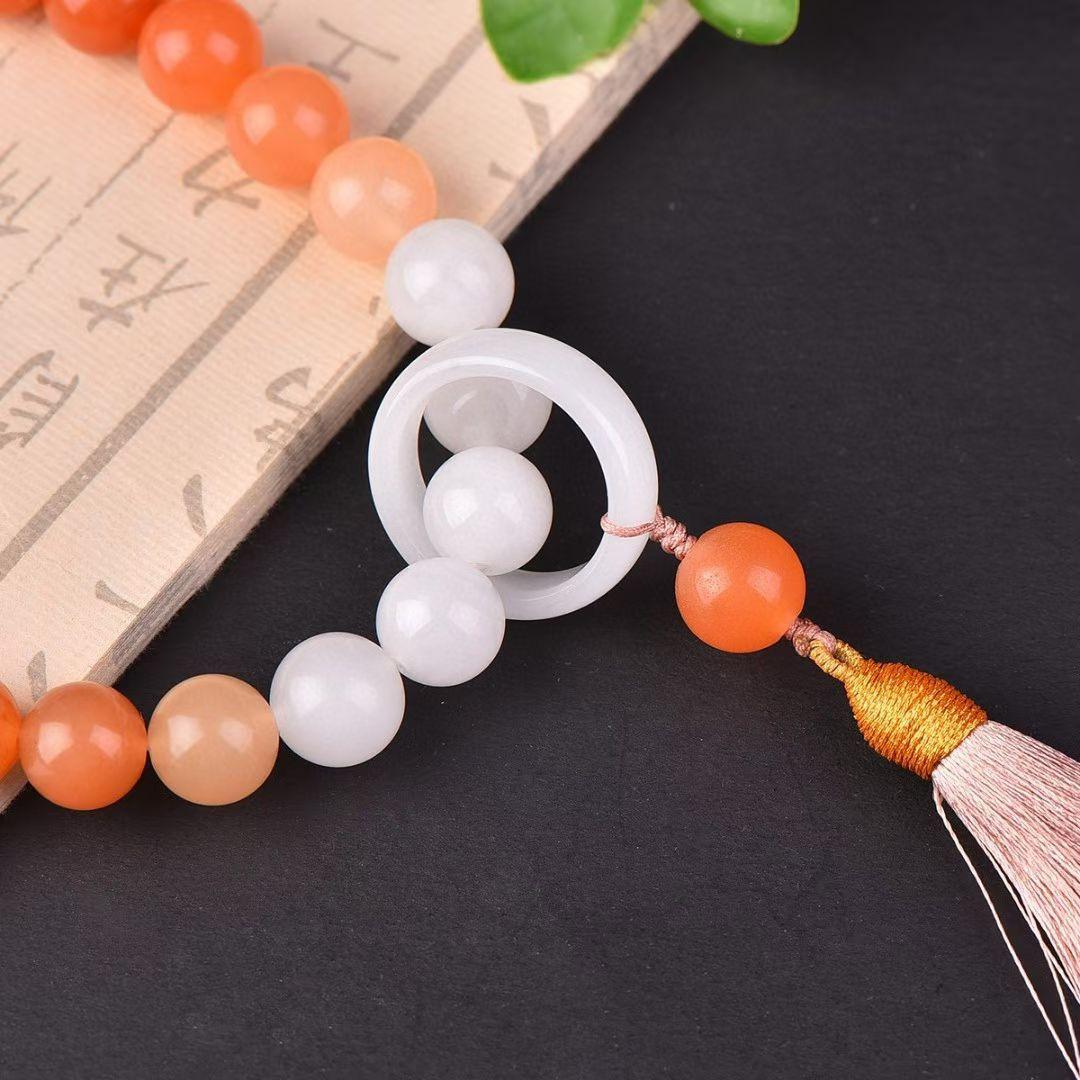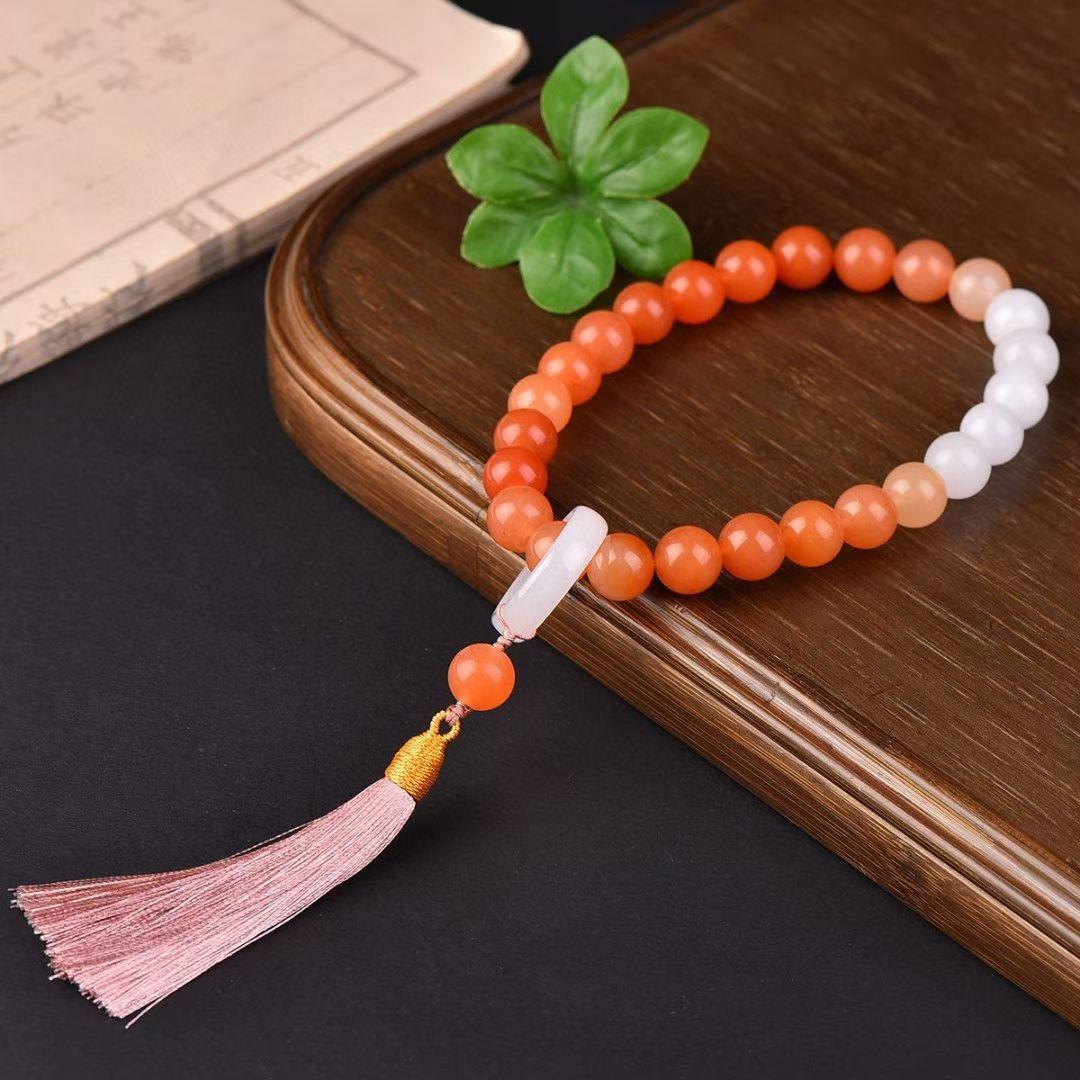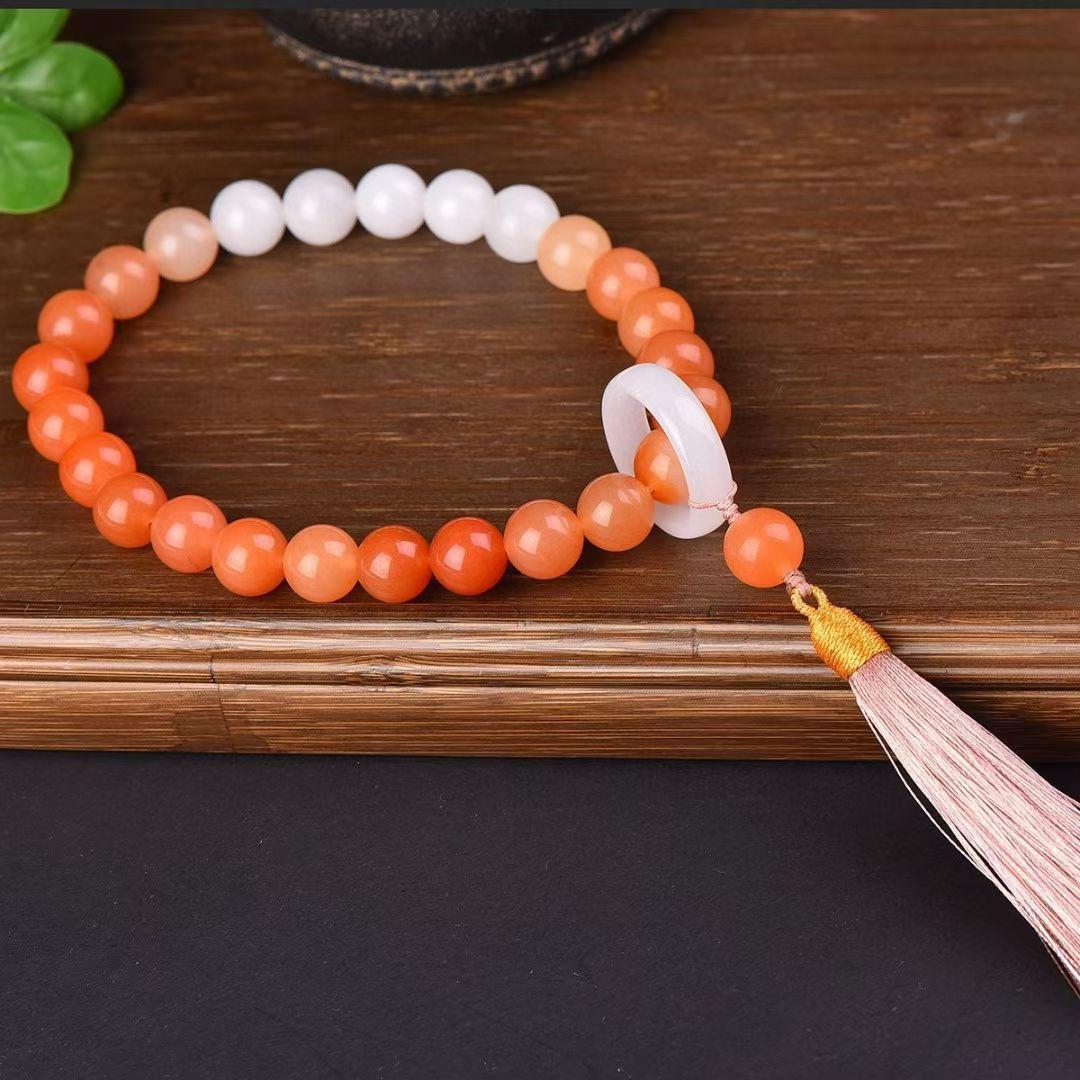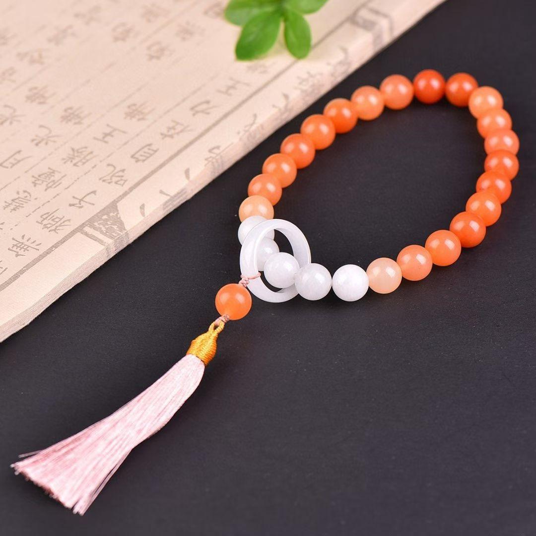 Rosario de Dedo Portátil para Mujer Pulsera de Jade de Seda Dorada She Tai Cui Mermelada de Fresa Anillo Giratorio Pulsera con Borla Pulsera