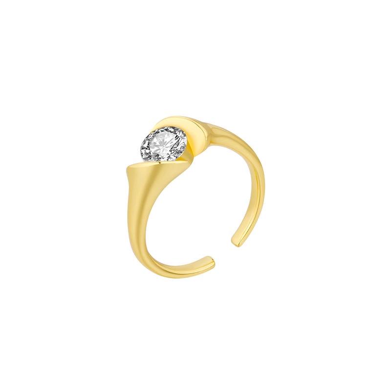 Anillo de Cala Abierta Personalizado Chapado en Plata con Zircón Anillo para el Dedo Índice Diseño de Nicho Simple Minimalista Directo del Fabricante