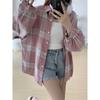 Camisa de Manga Larga Chaqueta de Protección Solar de Largo Medio para Mujer Verano 2025 Estampado de Cuadros con Letras Suelta Cárdigan Fino para Exterior