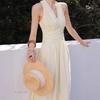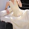 2025 Verano Nuevo Estilo Cintura Alta Adelgazante Elegante Vestido Largo para Socialité Elegante Estilo Francés Vestido de Cuello sin Mangas Mujer