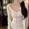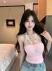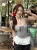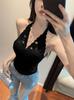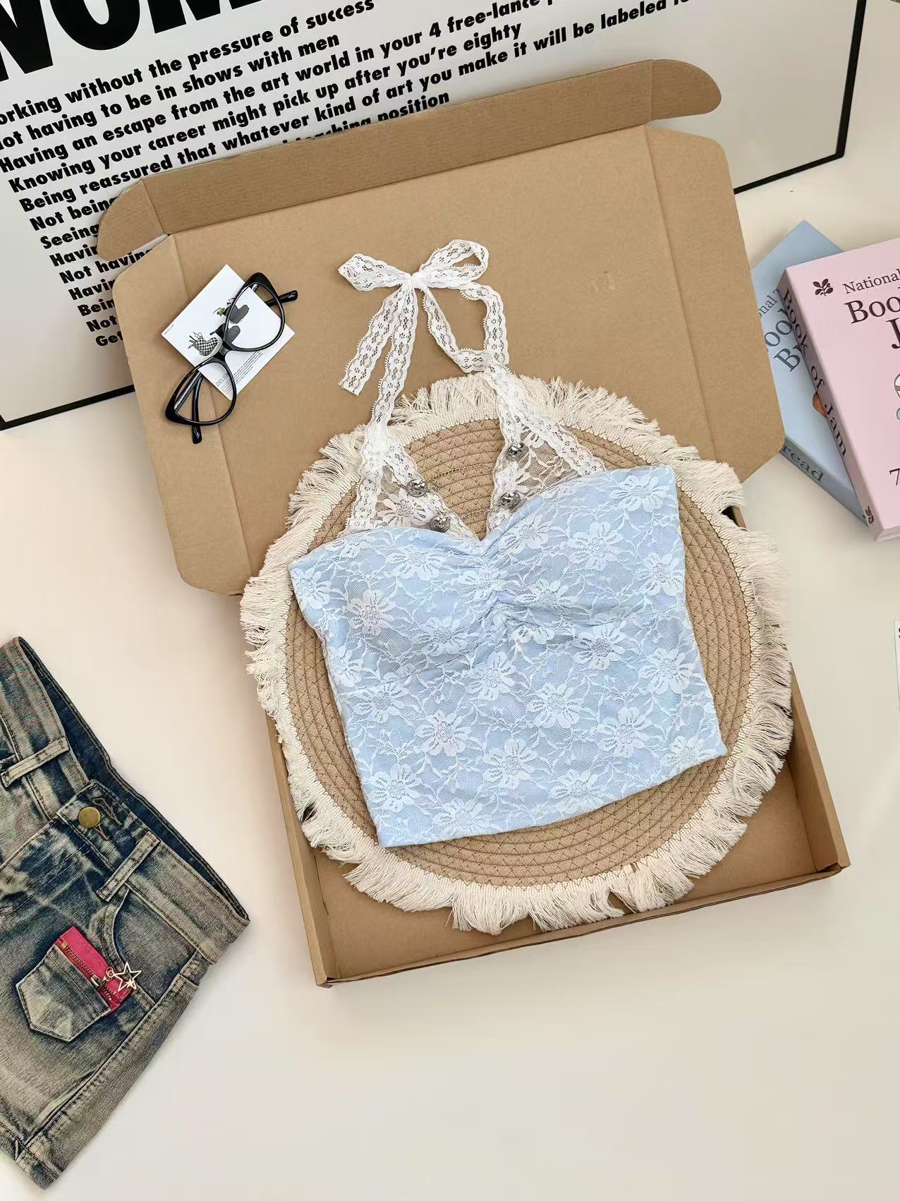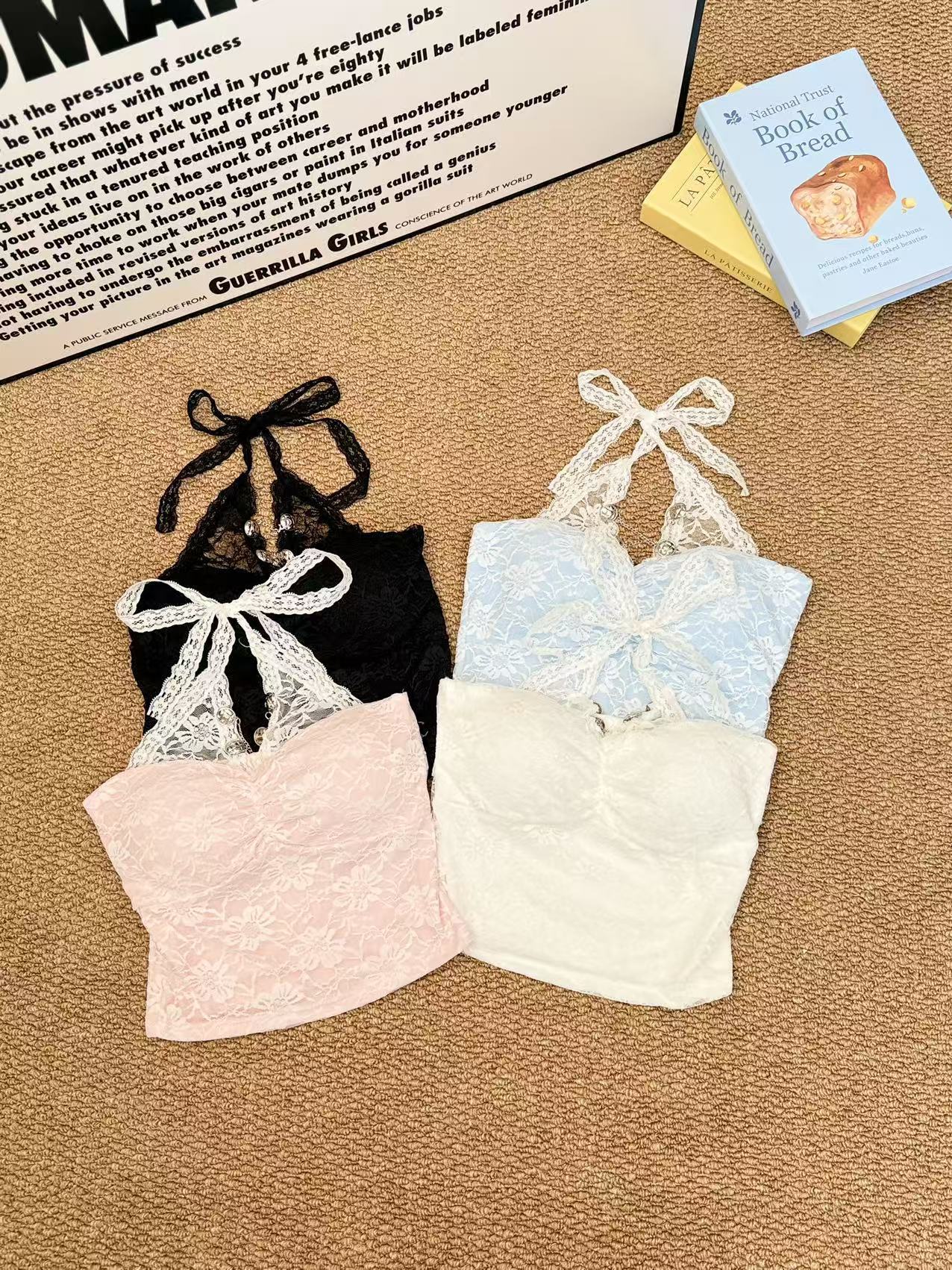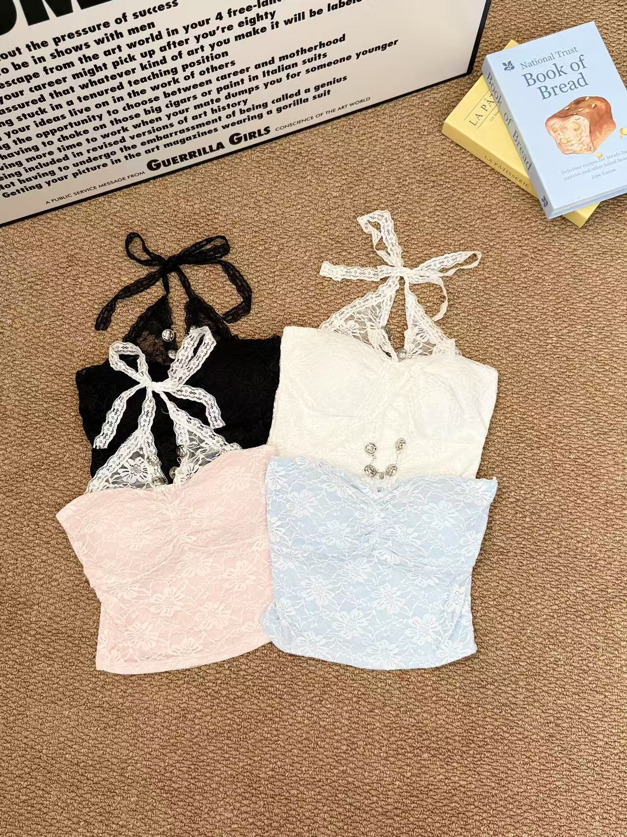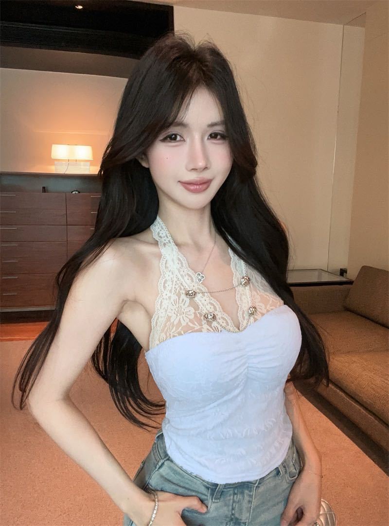Top Halter de Deseo Puro Cuello en V Corto Sexy Encaje Camisola Tubo para Mujer Dulce Chica Caliente Discoteca