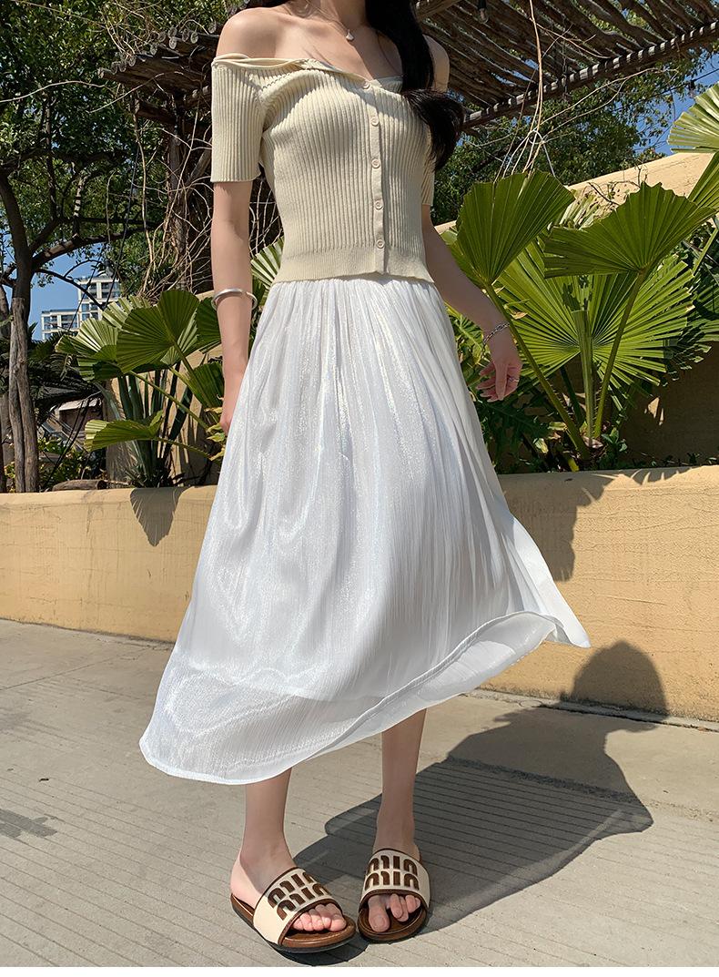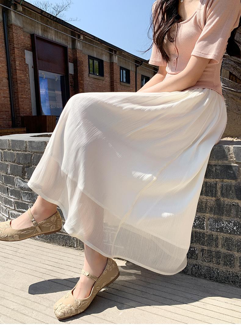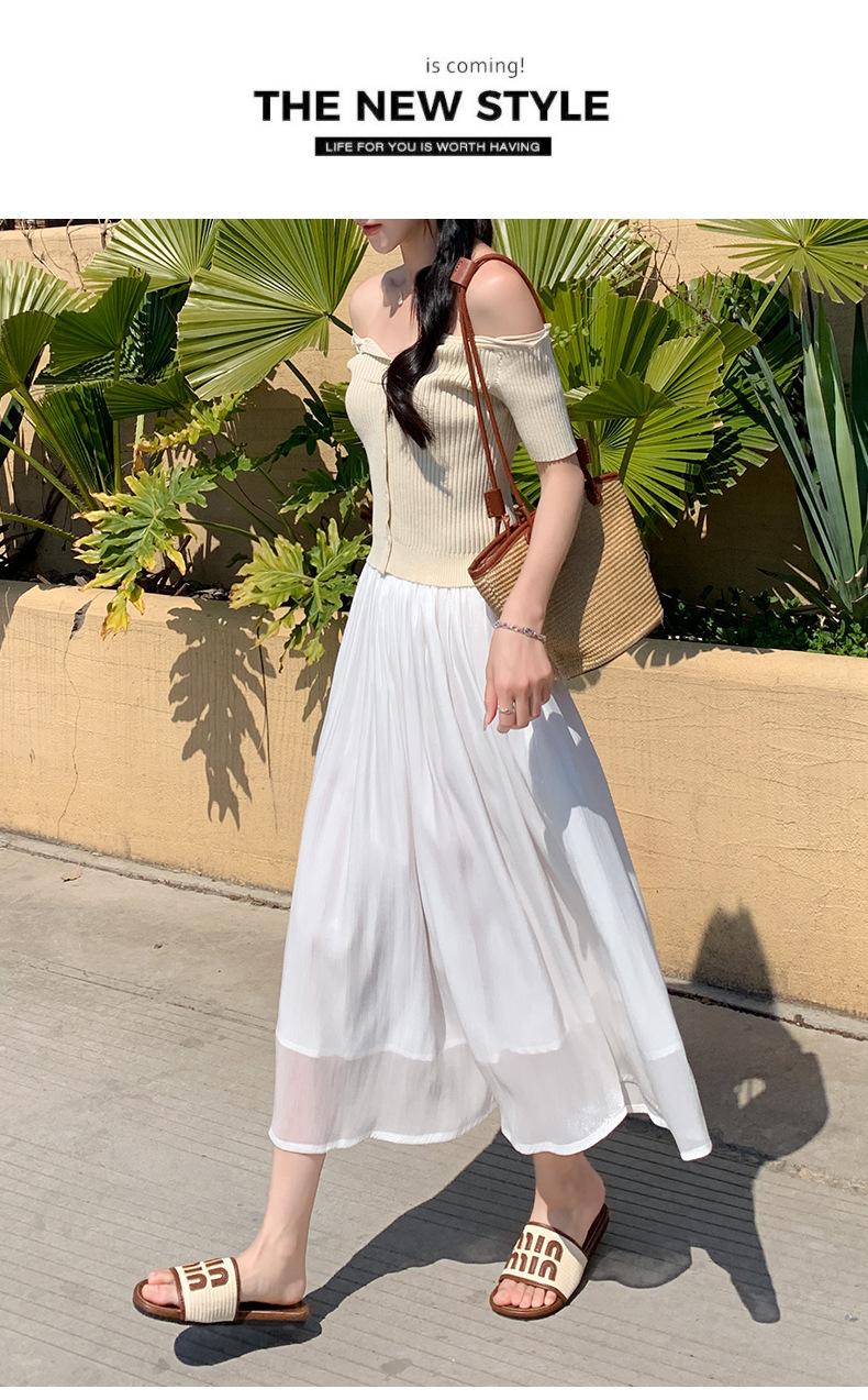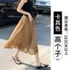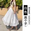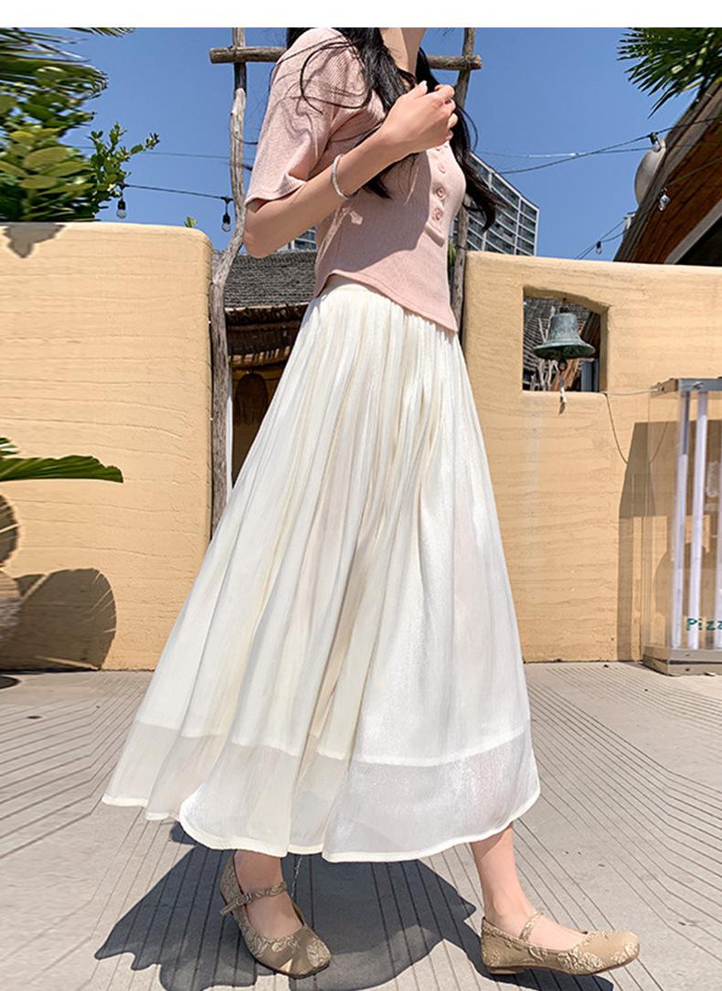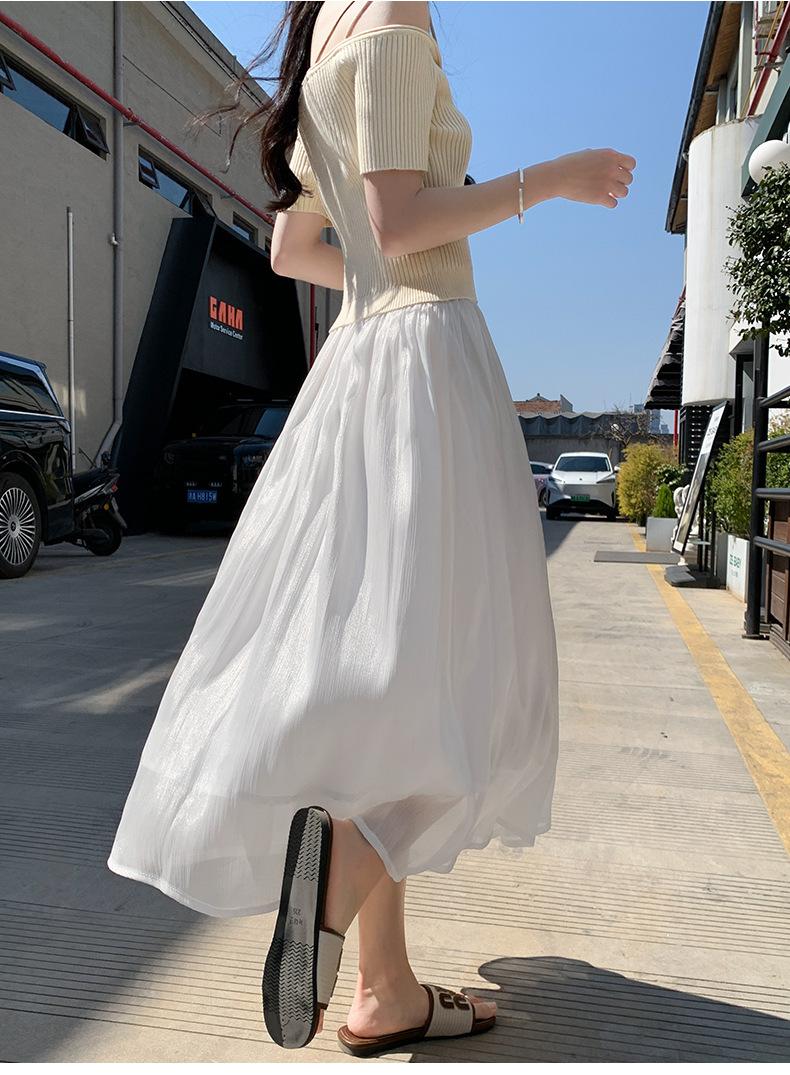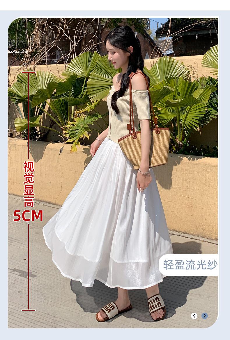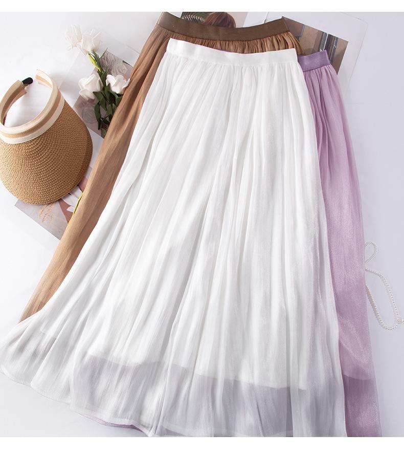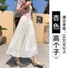 Falda Blanca con Flecos para Mujer Nueva Verano Falda Línea A de Cintura Alta Media Falda Drapeada Falda Larga Falda de Malla