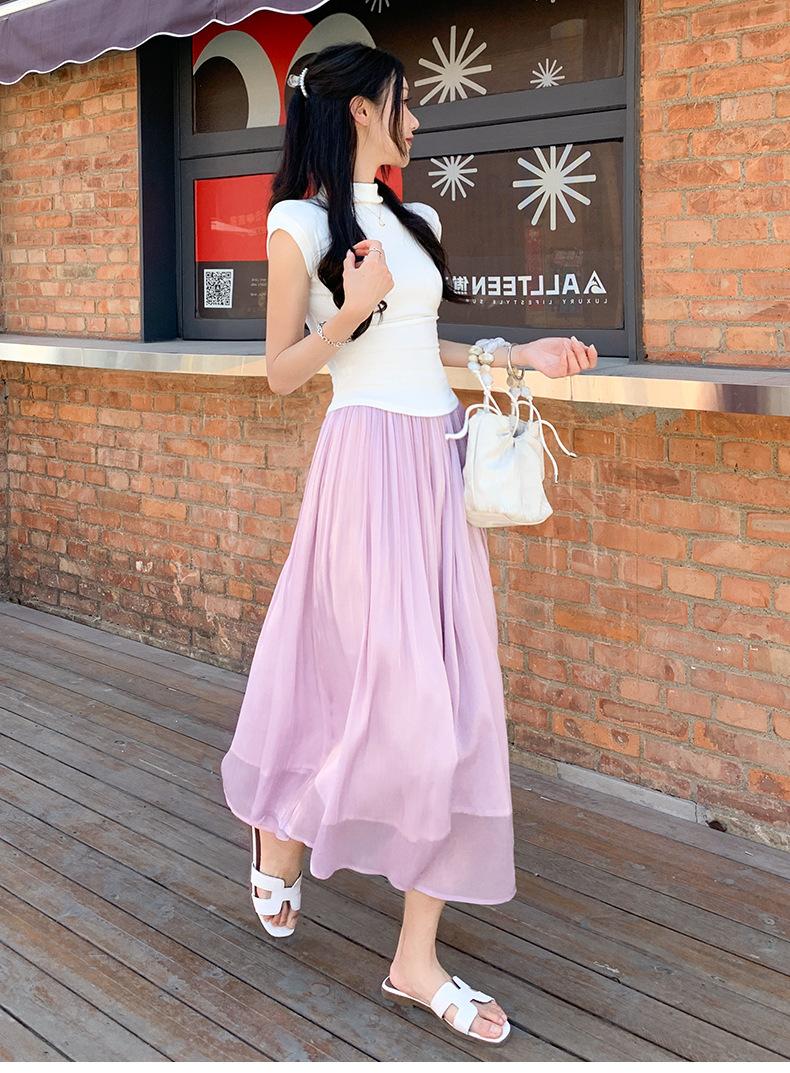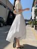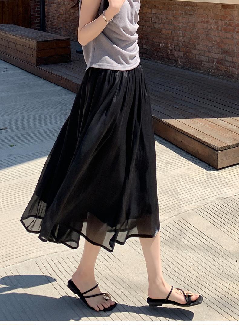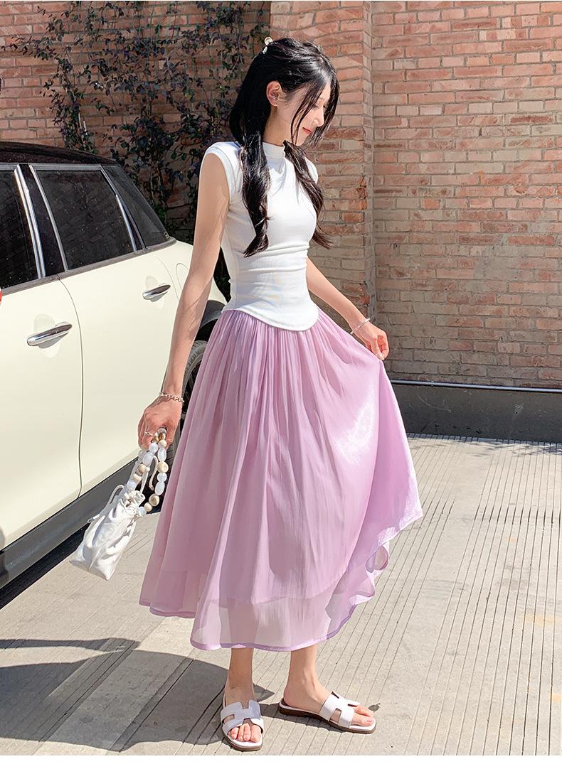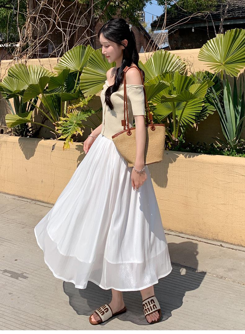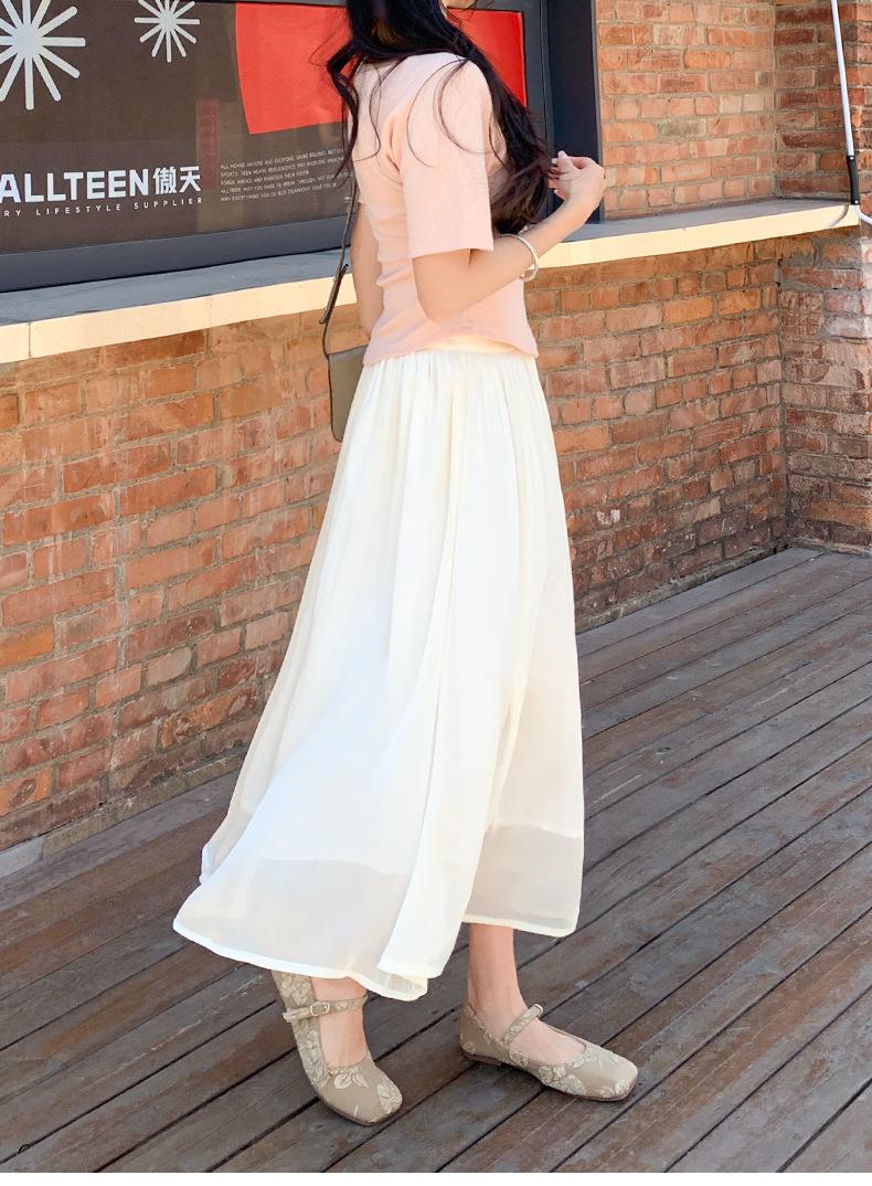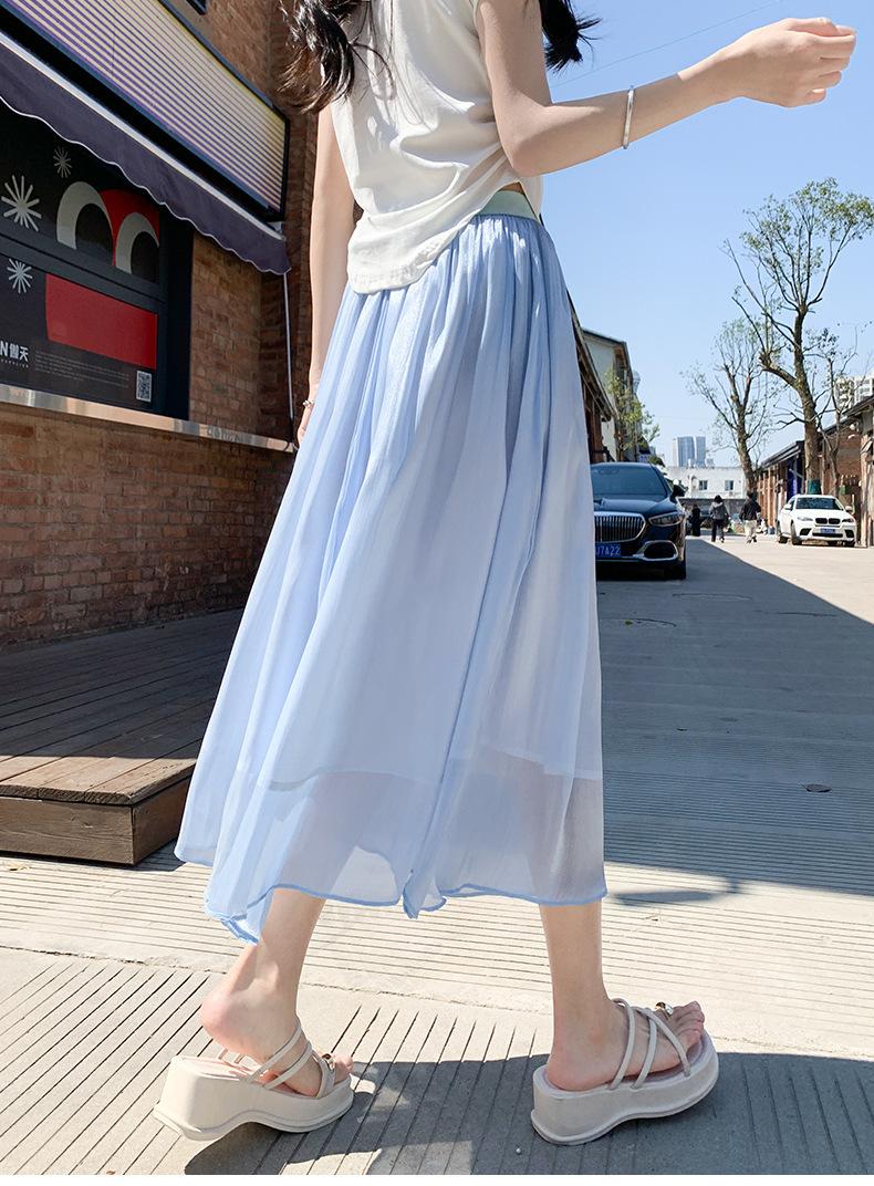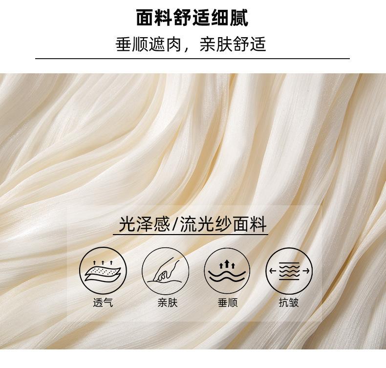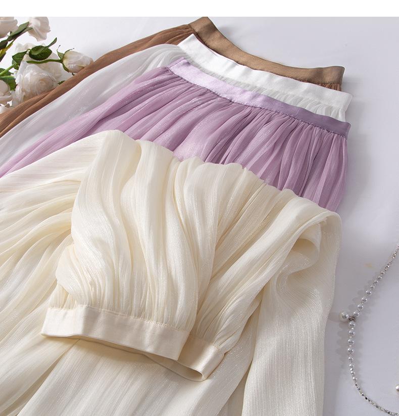 Falda Blanca con Flecos para Mujer Nueva Verano Falda Línea A de Cintura Alta Media Falda Drapeada Falda Larga Falda de Malla