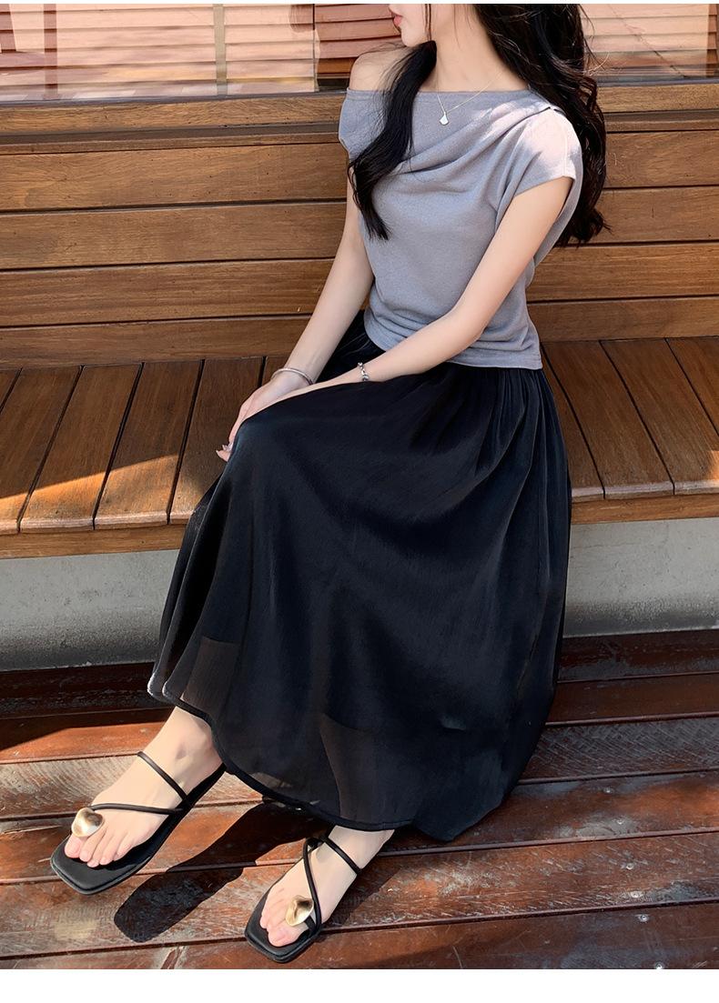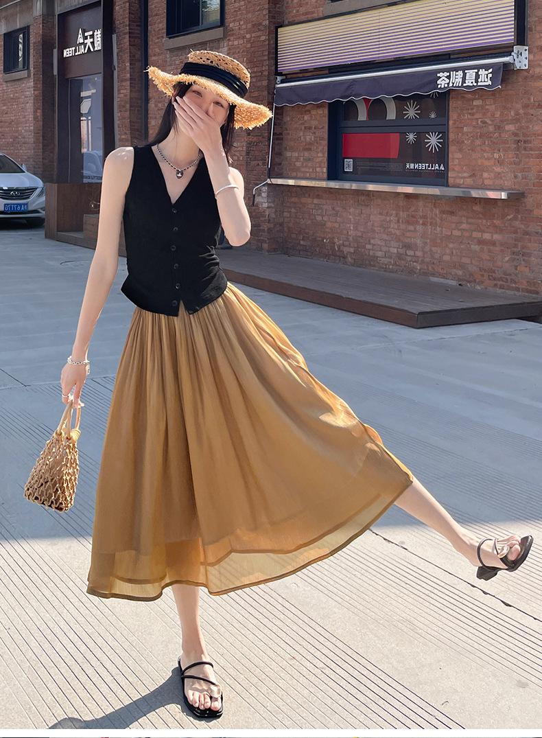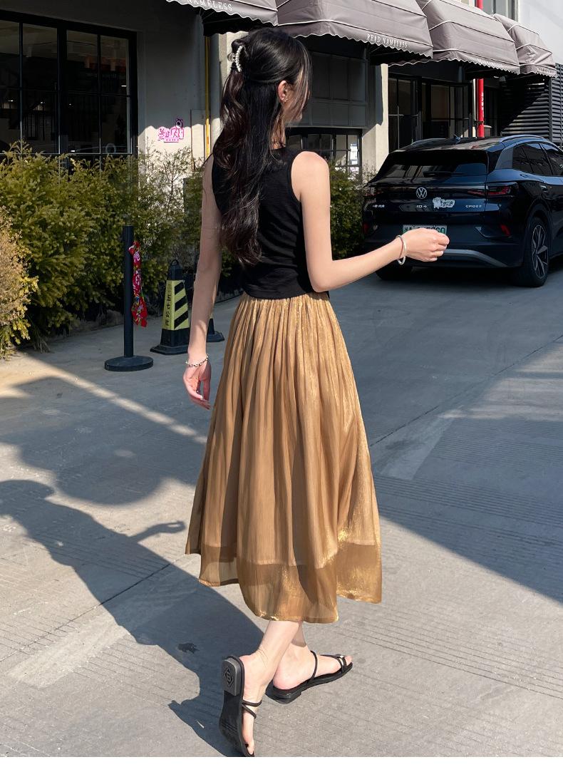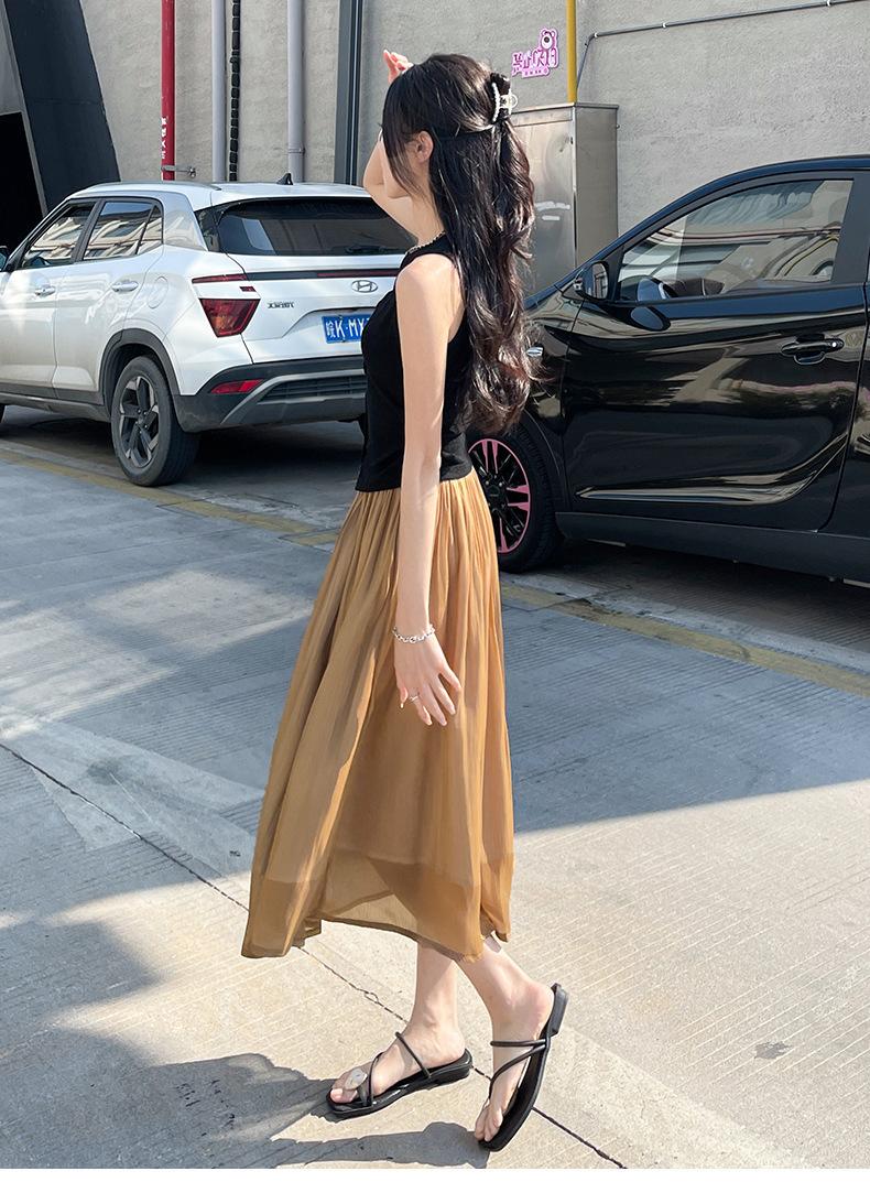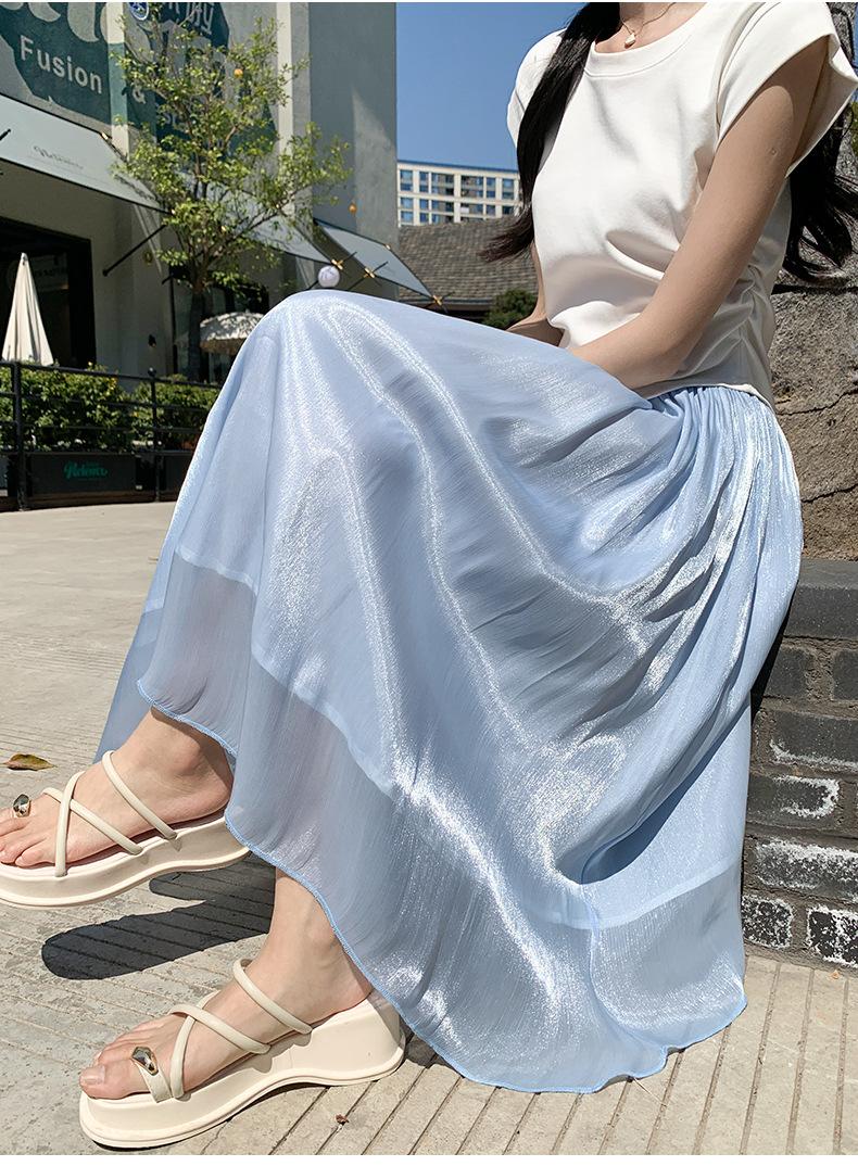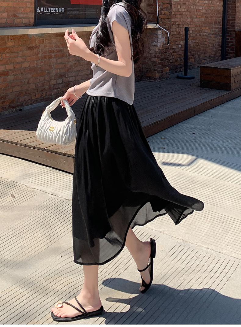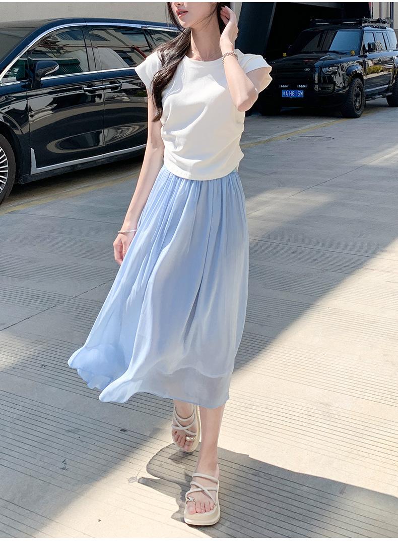 Falda Blanca con Flecos para Mujer Nueva Verano Falda Línea A de Cintura Alta Media Falda Drapeada Falda Larga Falda de Malla