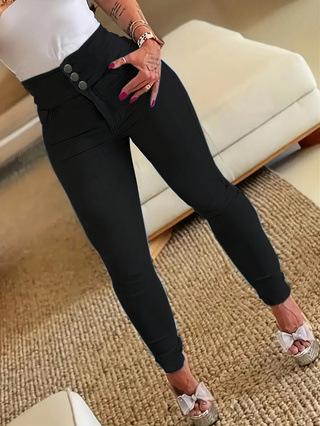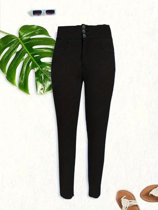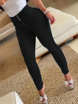 Wish Amazon ebay Leggings de mezclilla elásticos negros con cierre de cremallera y tres botones
