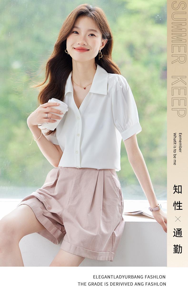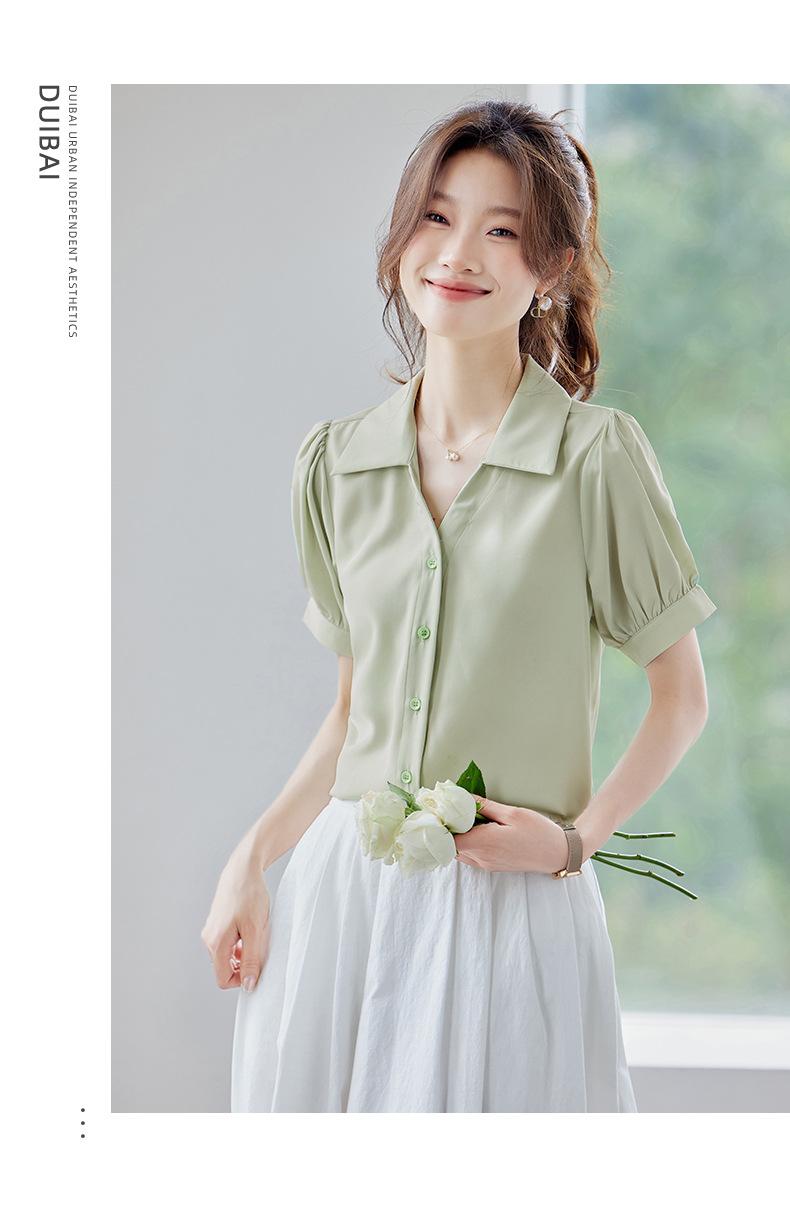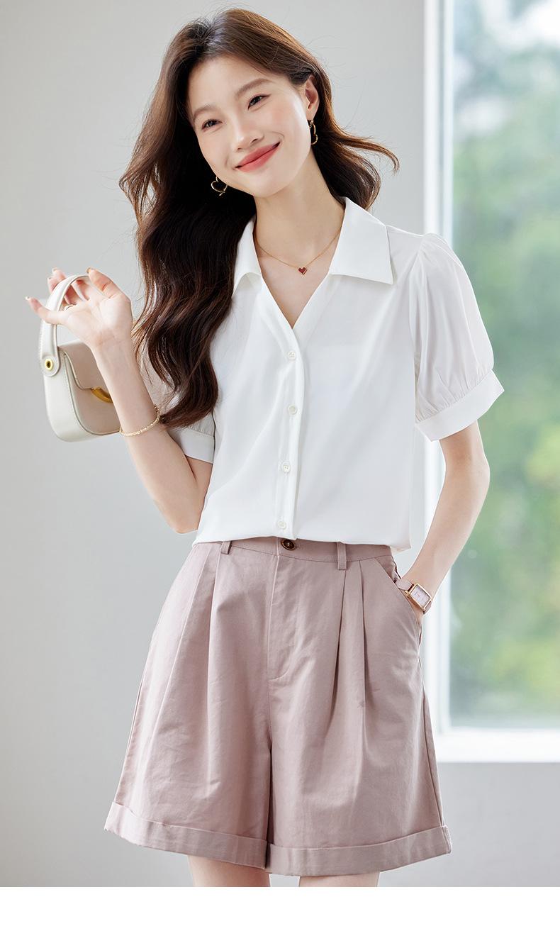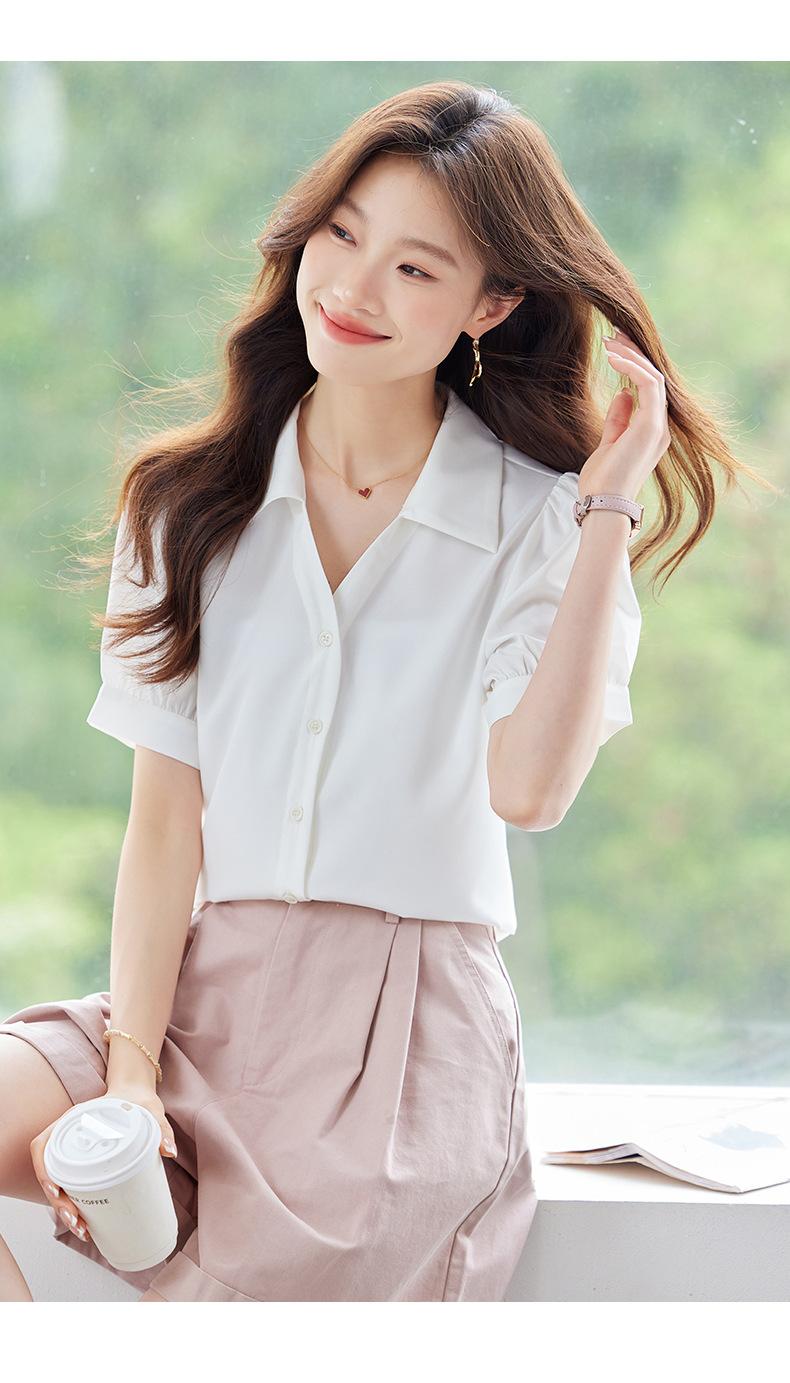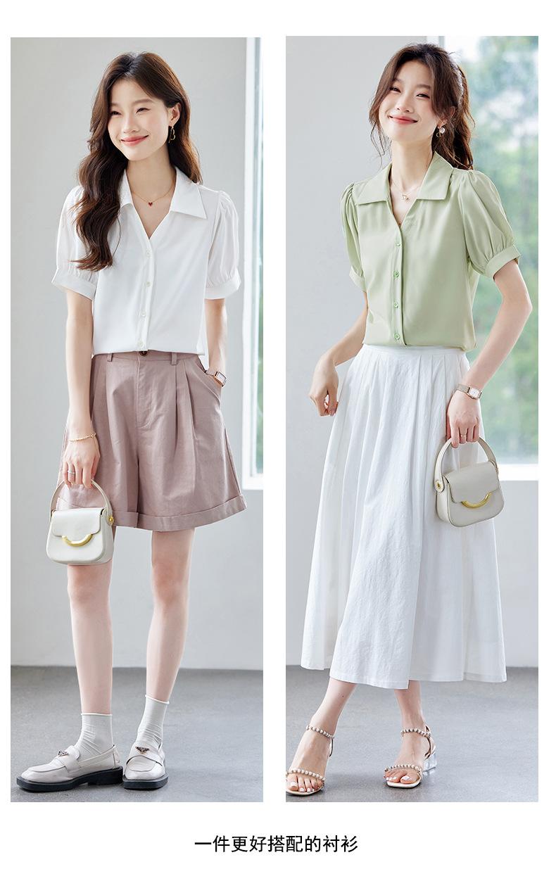 Camiseta de Verano de Cuello en V y Manga Corta Camisa de Mujer Ropa Sencilla de Verano 2025 Nueva Ropa Profesional Casual para el Trabajo Top Versátil