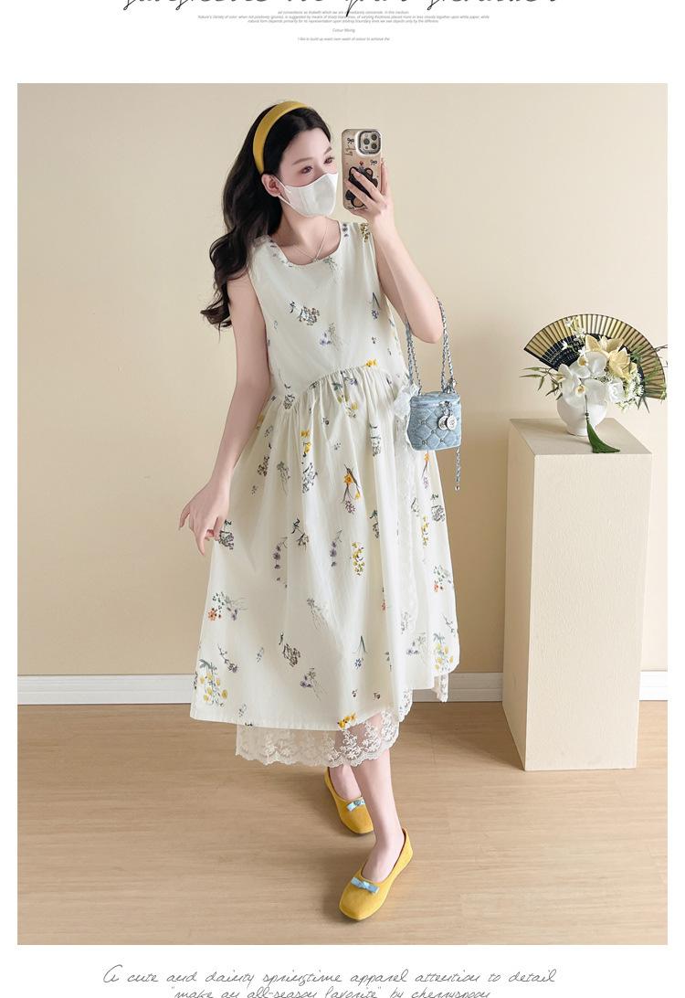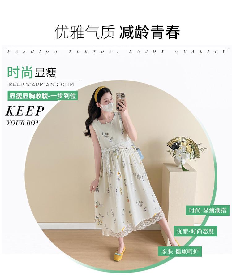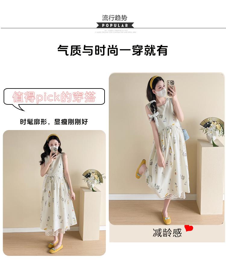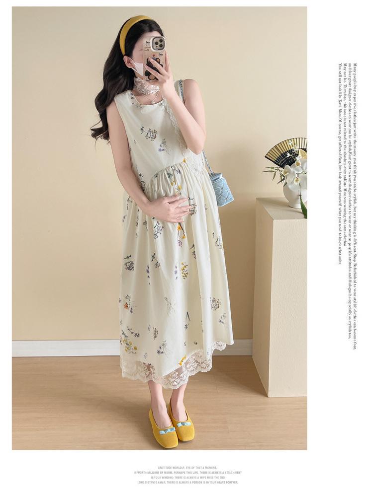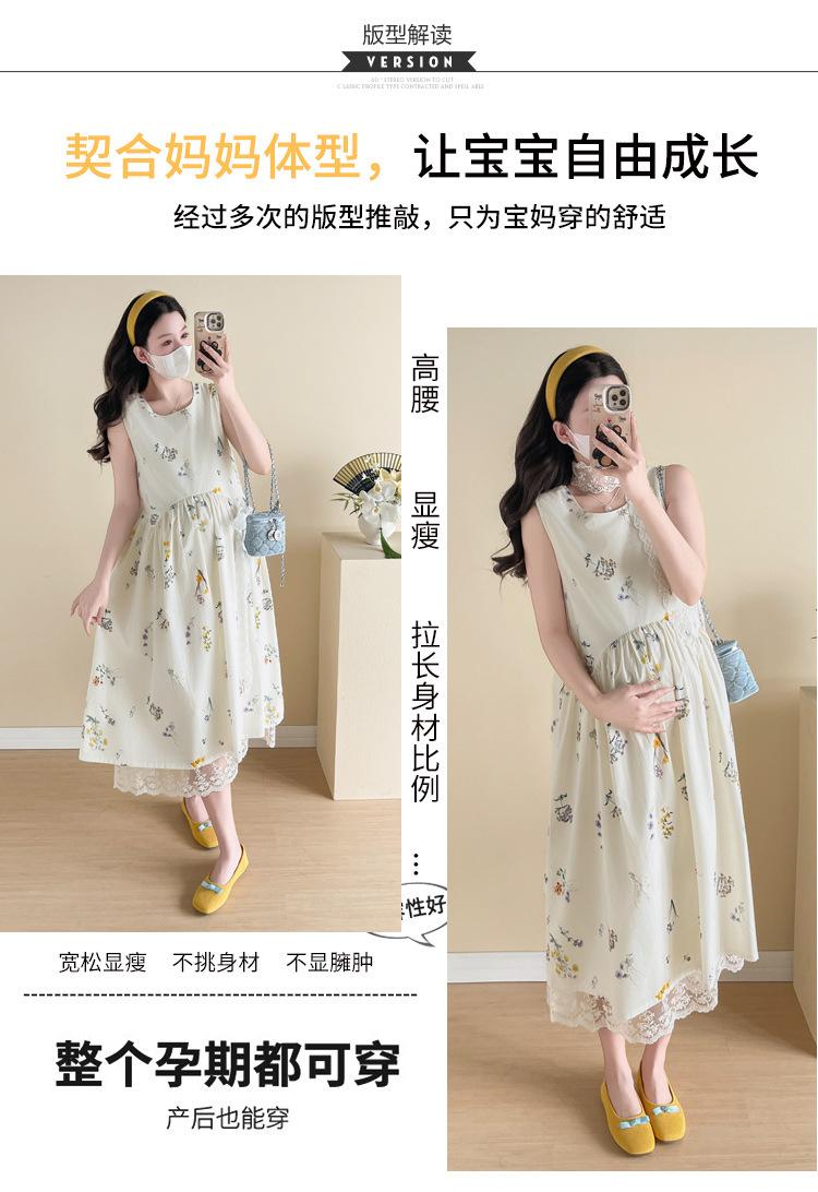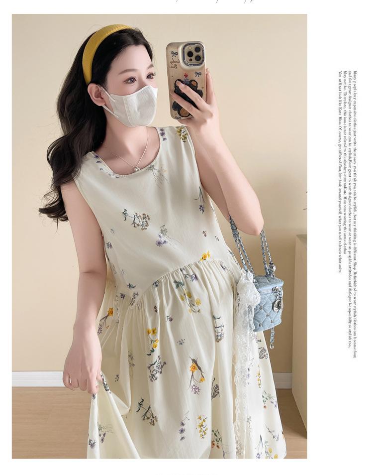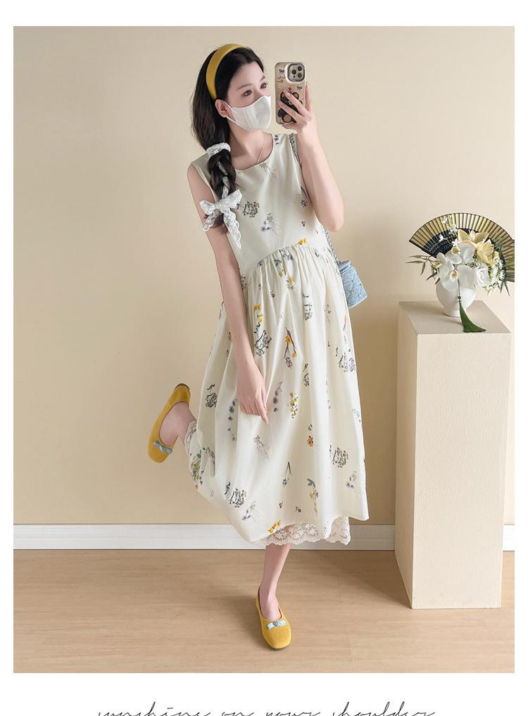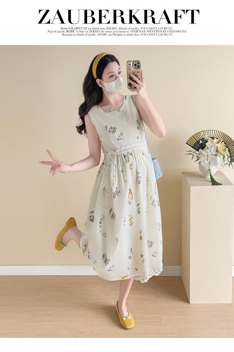 Maternidad 2025 Verano Nuevo Estilo Vacacional Suelto Reductor de Edad Dulce Estampado talla grande Vestido para Mujeres Embarazadas