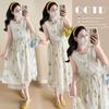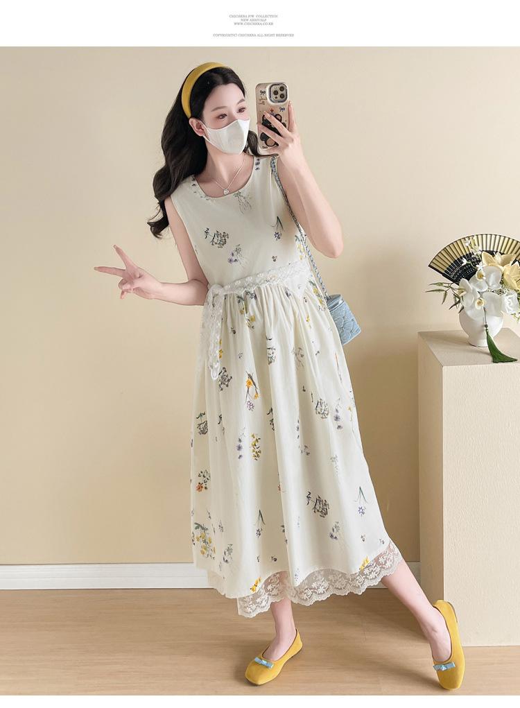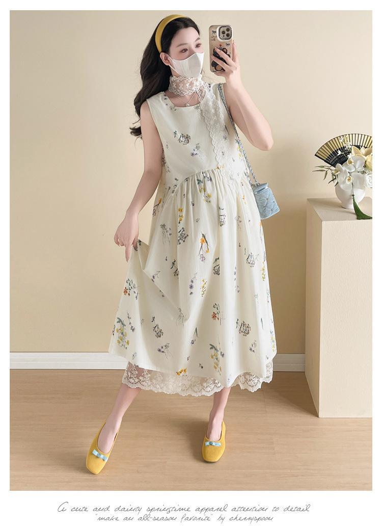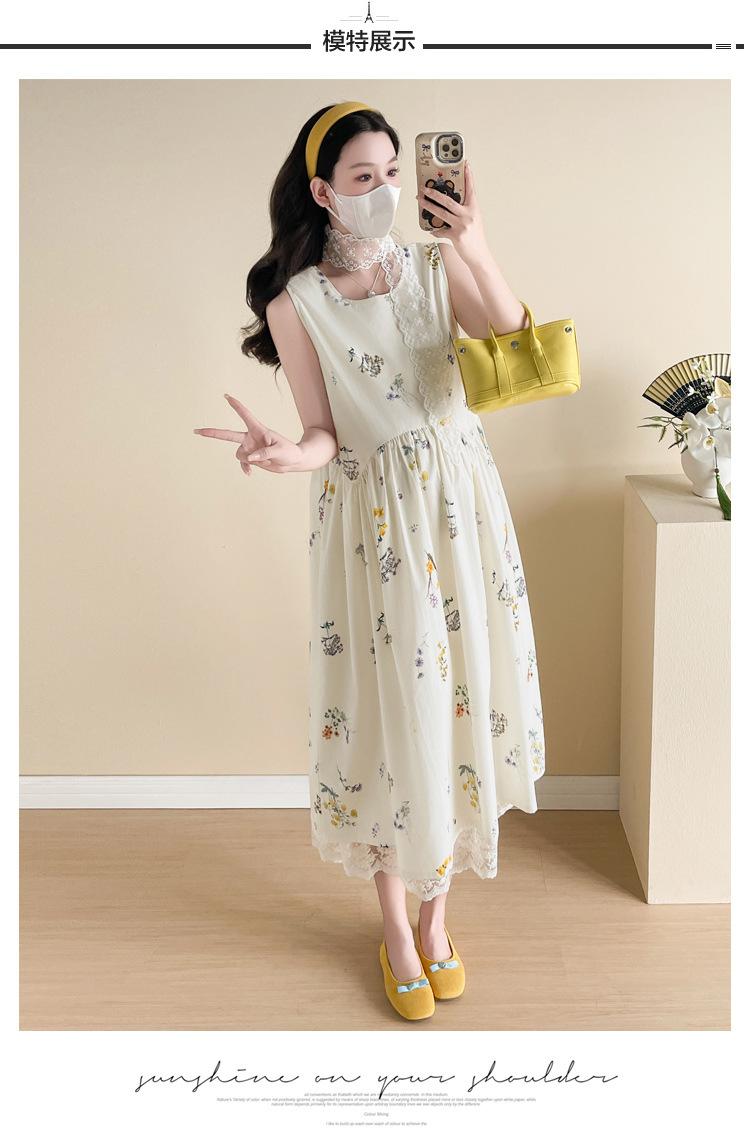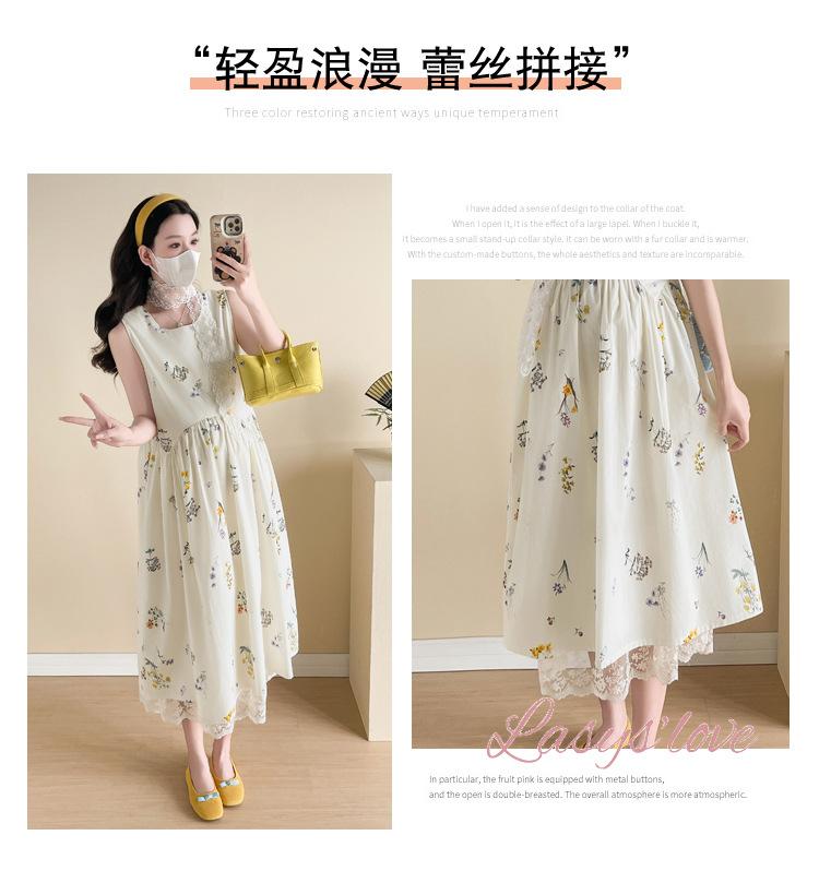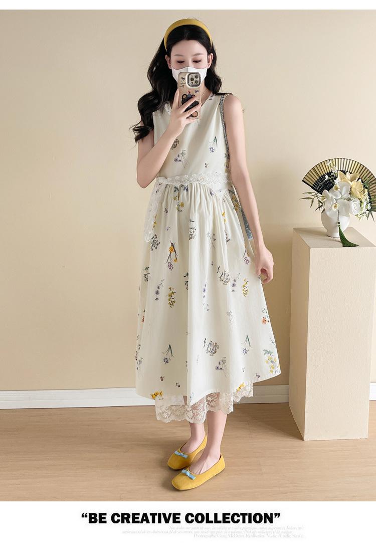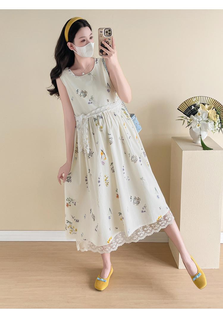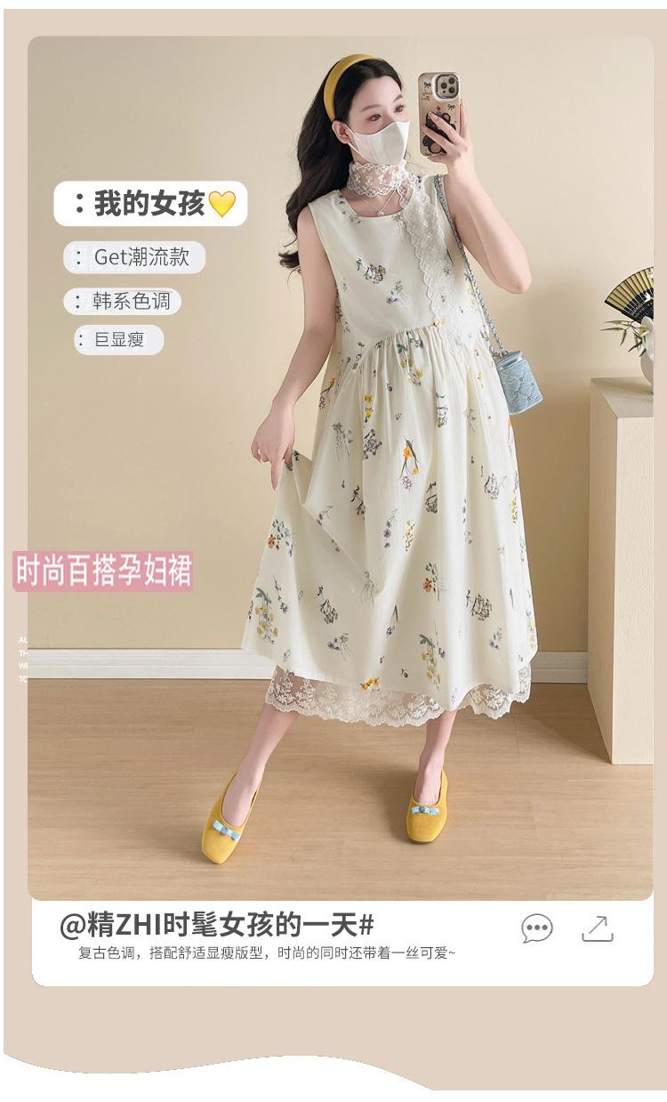 Maternidad 2025 Verano Nuevo Estilo Vacacional Suelto Reductor de Edad Dulce Estampado talla grande Vestido para Mujeres Embarazadas