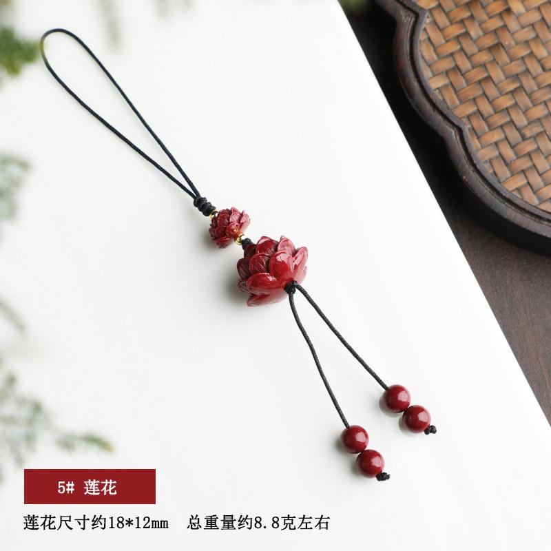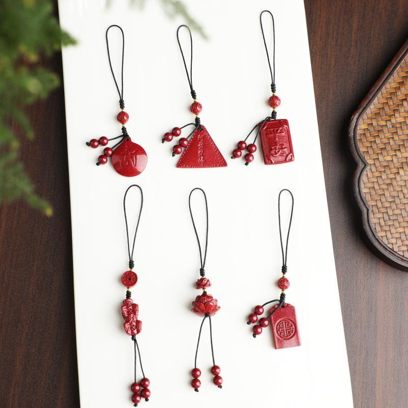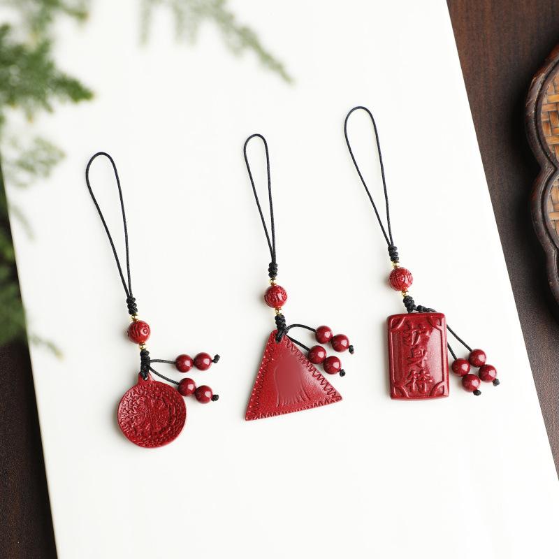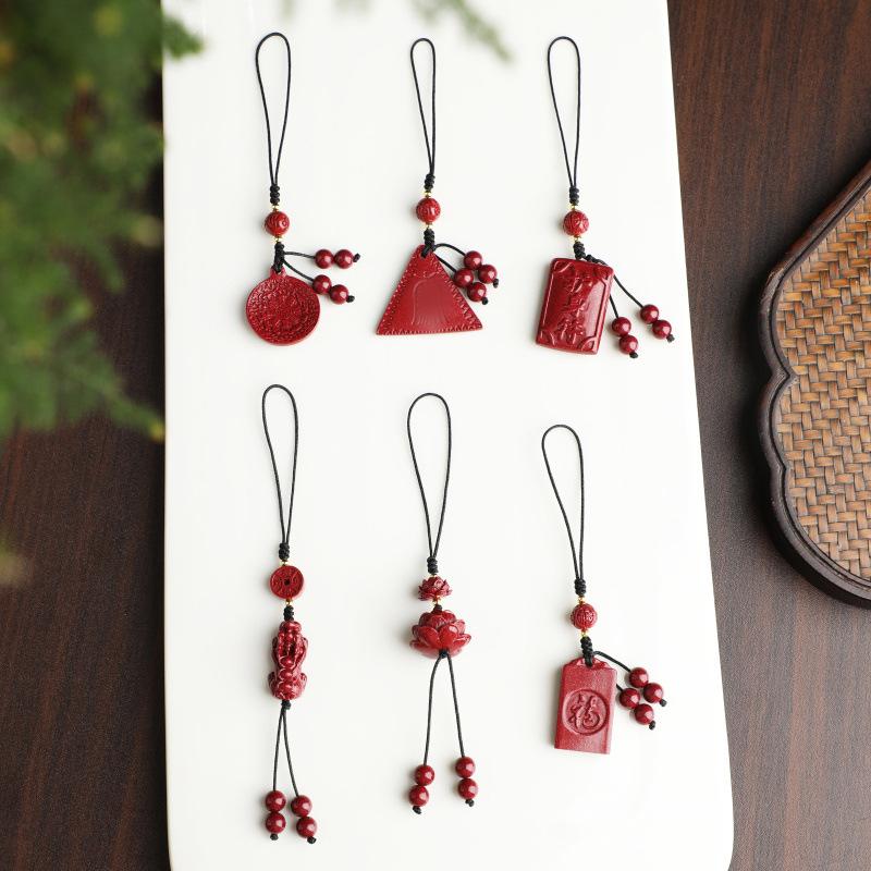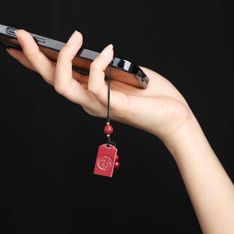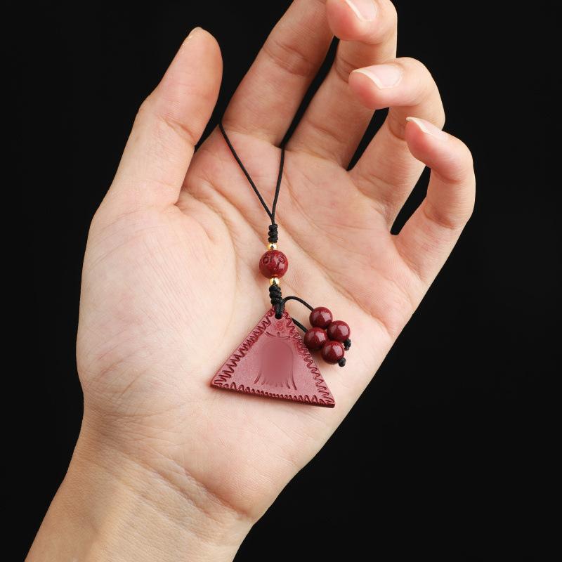 Venta al por mayor cinabrio natural alto contenido arena dorada púrpura colgante cadena para teléfono móvil Triángulo nueve palacios chismes