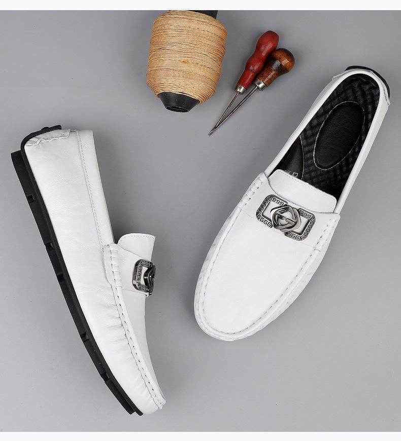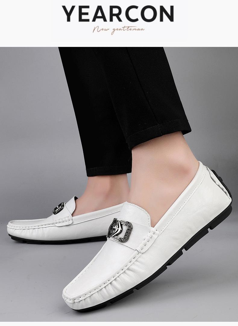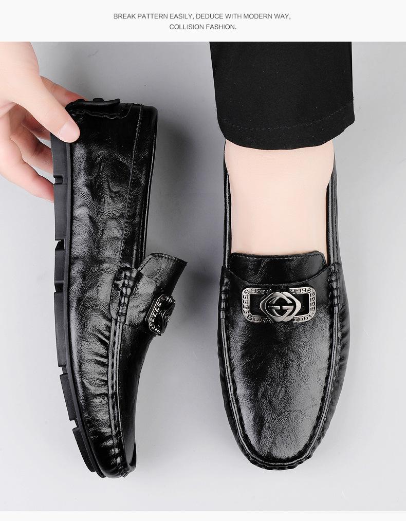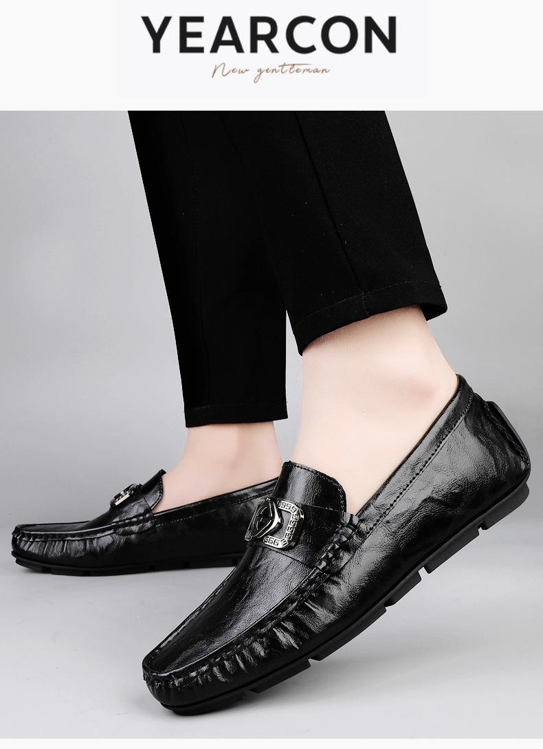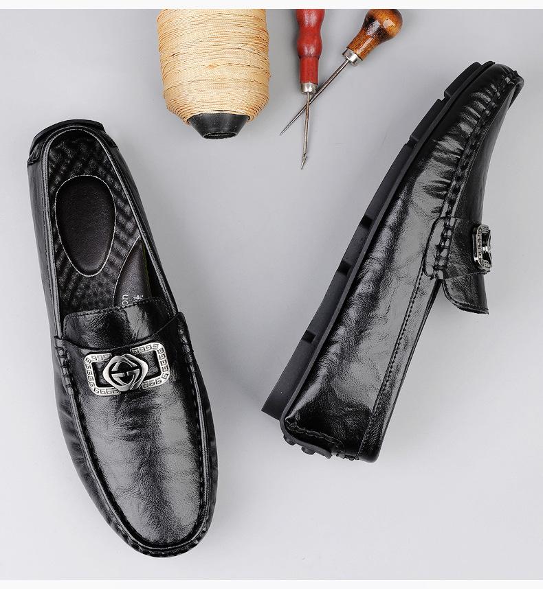 Zapatos tipo gorro para hombre Nuevo estilo británico Casual Versátil Perezoso Zapatos de cuero Zapatos de mocasín de cuero genuino Zapatos de hombre Zapatos para conducir de una pierna